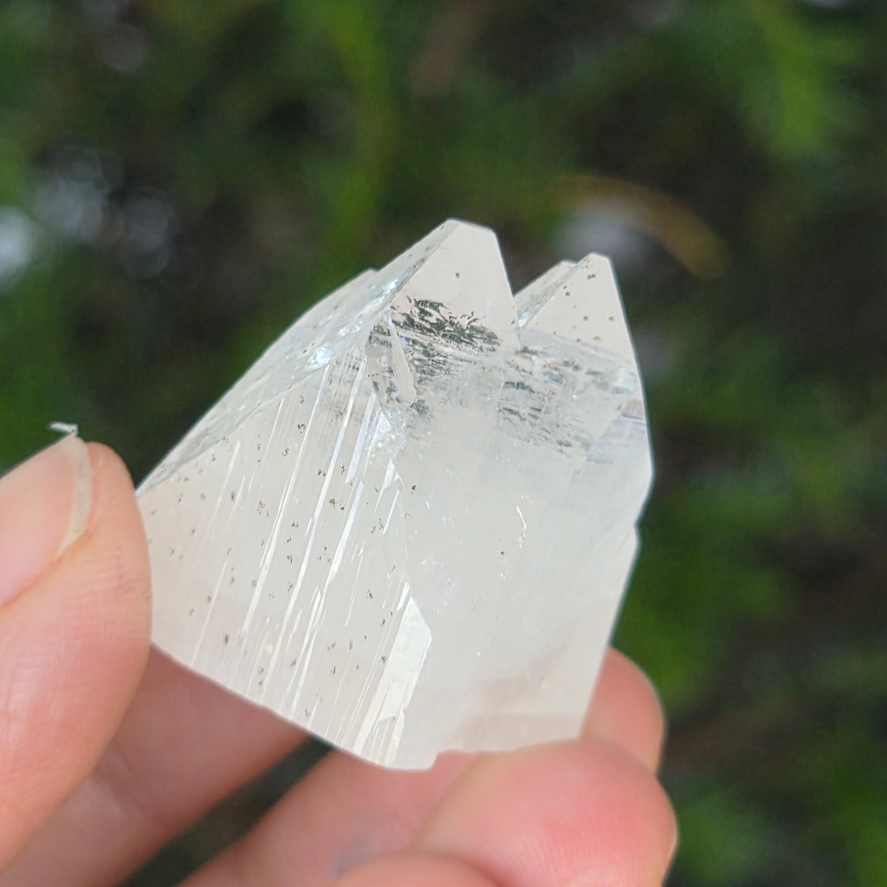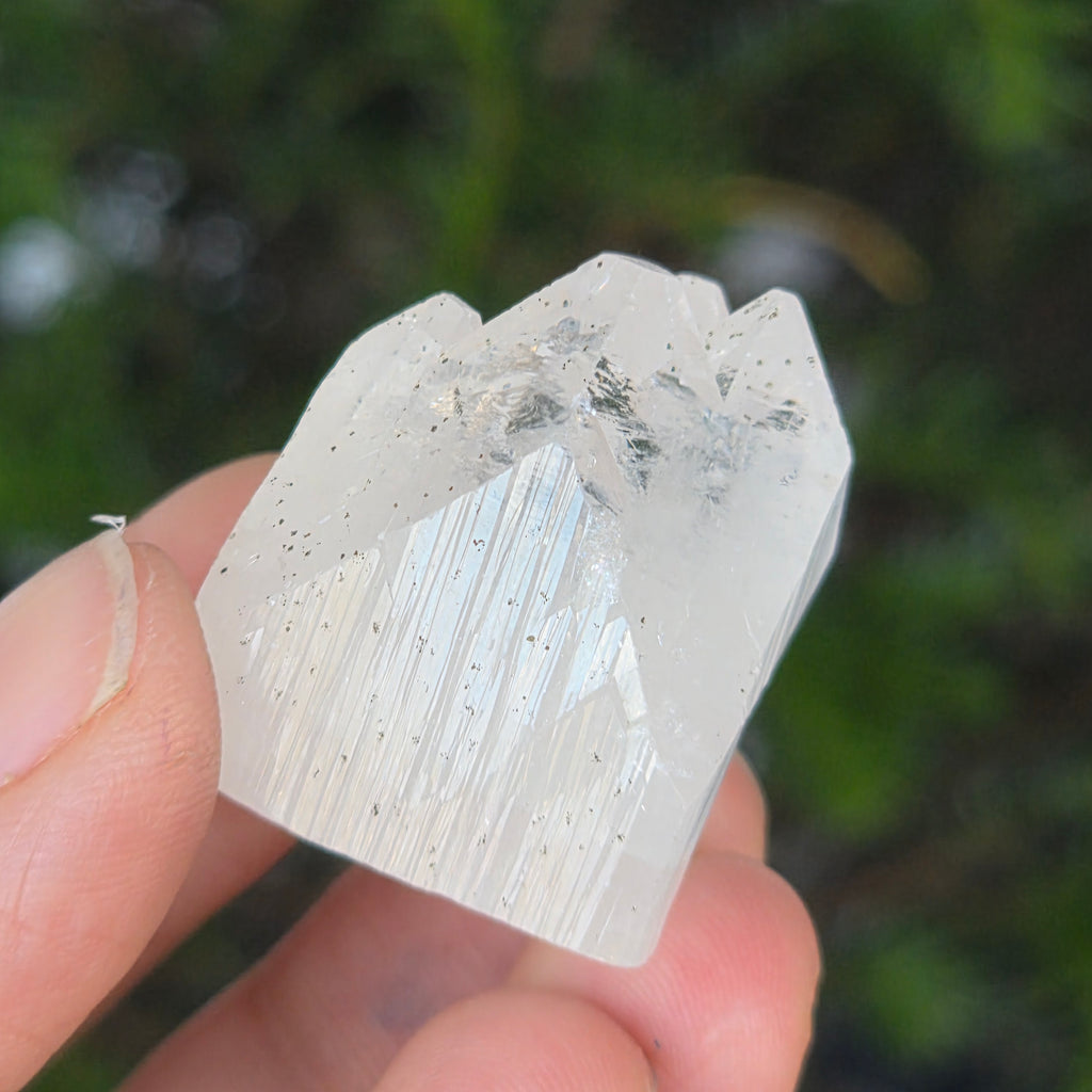 Apophyllit ist ein Mineral aus der Familie der Tektosilikate mit einer chemischen Hauptzusammensetzung aus Kaliumsilikat und hydratisiertem Kalzium. Aufgrund seines Wassergehalts kann Apophyllit eine bemerkenswerte Klarheit und Transparenz aufweisen, und manchmal reflektieren seine Oberflächen das Licht außergewöhnlich, wodurch ein spiegelähnlicher Effekt entsteht.