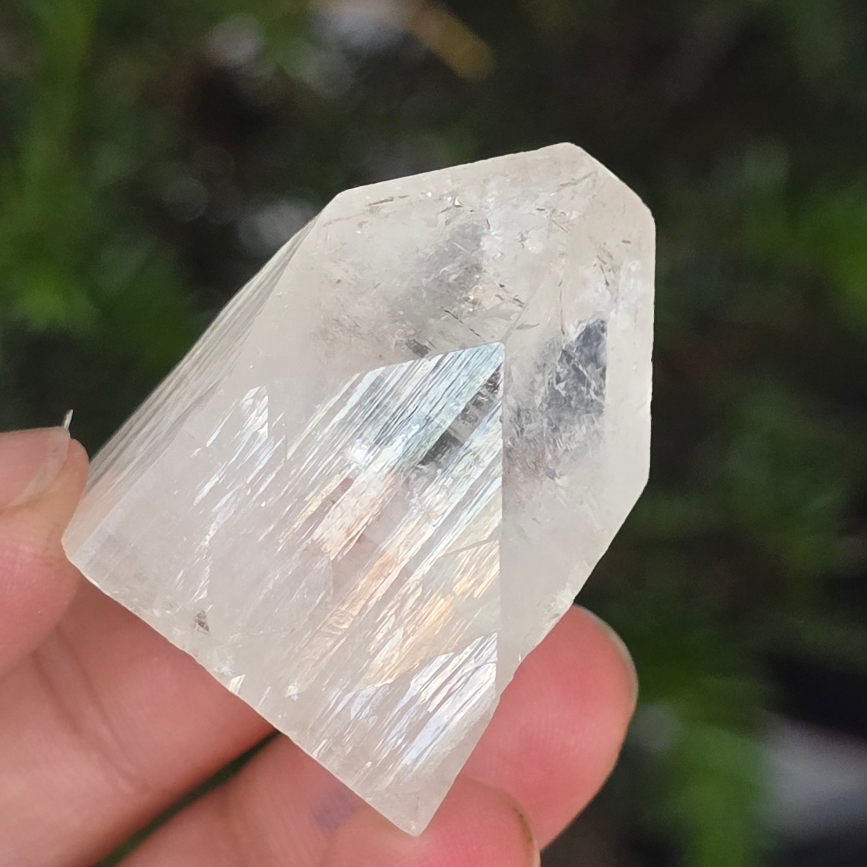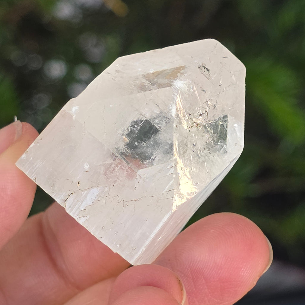 Apophyllit ist ein Mineral aus der Familie der Tektosilikate mit einer chemischen Hauptzusammensetzung aus Kaliumsilikat und hydratisiertem Kalzium. Aufgrund seines Wassergehalts kann Apophyllit eine bemerkenswerte Klarheit und Transparenz aufweisen, und manchmal reflektieren seine Oberflächen das Licht außergewöhnlich, wodurch ein spiegelähnlicher Effekt entsteht.