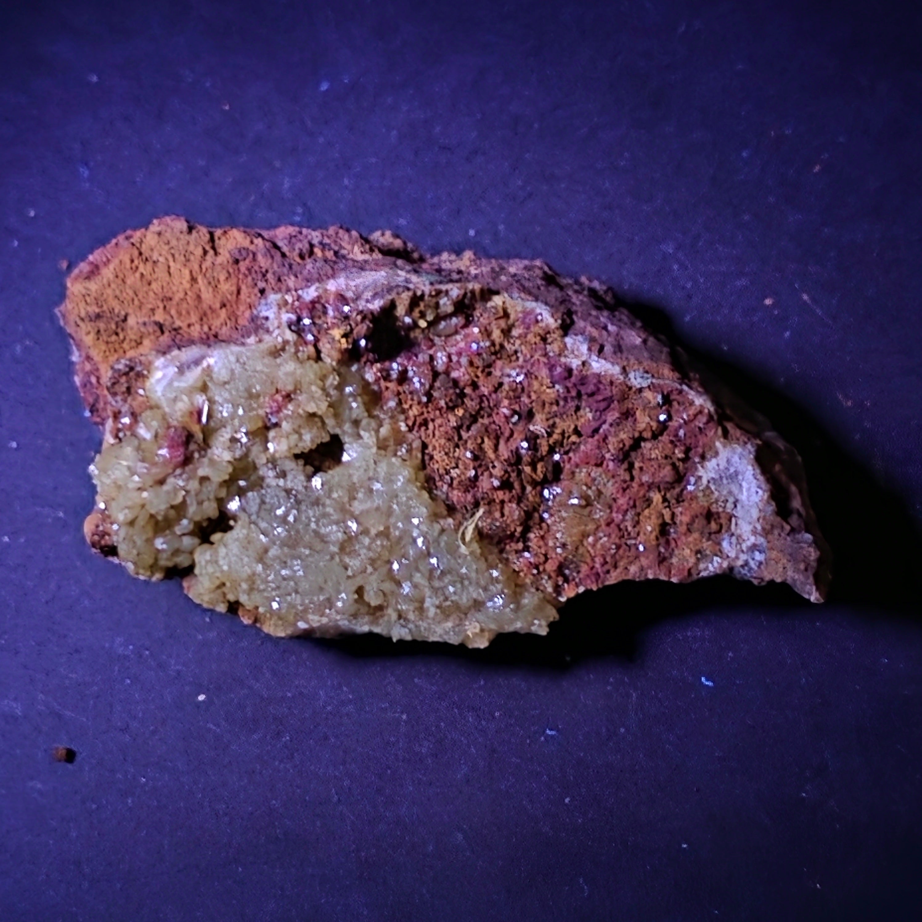 Acest specimen de adamit din Mexic, provenit din faimoasa Mina Ojuela, Mapimí – Durango, este o piesă mineralogică de colecție, extrem de apreciată pentru culoarea sa intensă, verde-gălbuie, și pentru fluorescența spectaculoasă sub lumină UV. Mina Ojuela este considerată una dintre cele mai importante localități clasice din lume pentru adamit, piesele de aici fiind de referință pentru acest mineral.