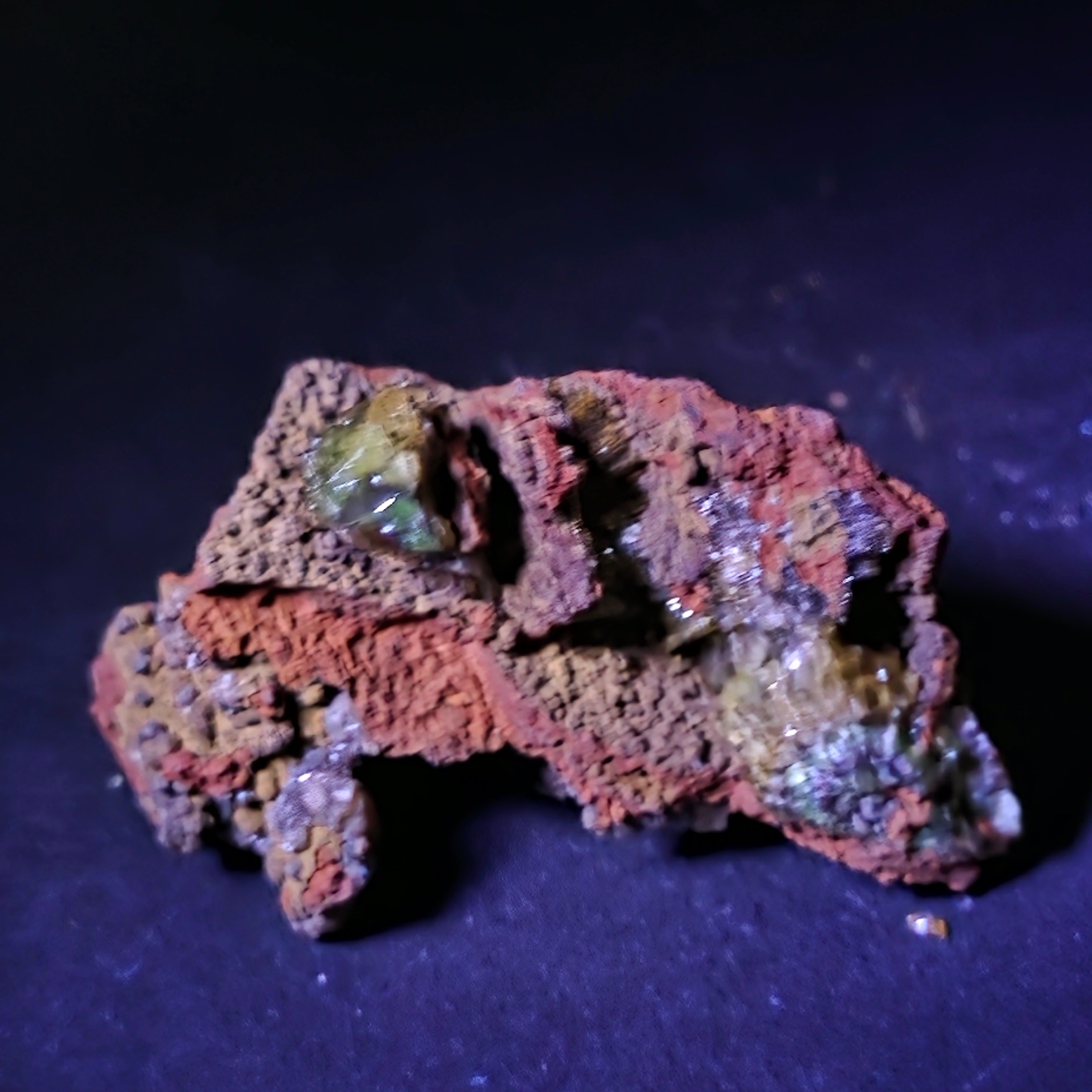 Acest specimen de adamit din Mexic, provenit din faimoasa Mina Ojuela, Mapimí – Durango, este o piesă mineralogică de colecție, extrem de apreciată pentru culoarea sa intensă, verde-gălbuie, și pentru fluorescența spectaculoasă sub lumină UV. Mina Ojuela este considerată una dintre cele mai importante localități clasice din lume pentru adamit, piesele de aici fiind de referință pentru acest mineral.