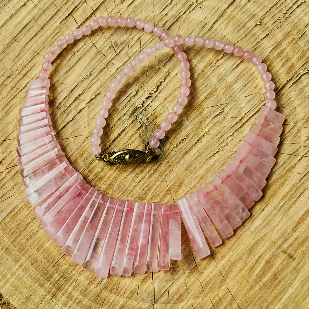Ägyptische Halskette mit rosa Quarz, Größe: 41 cm