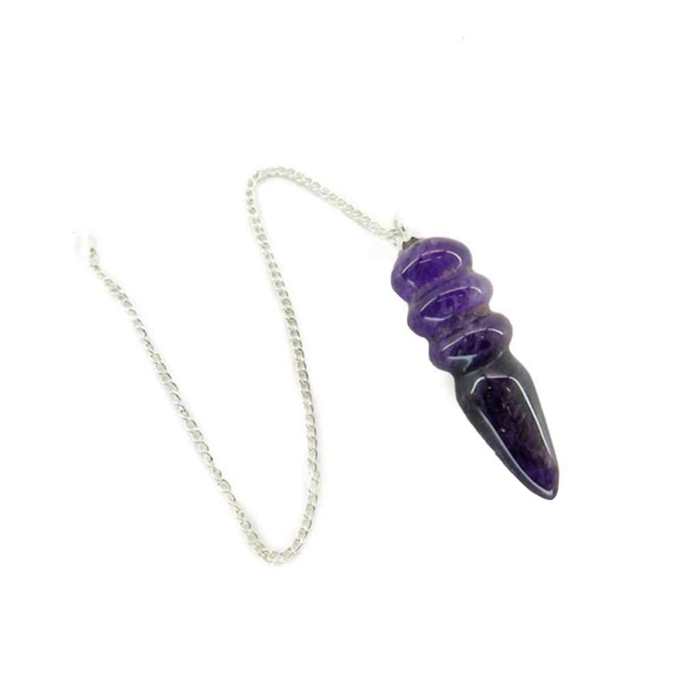 Dieses Pendel aus Amethyst, dem Stein der Weisheit und des Friedens, wird sowohl für seine Schönheit als auch für die Fähigkeit, geistige Klarheit und Intuition in Energiepraktiken zu unterstützen, geschätzt.