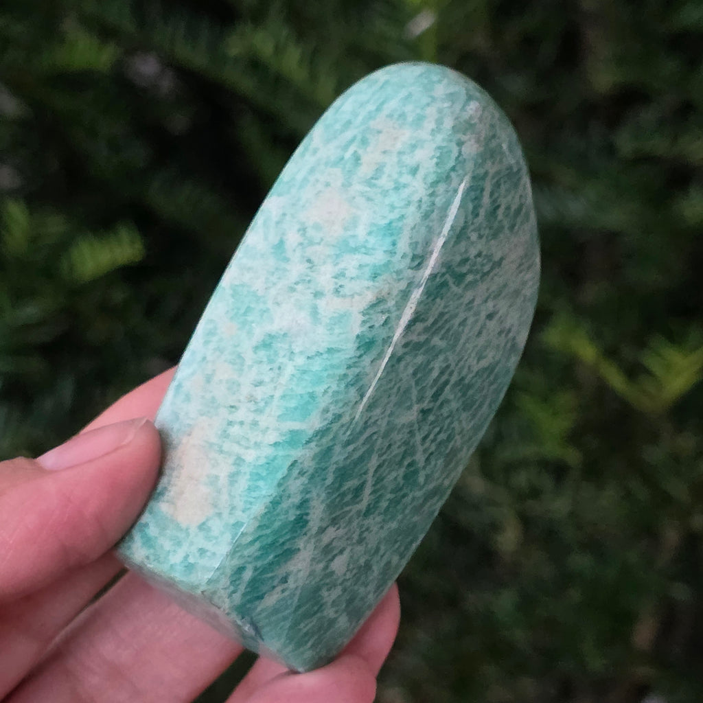 Der Amazonit wird auch als Frieden bezeichnet. Dies wird als ein Stein des Gleichgewichts angesehen, der dazu beitragen kann, Nervenzustände, Emotionen zu beruhigen und authentische Ausdruck zu fördern und die Beziehungen zu anderen zu verbessern.