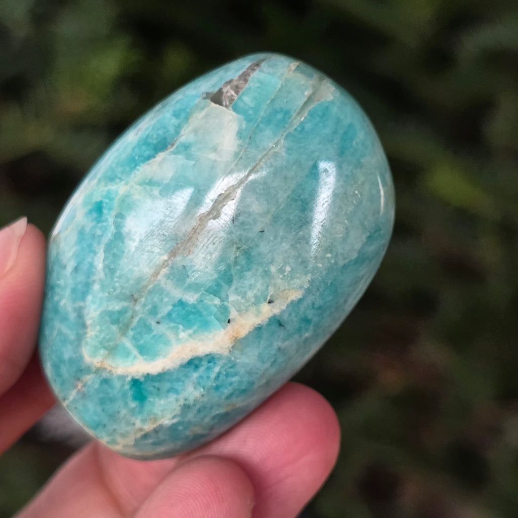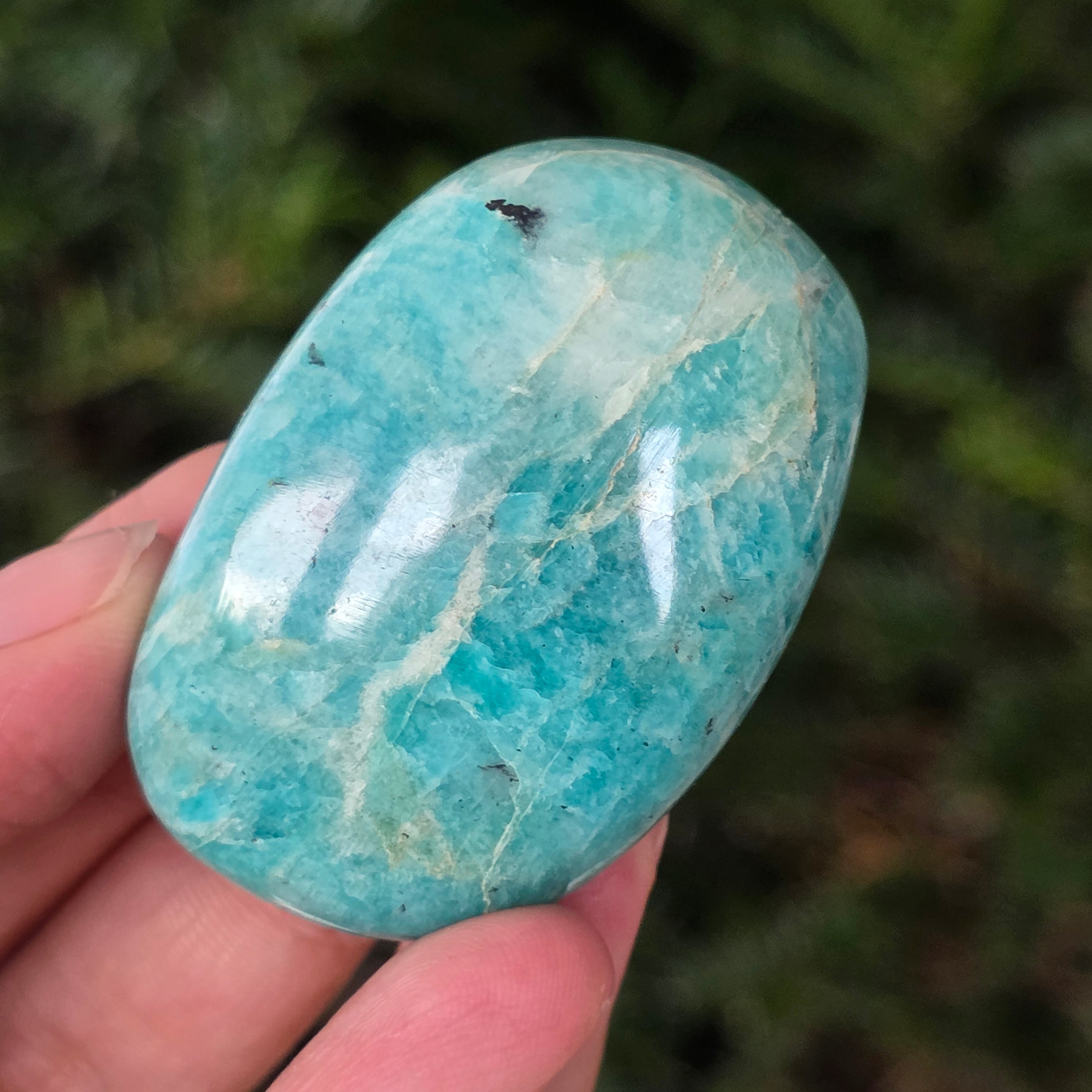 Amazonit wird auch als Friedensbringer bezeichnet. Er gilt als Stein des Gleichgewichts, der helfen kann, Nervosität und Emotionen zu beruhigen, authentischen Ausdruck zu fördern und die Beziehungen zu Ihren Mitmenschen zu verbessern.