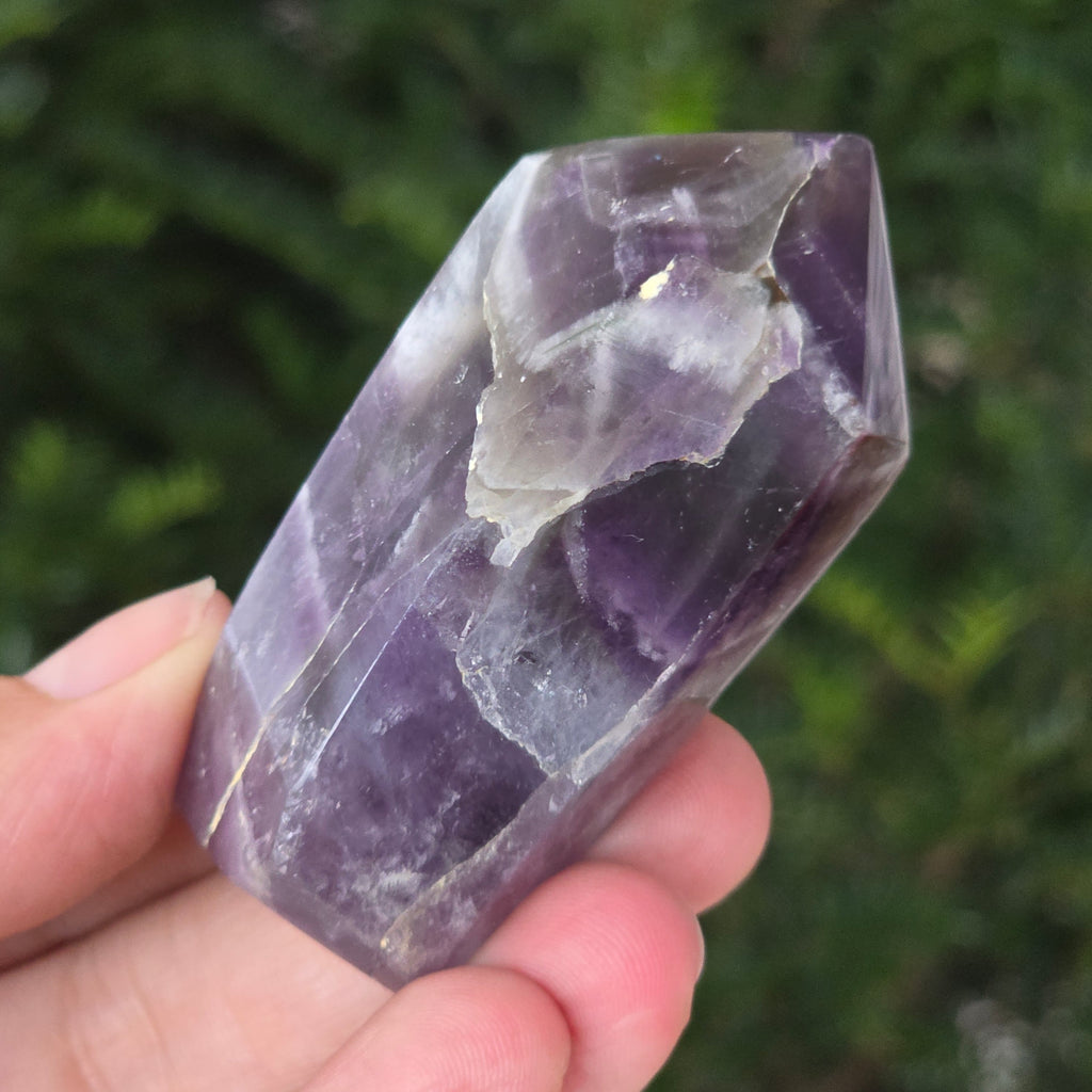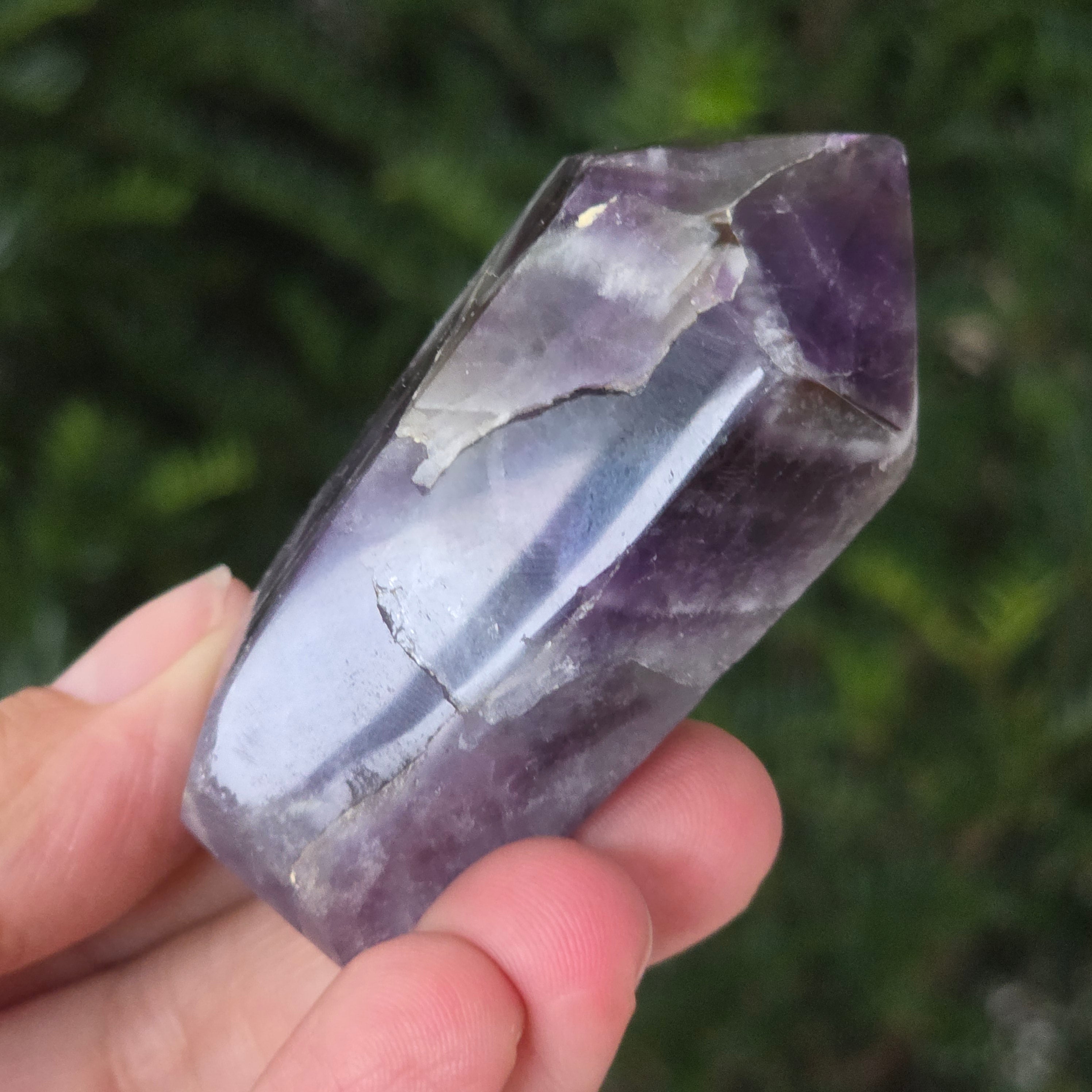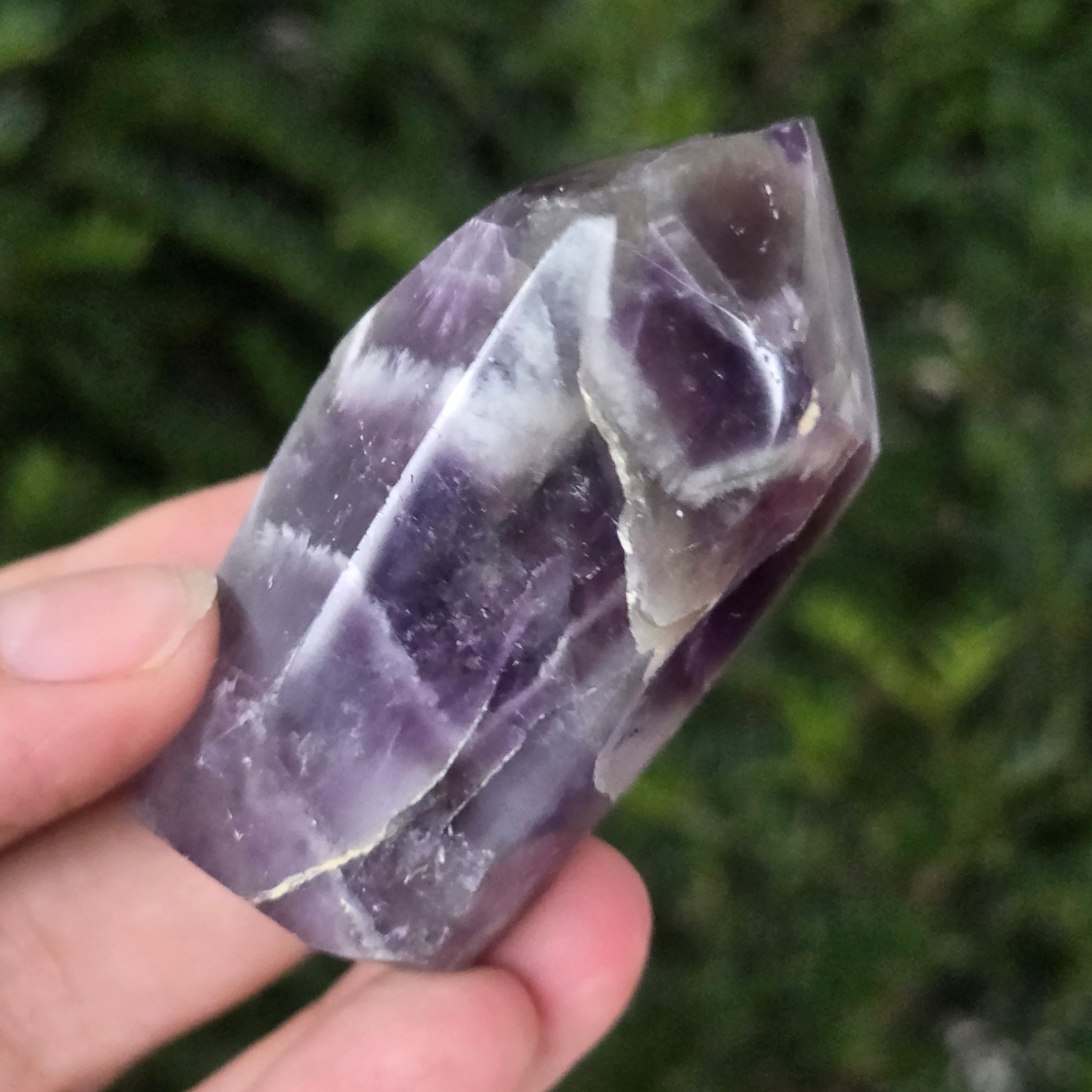 Wählen Sie eine aus Chevron-Amethyst-Obelisk und lassen Sie es reinigende Energie, Ausgeglichenheit und einen Hauch mystischer Eleganz in Ihren Raum bringen – ein Symbol für spirituelle Klarheit und Schutz.
