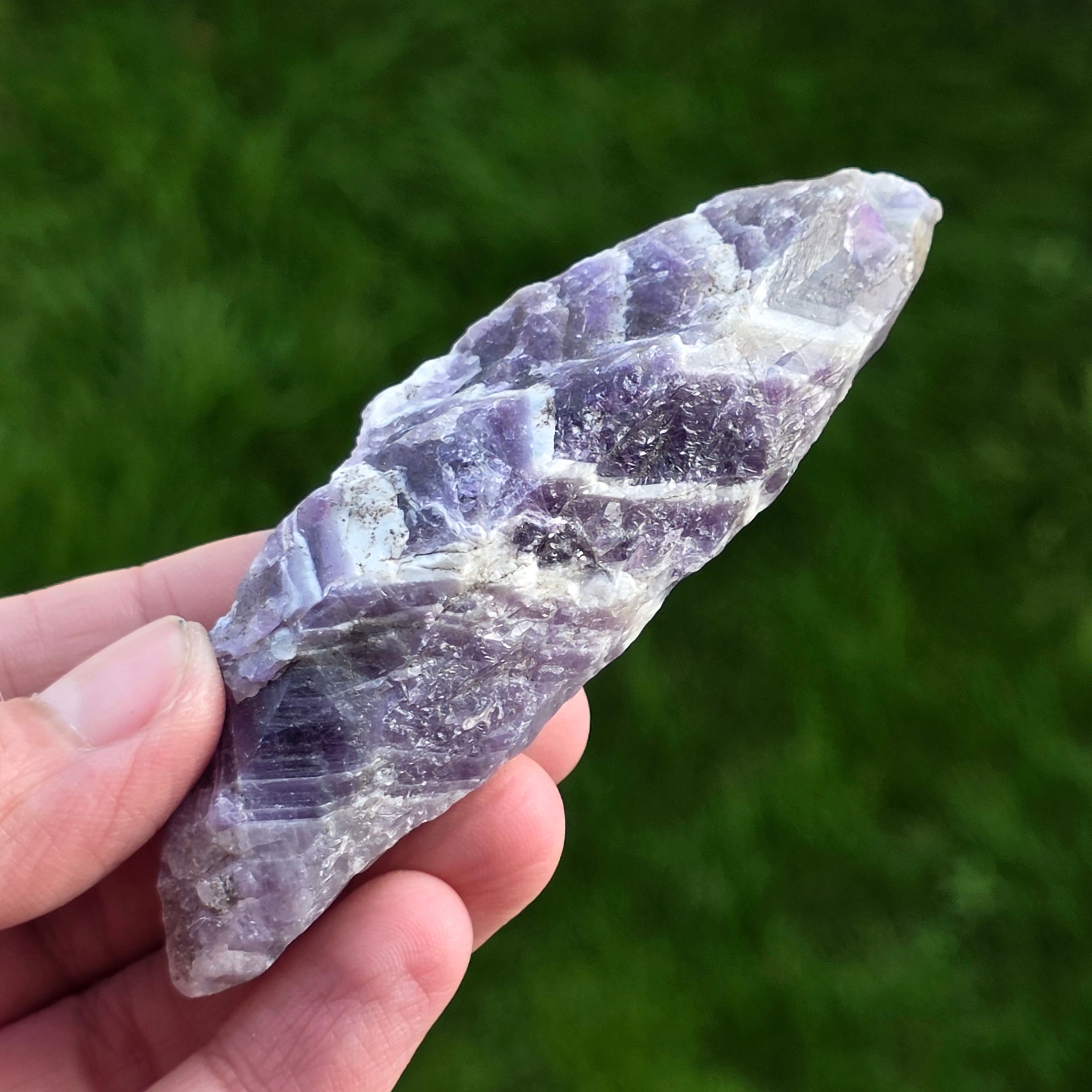 Amethyst Chevron Rohstein / Spitze m12, Größe 7.5 * 3,5 * 2,5 cm
