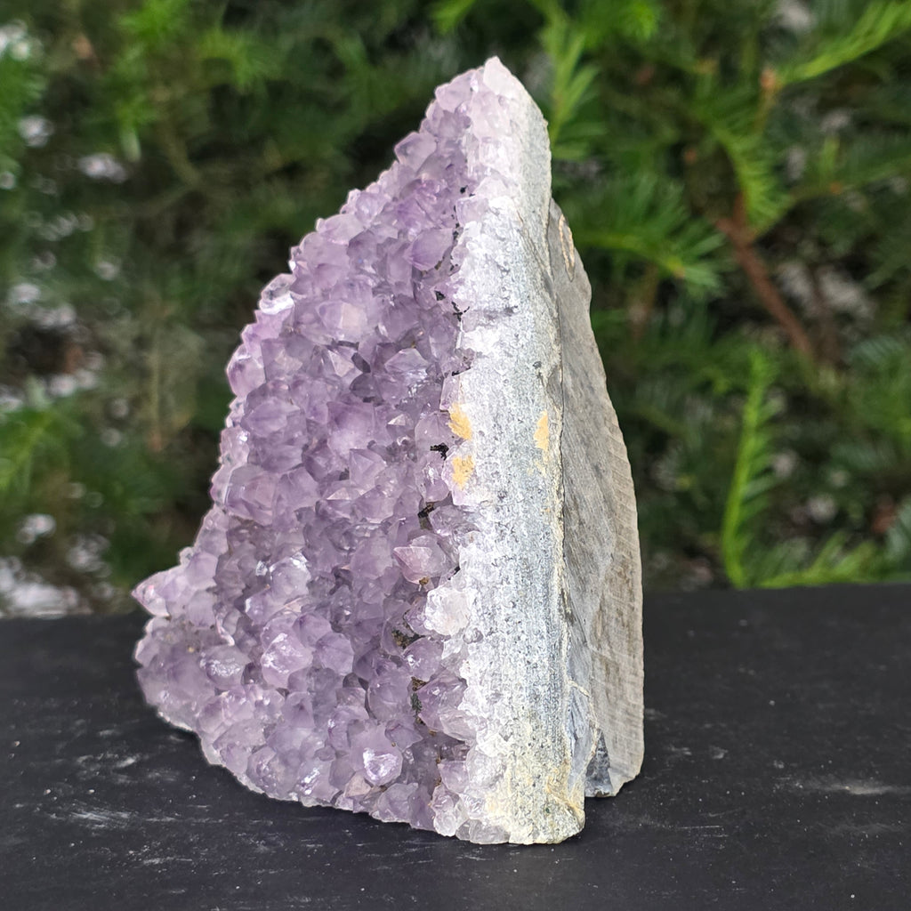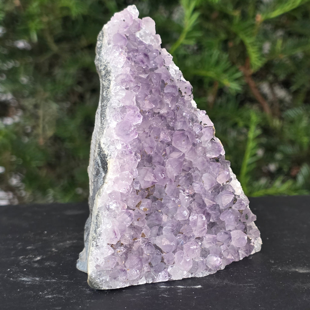 Amethyst kann in der Meditation, als Schmuck oder als natürlicher und eleganter Look für Ihr Zuhause oder Büro verwendet werden. Das Platzieren von Amethyst im Haus verleiht dem Ort Schönheit und kann dazu beitragen, eine beruhigende Atmosphäre zu schaffen, die die Schlafqualität verbessert, wenn er im Schlafzimmer platziert wird.