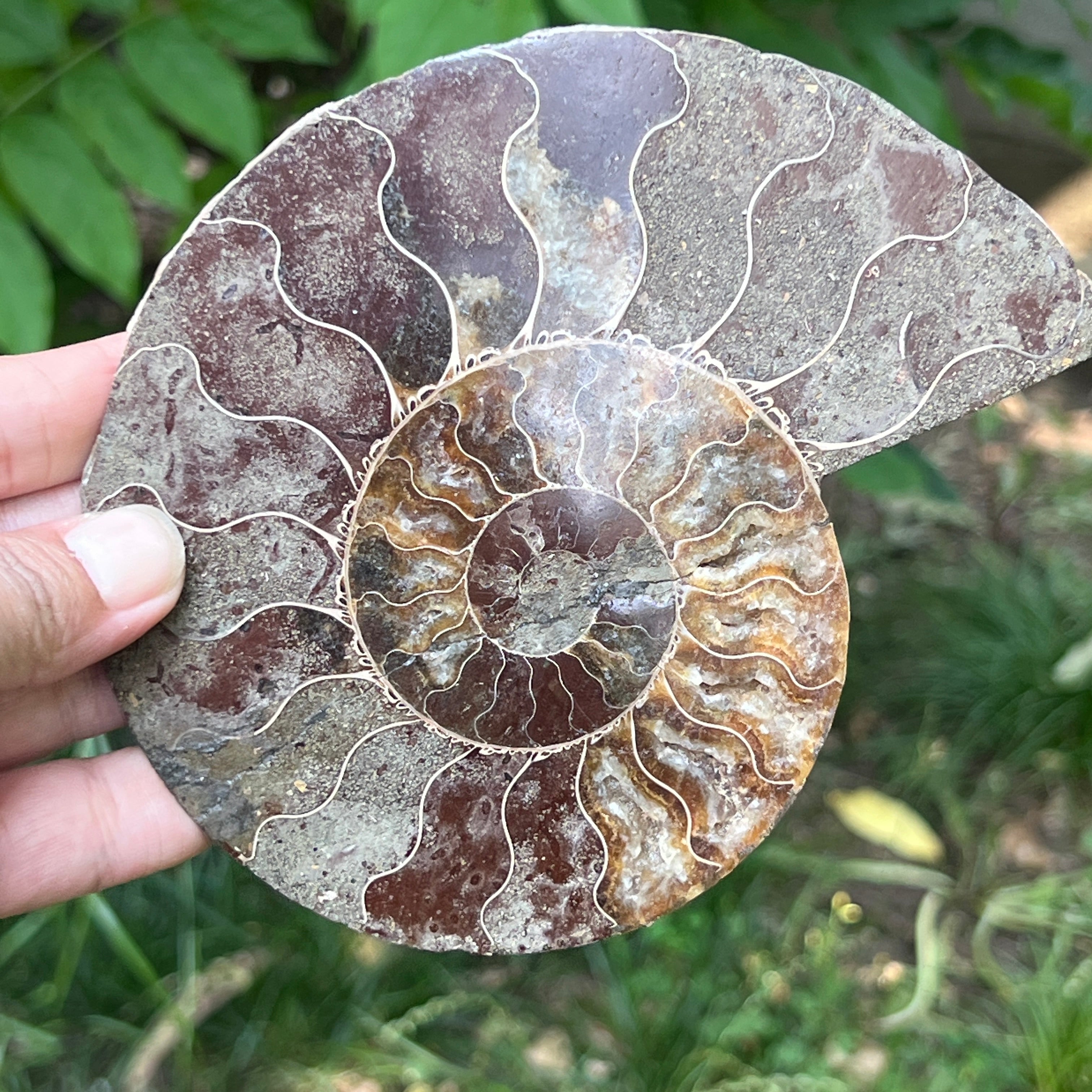 Die fossilen Ammonitiskristalle bestehen aus authentischen Ammonitfossilien. Diese Fossilien können je nach Arten und der geologischen Zeit, in der sie lebten, unterschiedliche Größen und Ornamente haben.