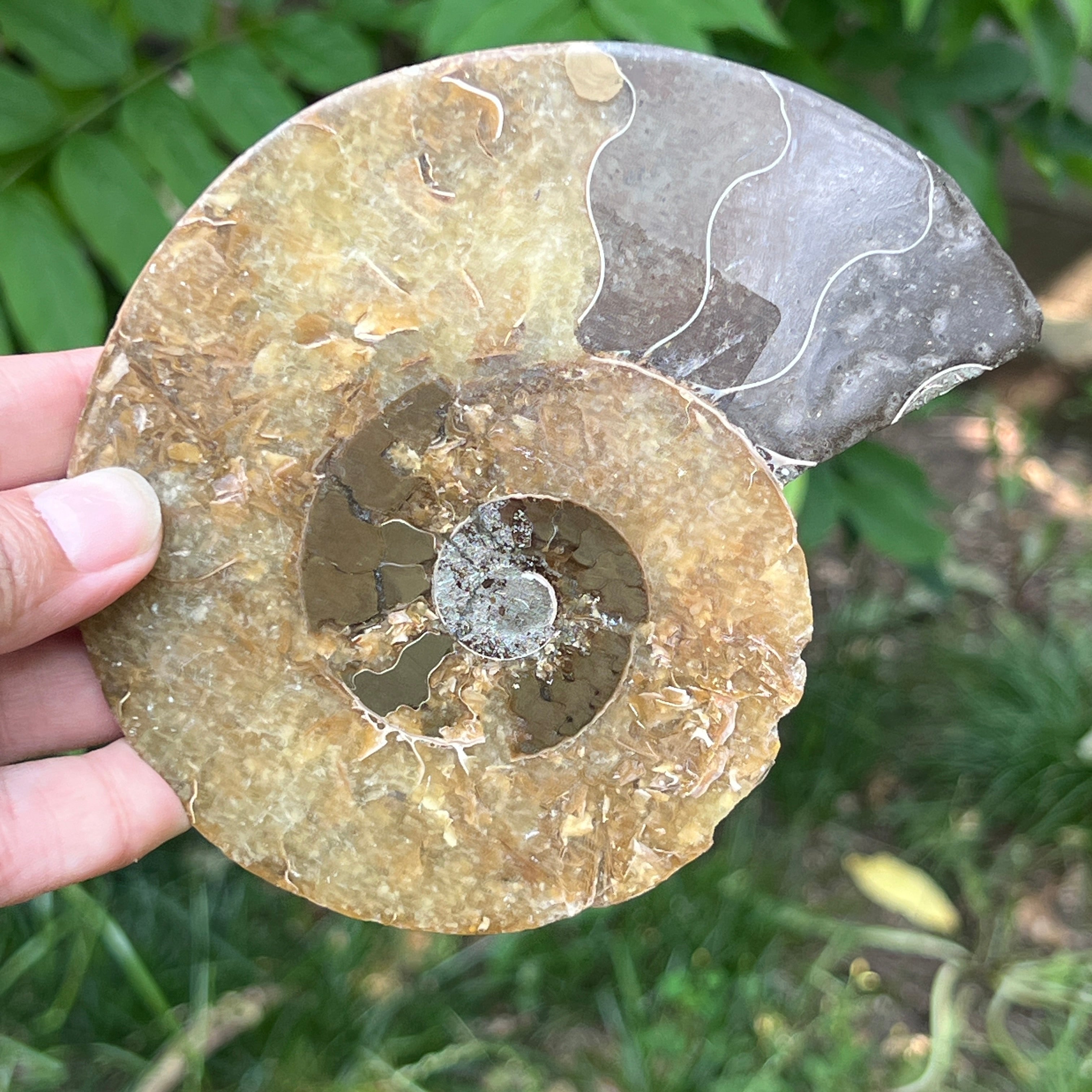 Die fossilen Ammonitiskristalle bestehen aus authentischen Ammonitfossilien. Diese Fossilien können je nach Arten und der geologischen Zeit, in der sie lebten, unterschiedliche Größen und Ornamente haben.