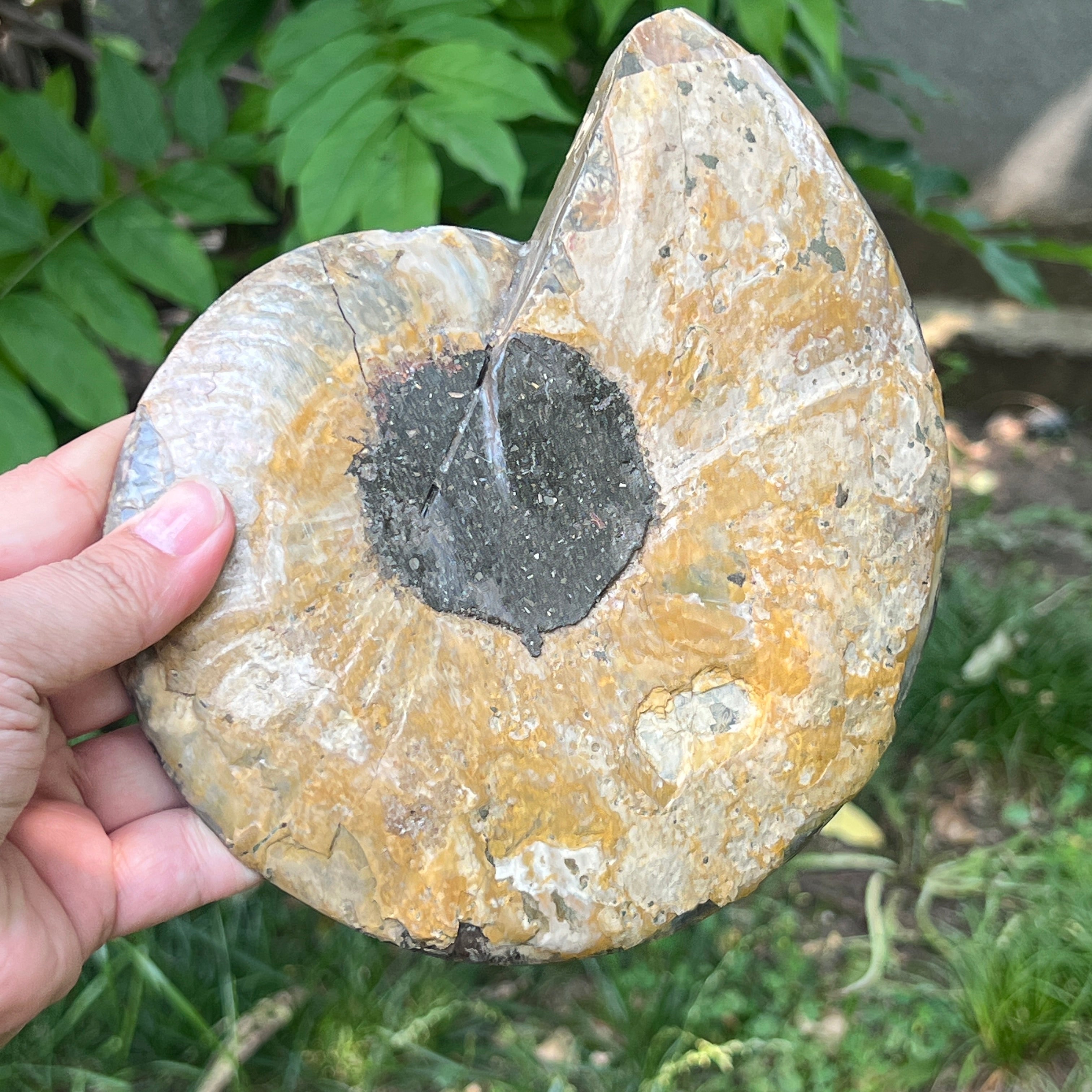 Die fossilen Ammonitiskristalle bestehen aus authentischen Ammonitfossilien. Diese Fossilien können je nach Arten und der geologischen Zeit, in der sie lebten, unterschiedliche Größen und Ornamente haben.