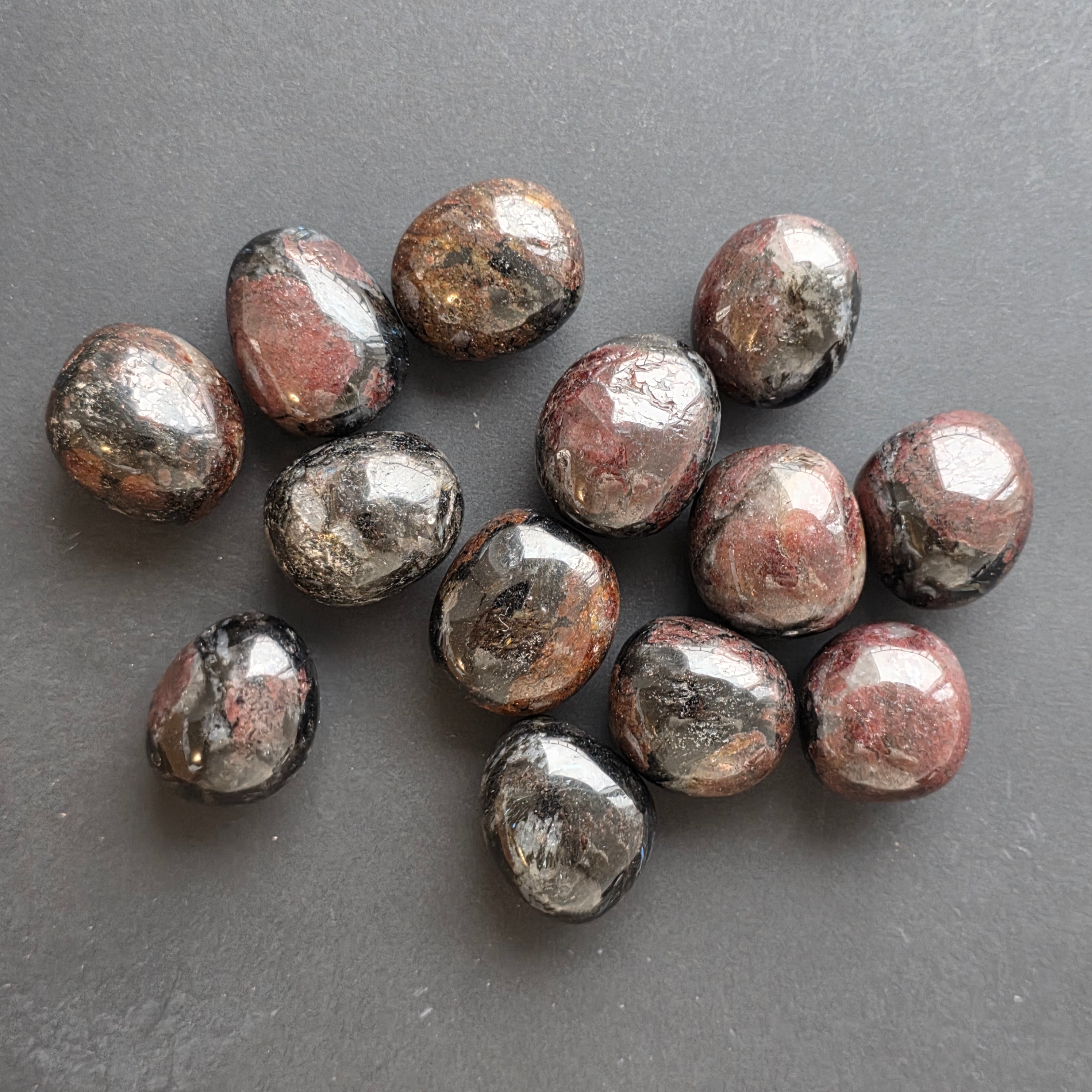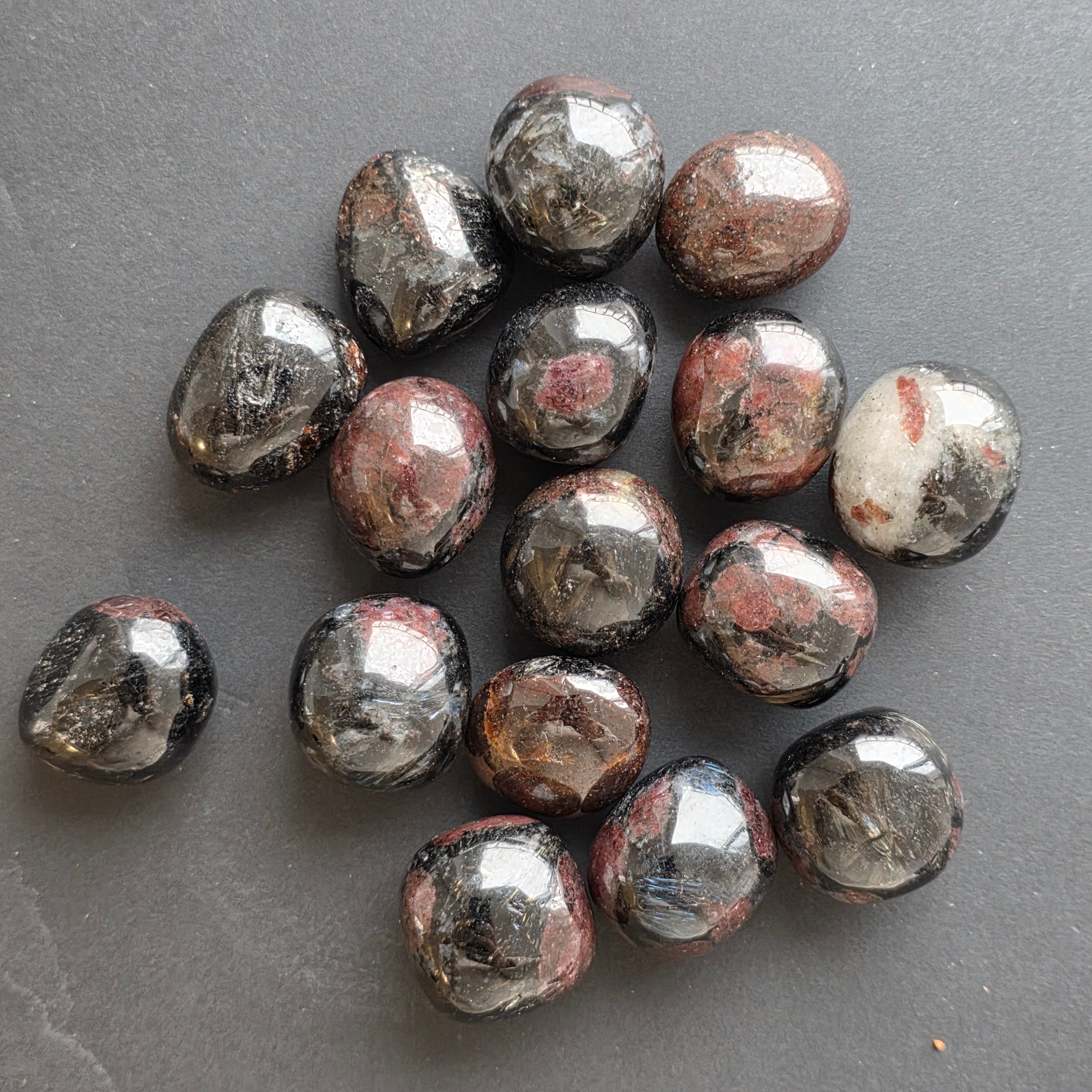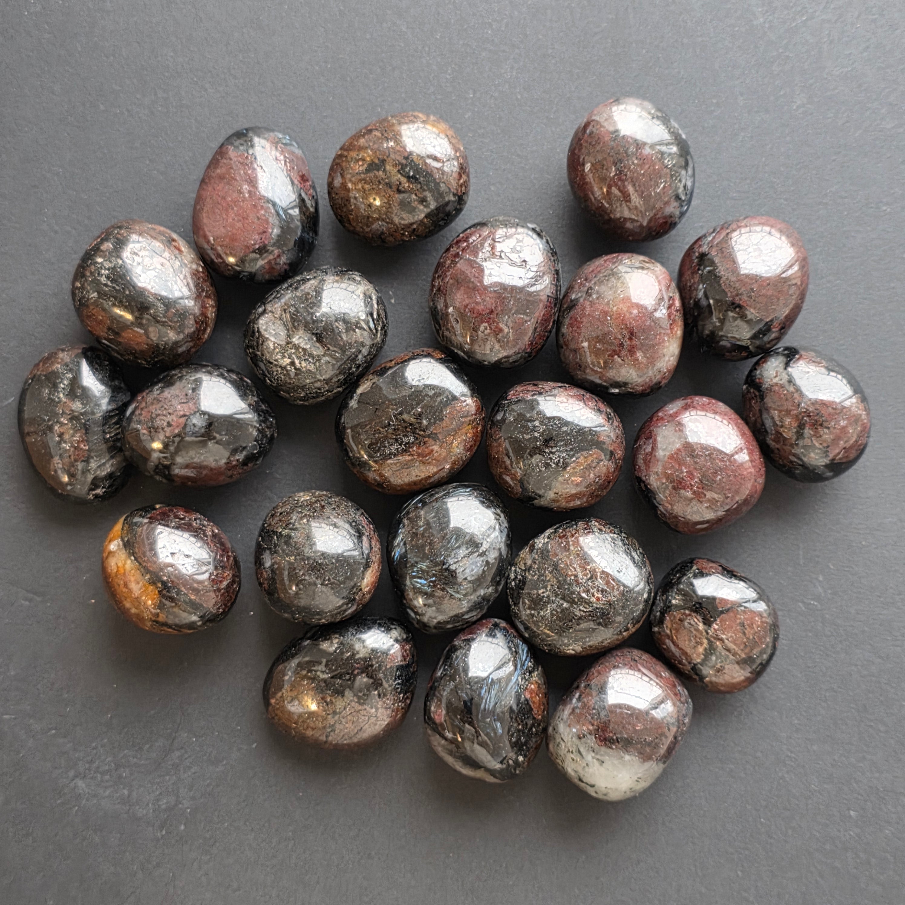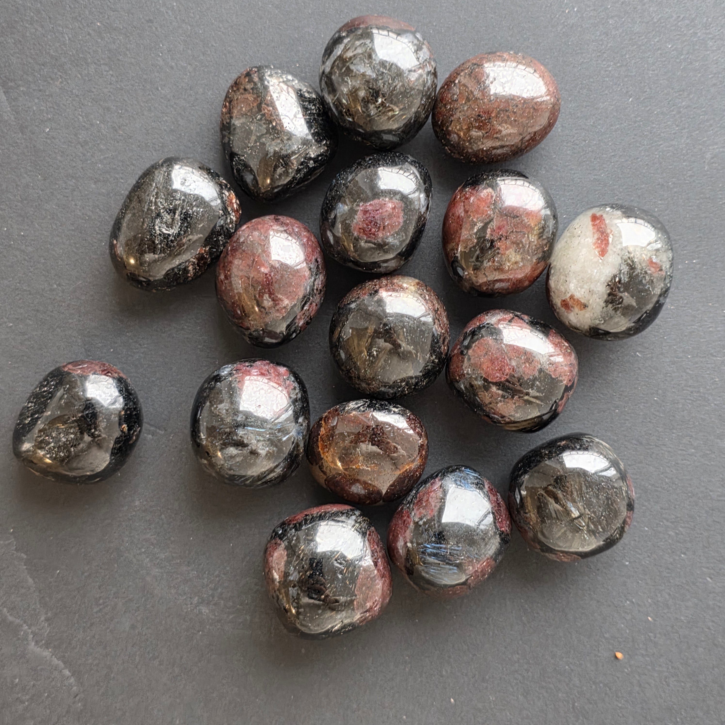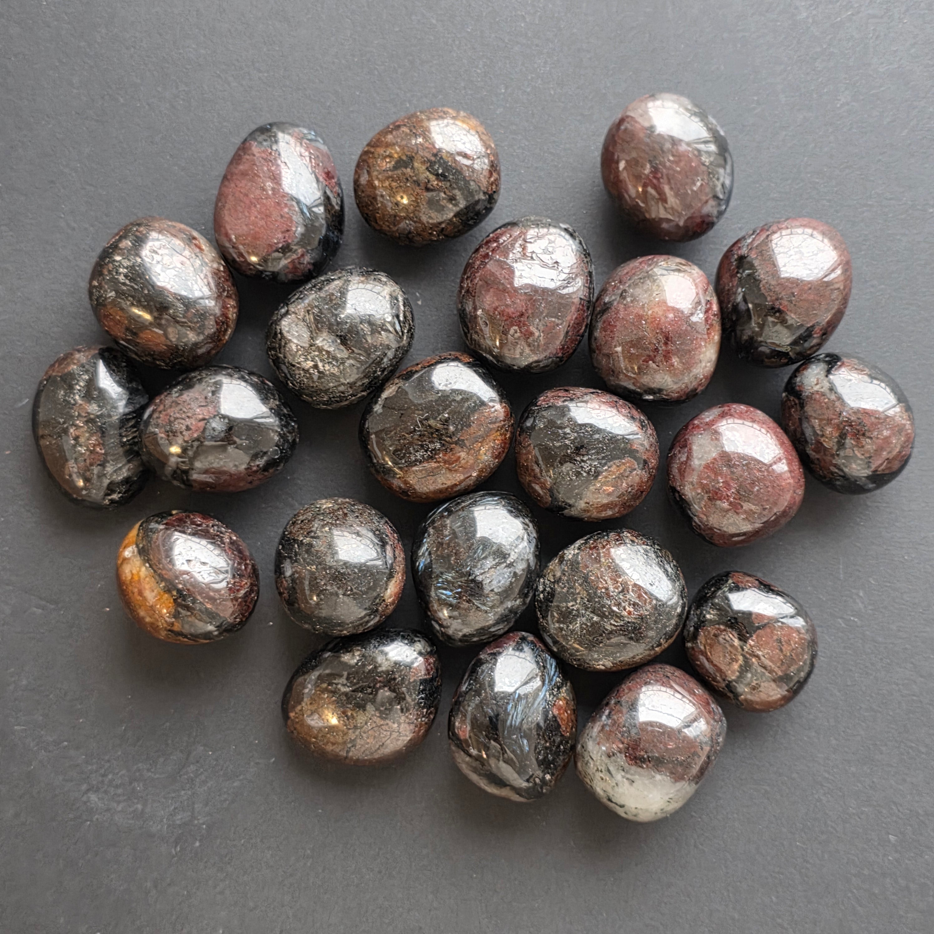 Antofilitul cu granat este o combinație minerală rară, formată când cristalele fibrose de antofilit se dezvoltă alături de granatul roșu-brun. Este o piesă apreciată atât estetic, cât și energetic, fiind asociată cu stabilitatea interioară, curajul și claritatea deciziilor. Granatul amplifică structura antofilitului, oferind o energie ancorată, protectoare, potrivită pentru meditație și pentru cei care caută reziliență și forță în perioade de transformare.