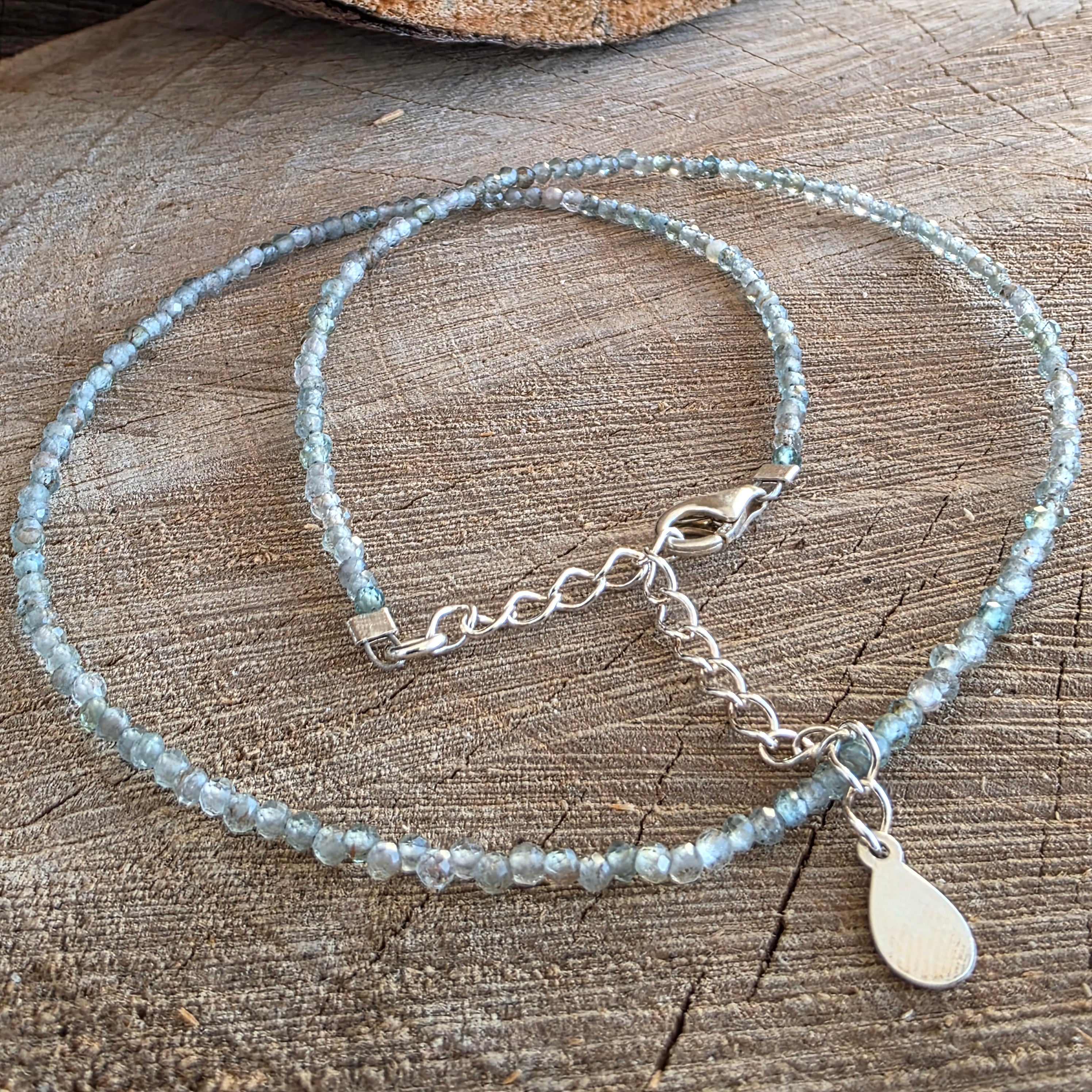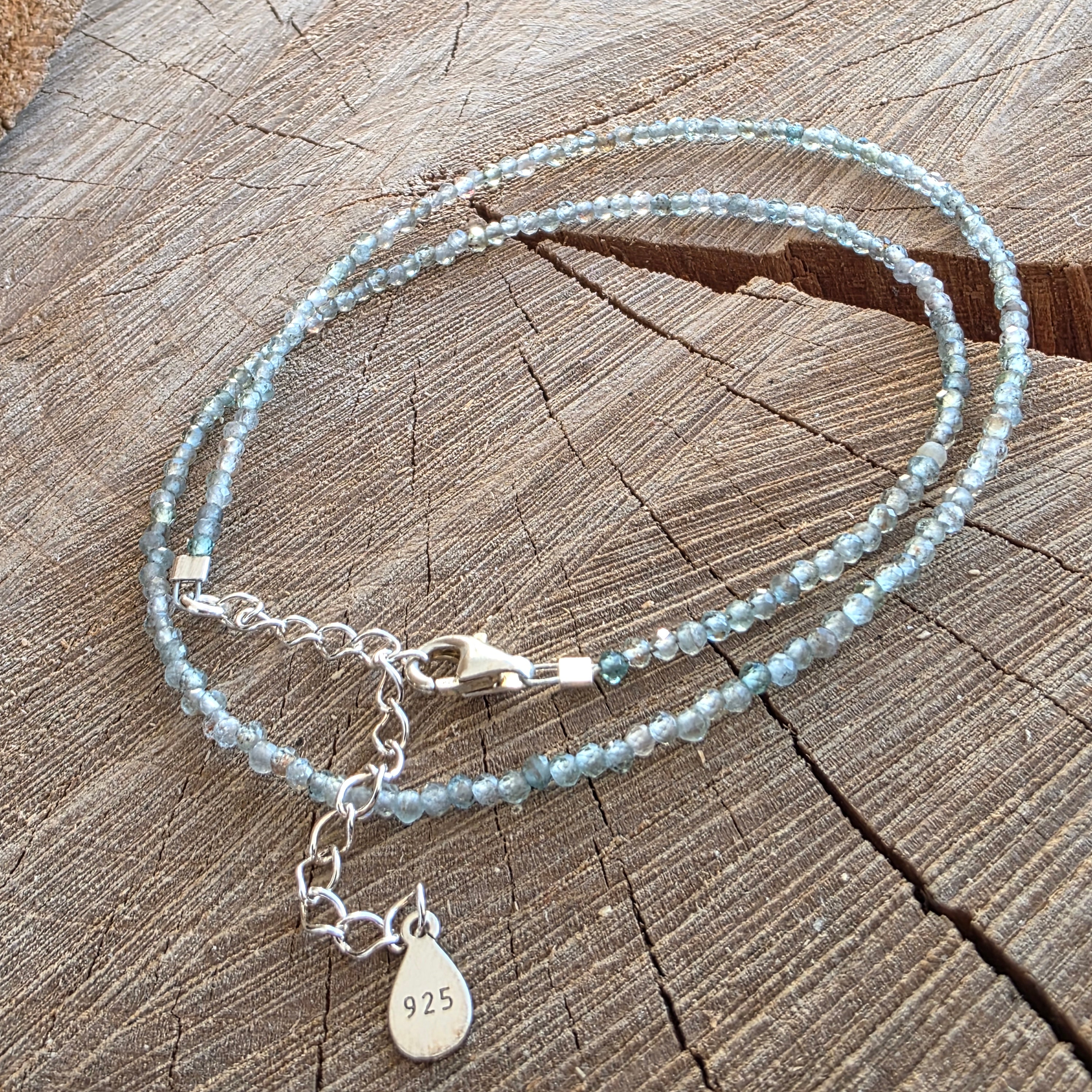 Materialien: Apatit Blue Facette 2,5–3 mm, 925 Silber