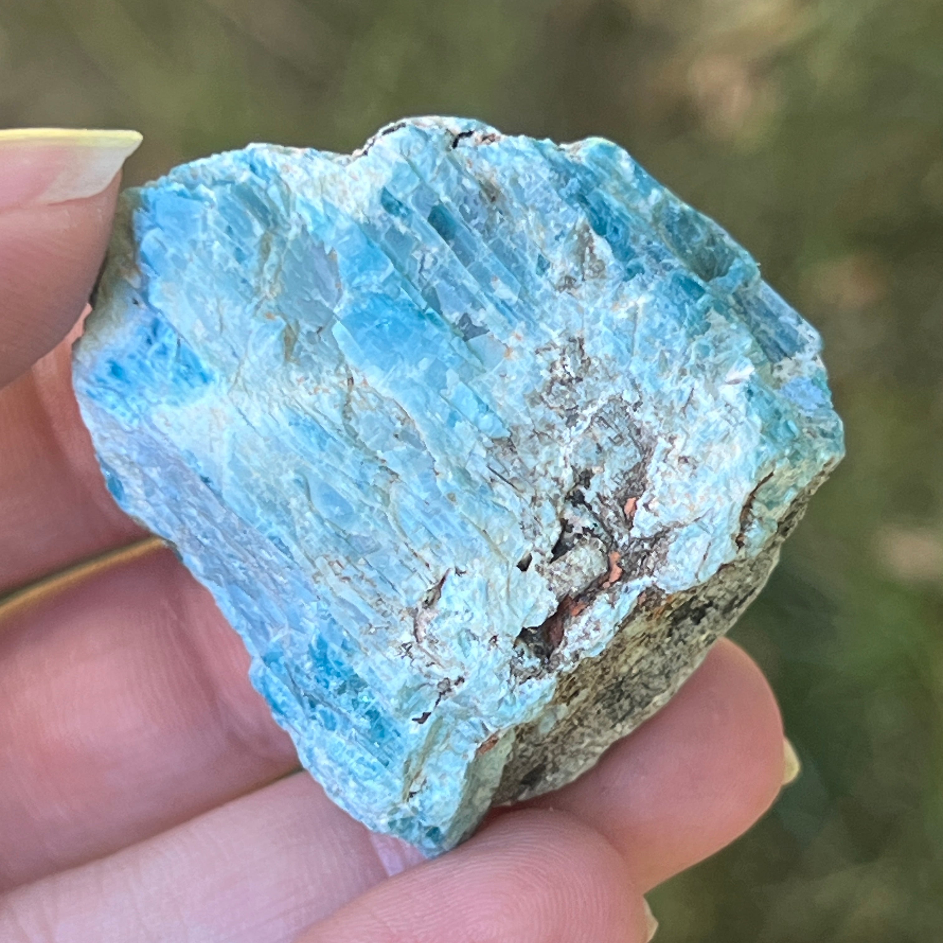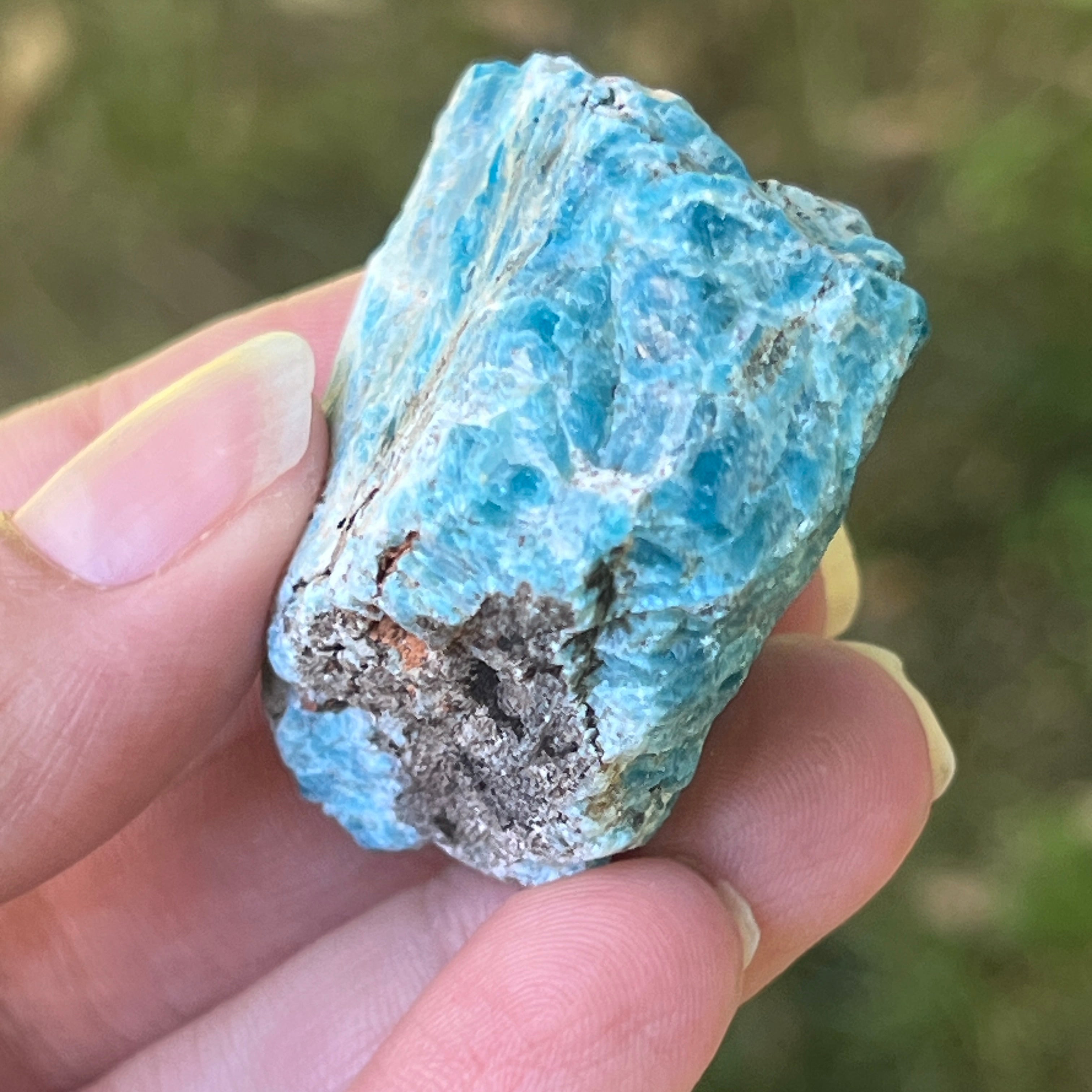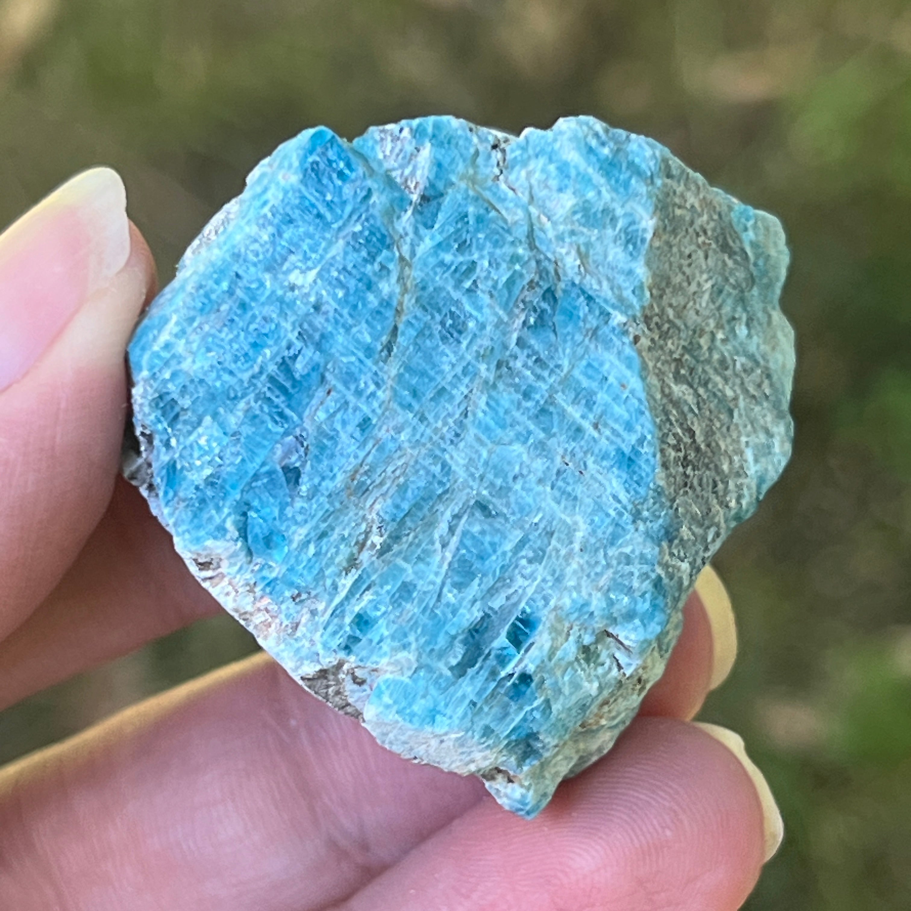 Der blaue Apatit ist für die Verbesserung der Kommunikation und zum Ausdruck anerkannt und ist nützlich für diejenigen, die unter sozialer Angst oder Angst vor dem Sprechen in der Öffentlichkeit leiden. Es wird auch gesagt, dass dieser Stein dazu beiträgt, Kreativität und Verständnis zu erhöhen.