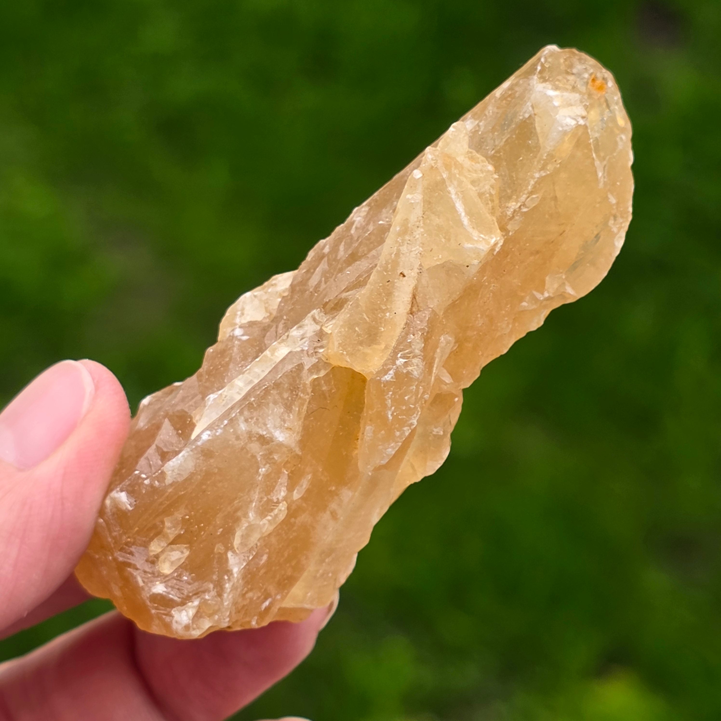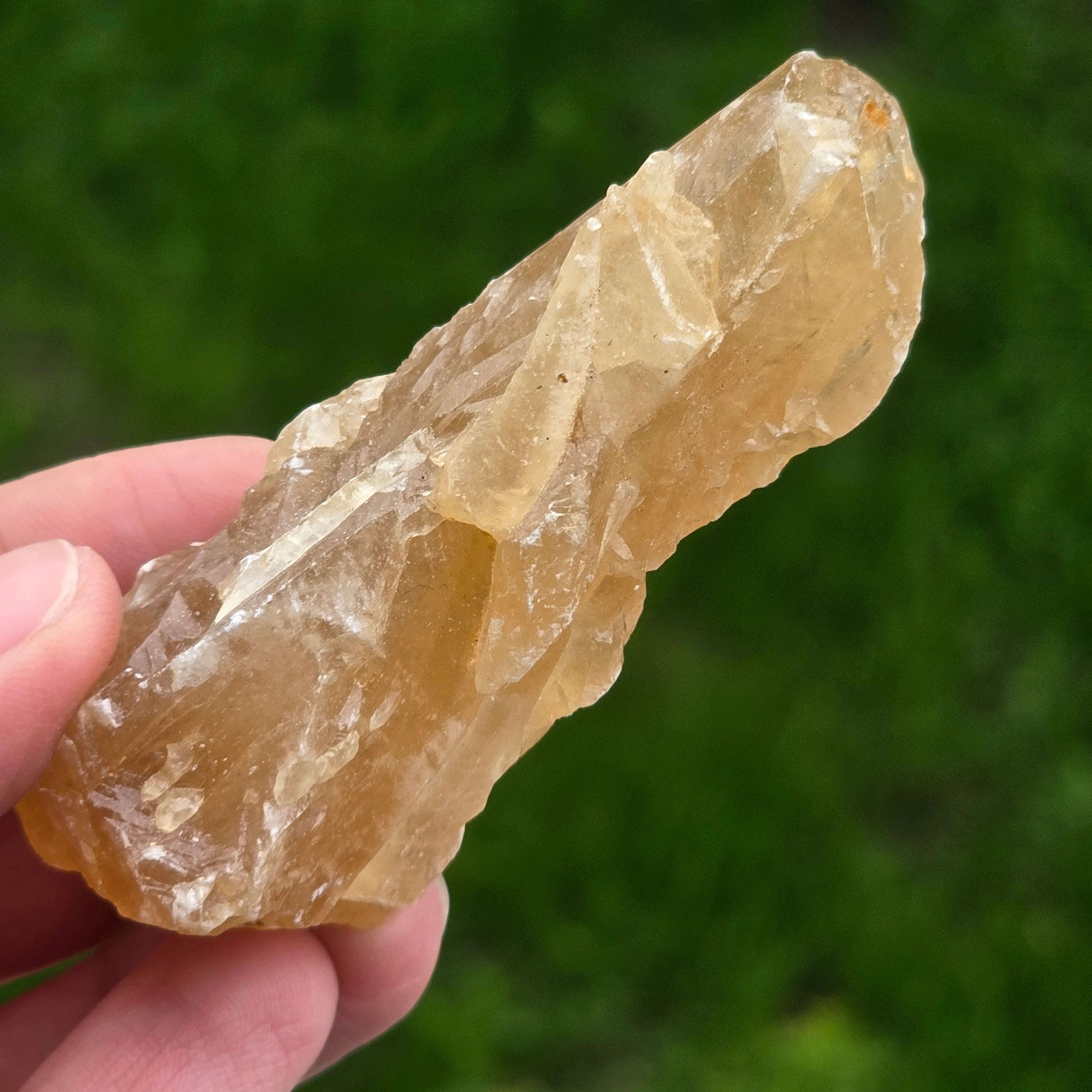 Namibischer Honigaragonit ist eine Aragonitart mit warmen Gelb-, Orange- und Hellbrauntönen, die dem Honig ähneln, daher der Name. Aragonit ist ein Mineral aus der Carbonatfamilie mit orthorhombischer Kristallstruktur, das chemisch dem Calcit ähnelt, sich jedoch in der Kristallisation unterscheidet.