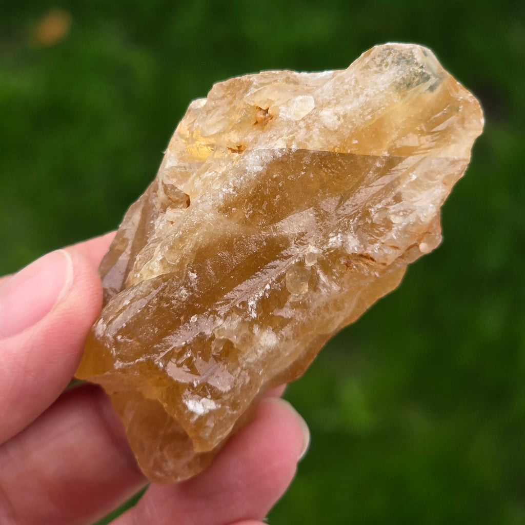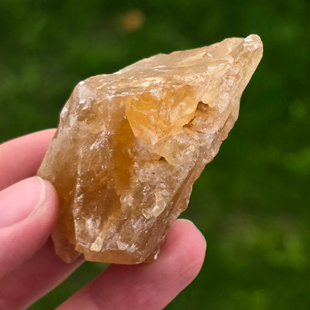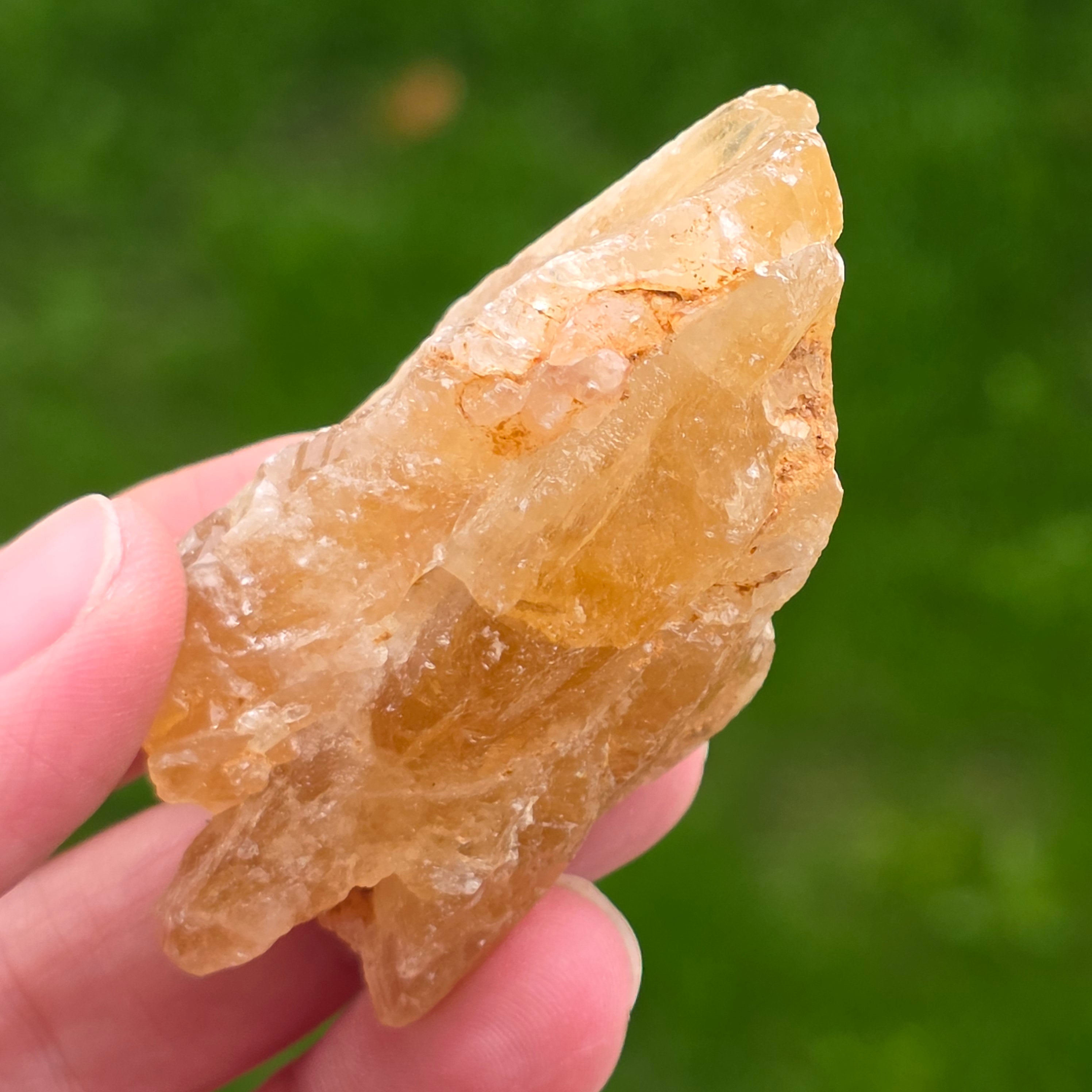Namibischer Honigaragonit ist eine Aragonitart mit warmen Gelb-, Orange- und Hellbrauntönen, die dem Honig ähneln, daher der Name. Aragonit ist ein Mineral aus der Carbonatfamilie mit orthorhombischer Kristallstruktur, das chemisch dem Calcit ähnelt, sich jedoch in der Kristallisation unterscheidet.