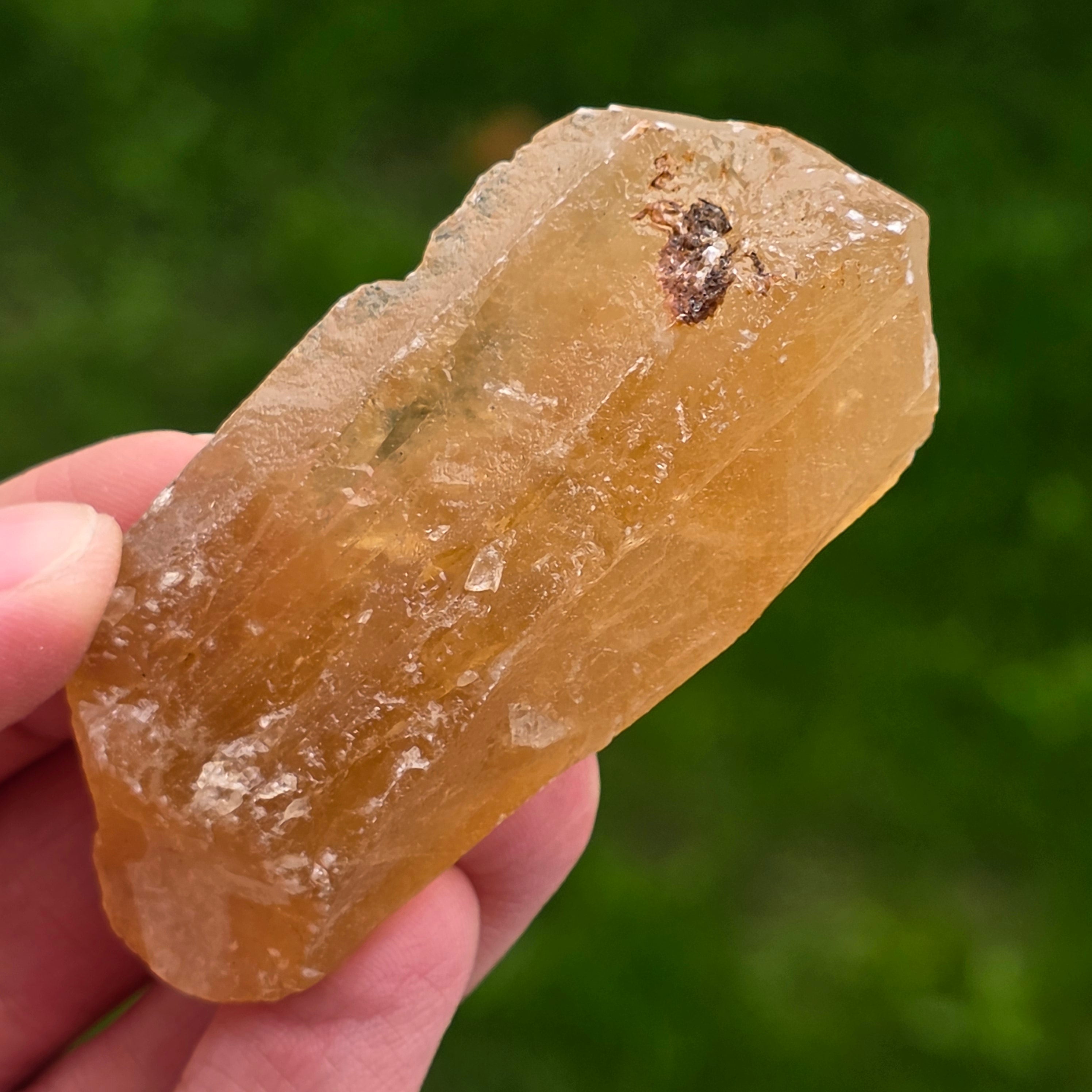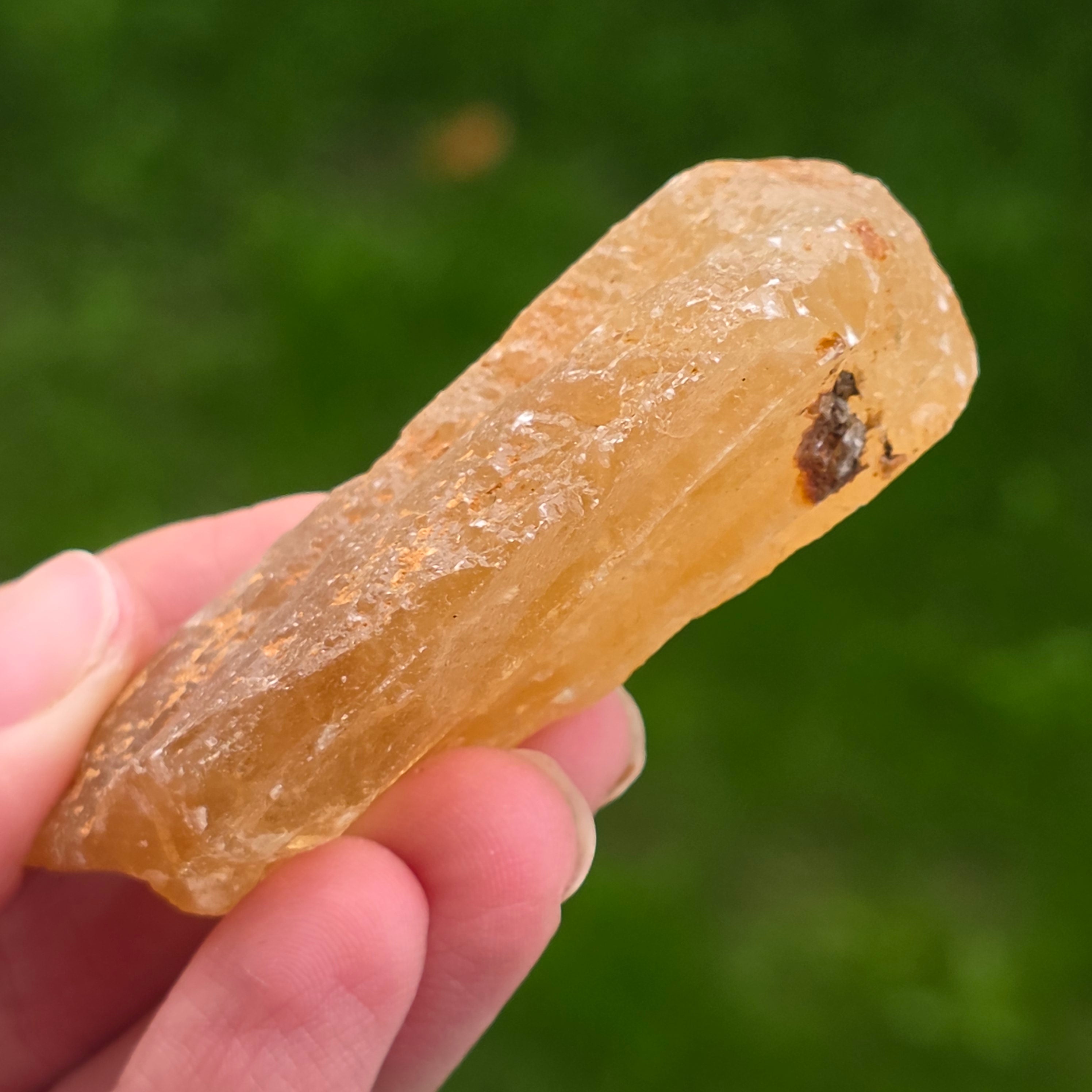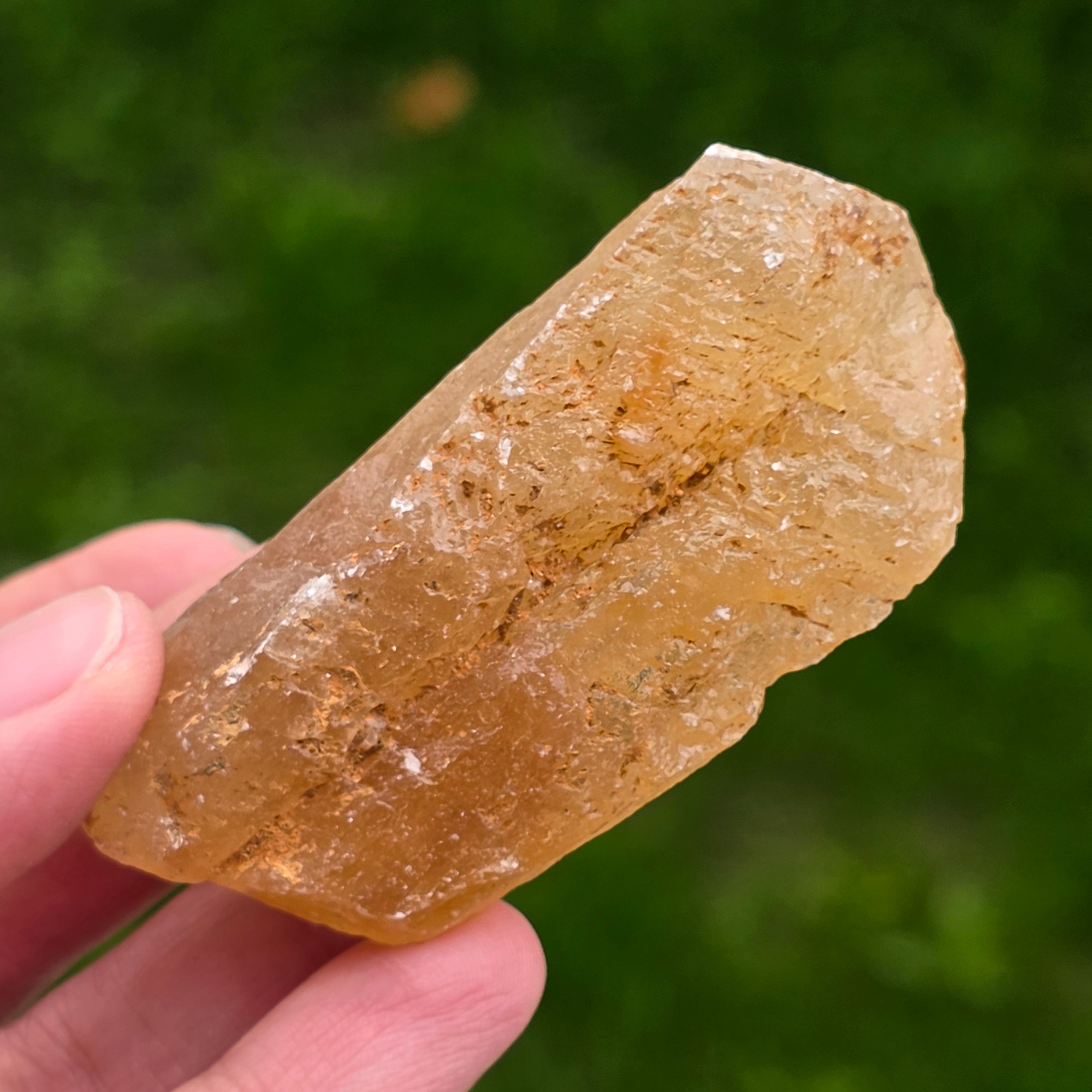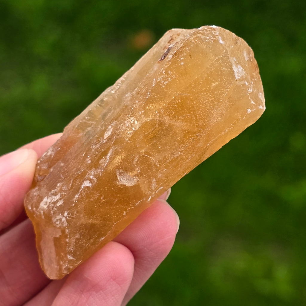 Namibischer Honigaragonit ist eine Aragonitart mit warmen Gelb-, Orange- und Hellbrauntönen, die dem Honig ähneln, daher der Name. Aragonit ist ein Mineral aus der Carbonatfamilie mit orthorhombischer Kristallstruktur, das chemisch dem Calcit ähnelt, sich jedoch in der Kristallisation unterscheidet.