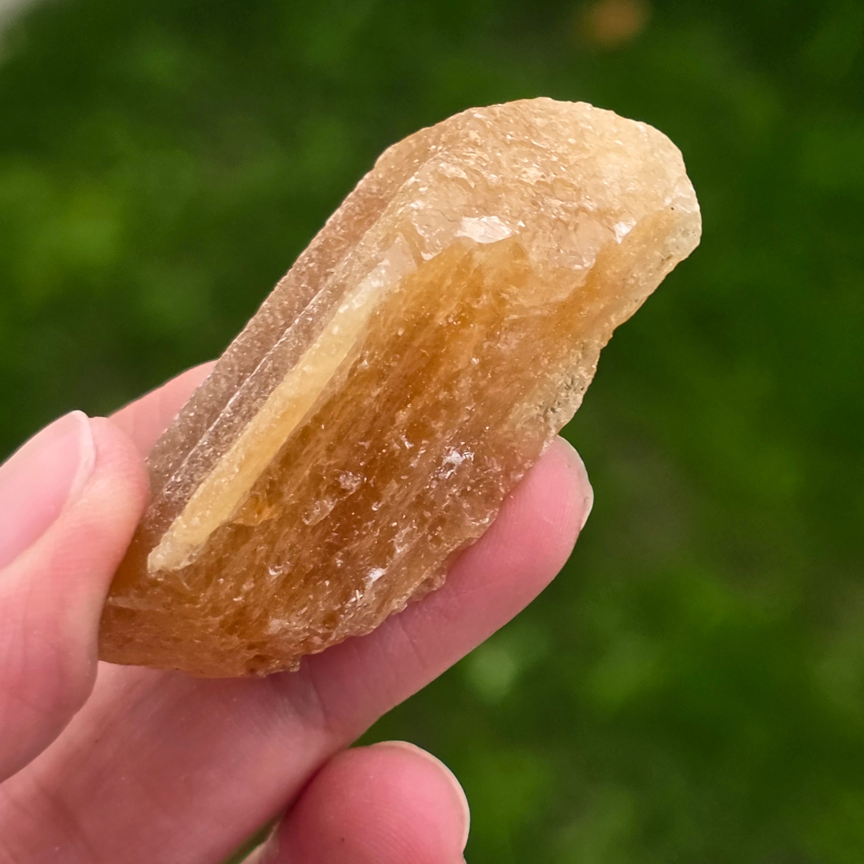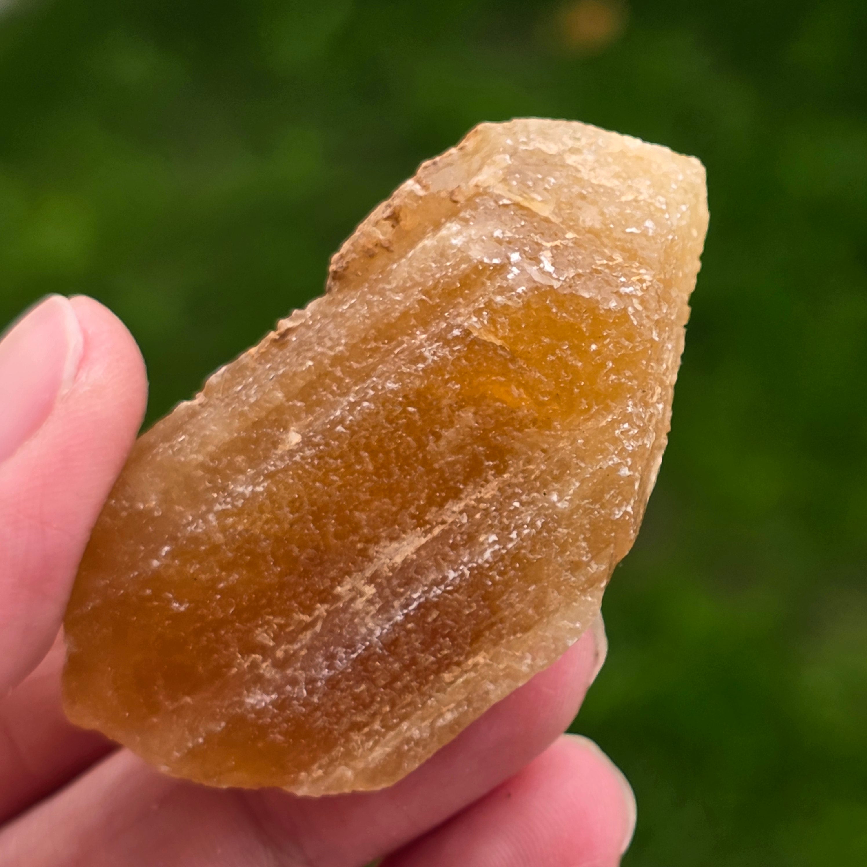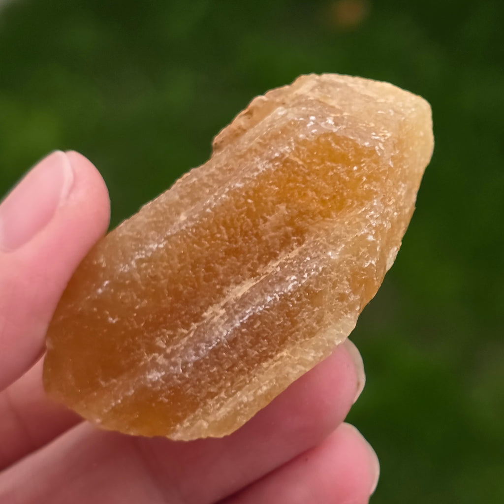 Namibischer Honigaragonit ist eine Aragonitart mit warmen Gelb-, Orange- und Hellbrauntönen, die dem Honig ähneln, daher der Name. Aragonit ist ein Mineral aus der Carbonatfamilie mit orthorhombischer Kristallstruktur, das chemisch dem Calcit ähnelt, sich jedoch in der Kristallisation unterscheidet.