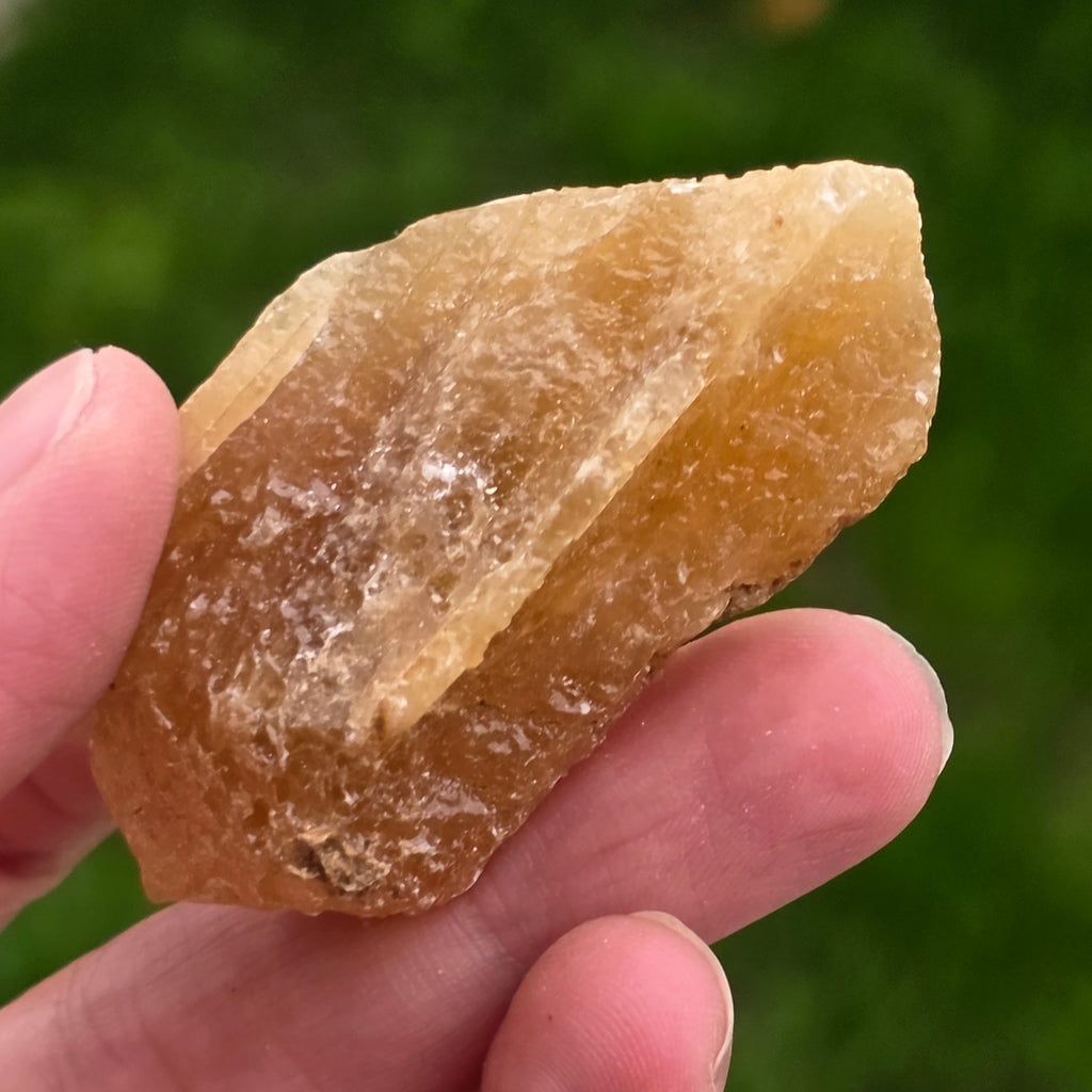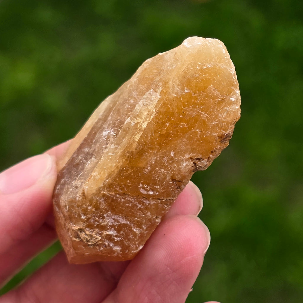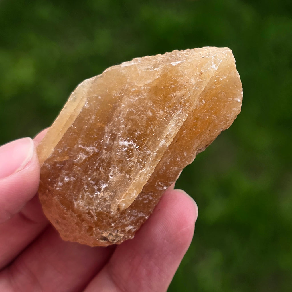 Namibischer Honigaragonit ist eine Aragonitart mit warmen Gelb-, Orange- und Hellbrauntönen, die dem Honig ähneln, daher der Name. Aragonit ist ein Mineral aus der Carbonatfamilie mit orthorhombischer Kristallstruktur, das chemisch dem Calcit ähnelt, sich jedoch in der Kristallisation unterscheidet.