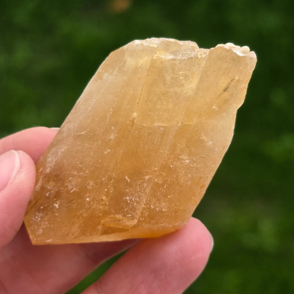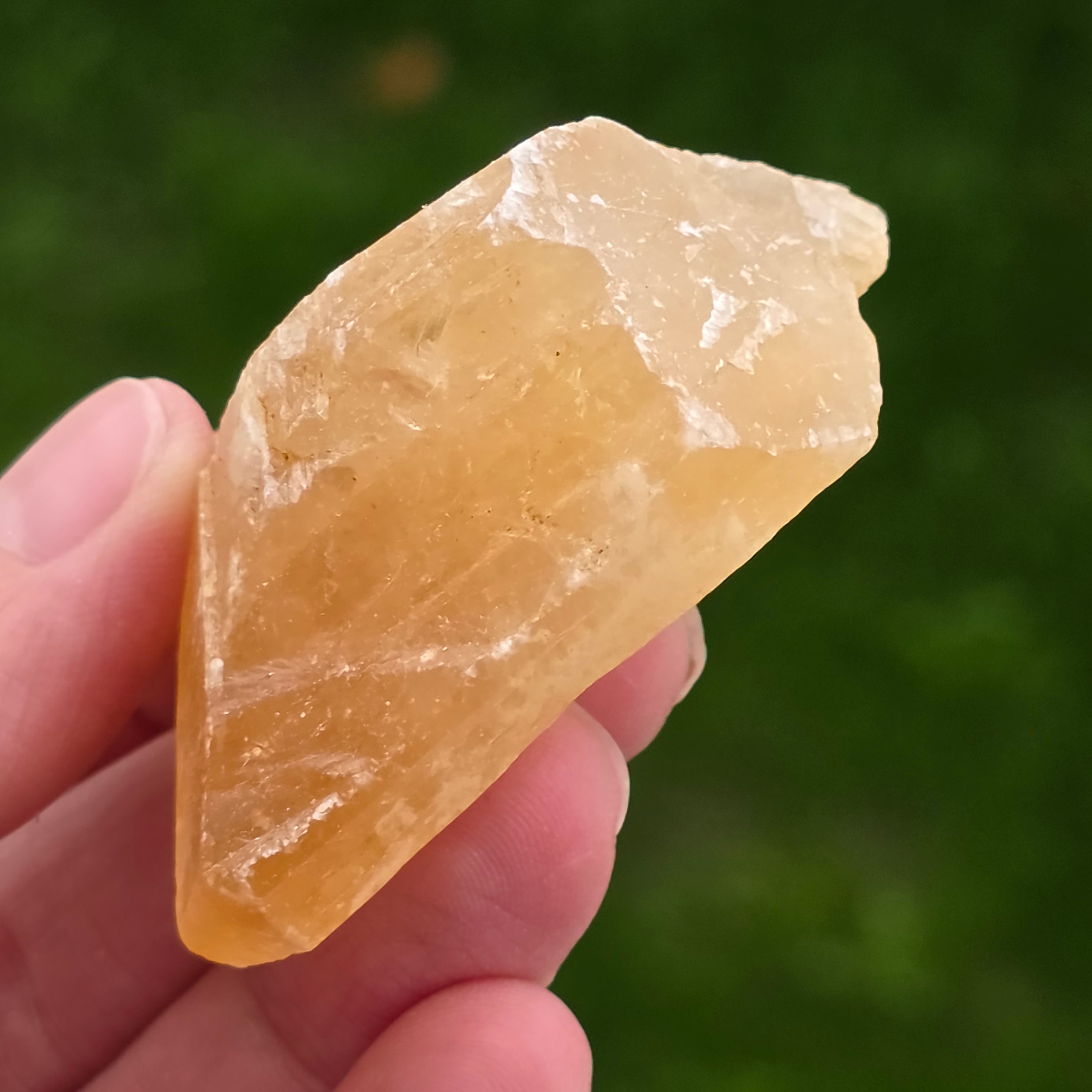 Namibischer Honigaragonit ist eine Aragonitart mit warmen Gelb-, Orange- und Hellbrauntönen, die dem Honig ähneln, daher der Name. Aragonit ist ein Mineral aus der Carbonatfamilie mit orthorhombischer Kristallstruktur, das chemisch dem Calcit ähnelt, sich jedoch in der Kristallisation unterscheidet.