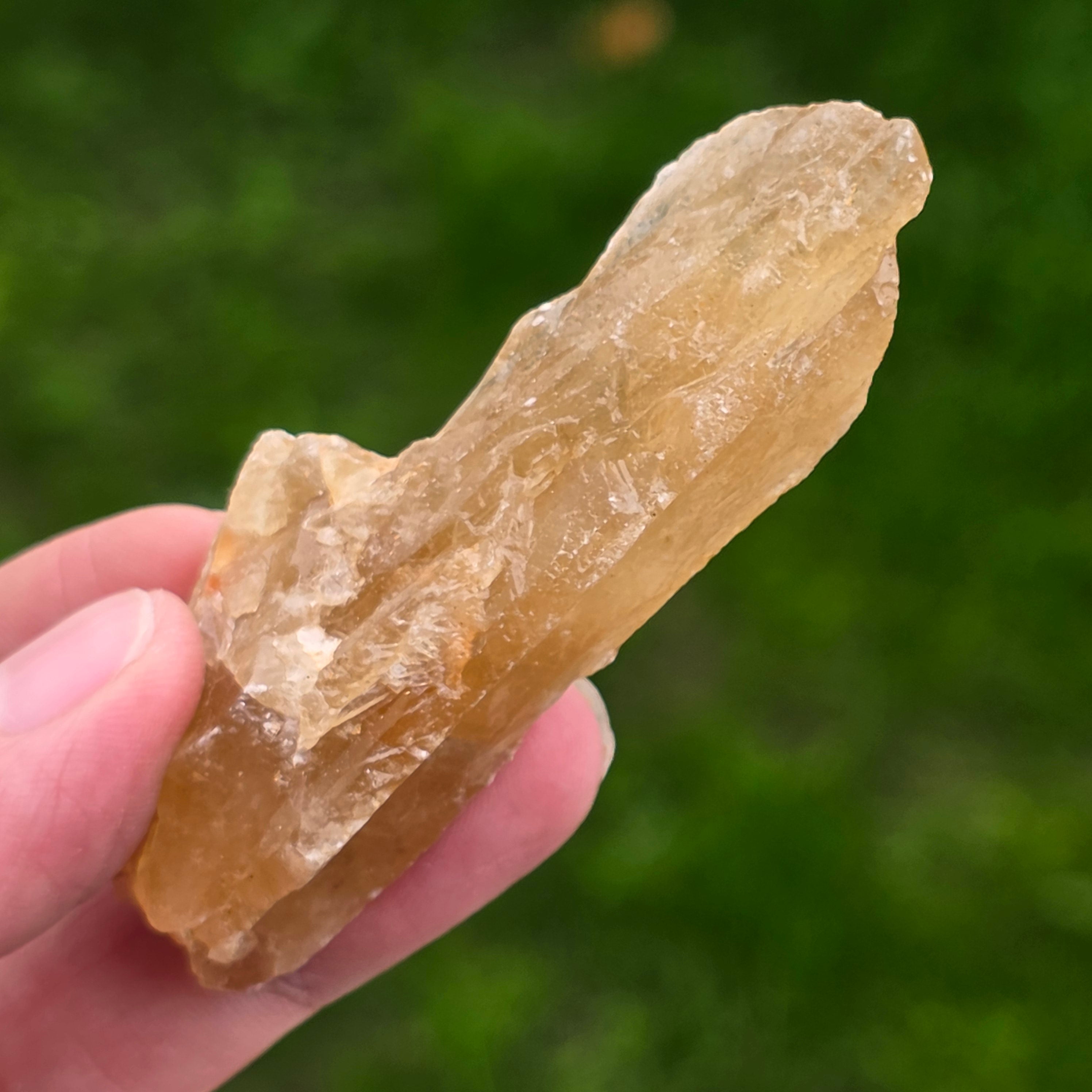 Namibischer Honigaragonit ist eine Aragonitart mit warmen Gelb-, Orange- und Hellbrauntönen, die dem Honig ähneln, daher der Name. Aragonit ist ein Mineral aus der Carbonatfamilie mit orthorhombischer Kristallstruktur, das chemisch dem Calcit ähnelt, sich jedoch in der Kristallisation unterscheidet.