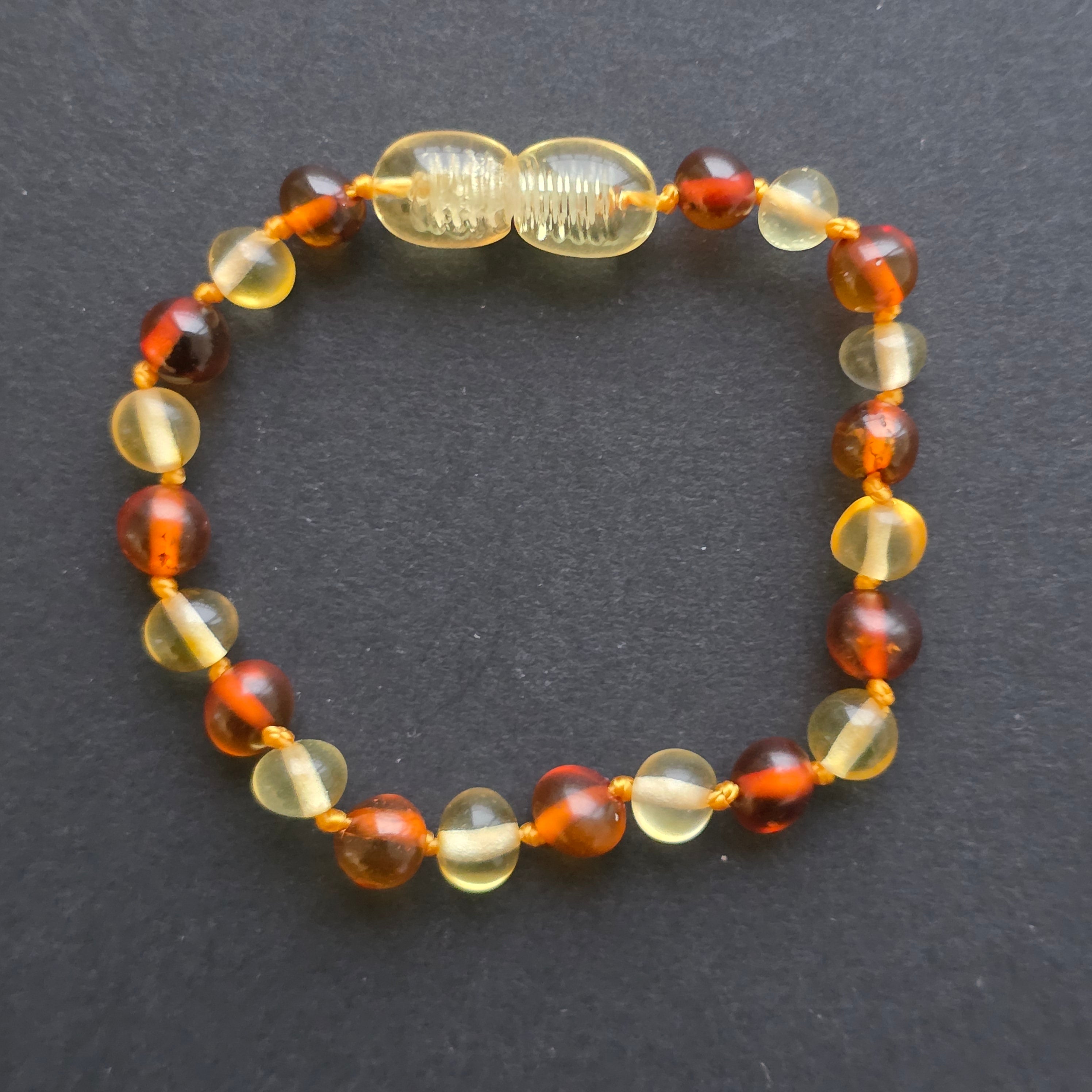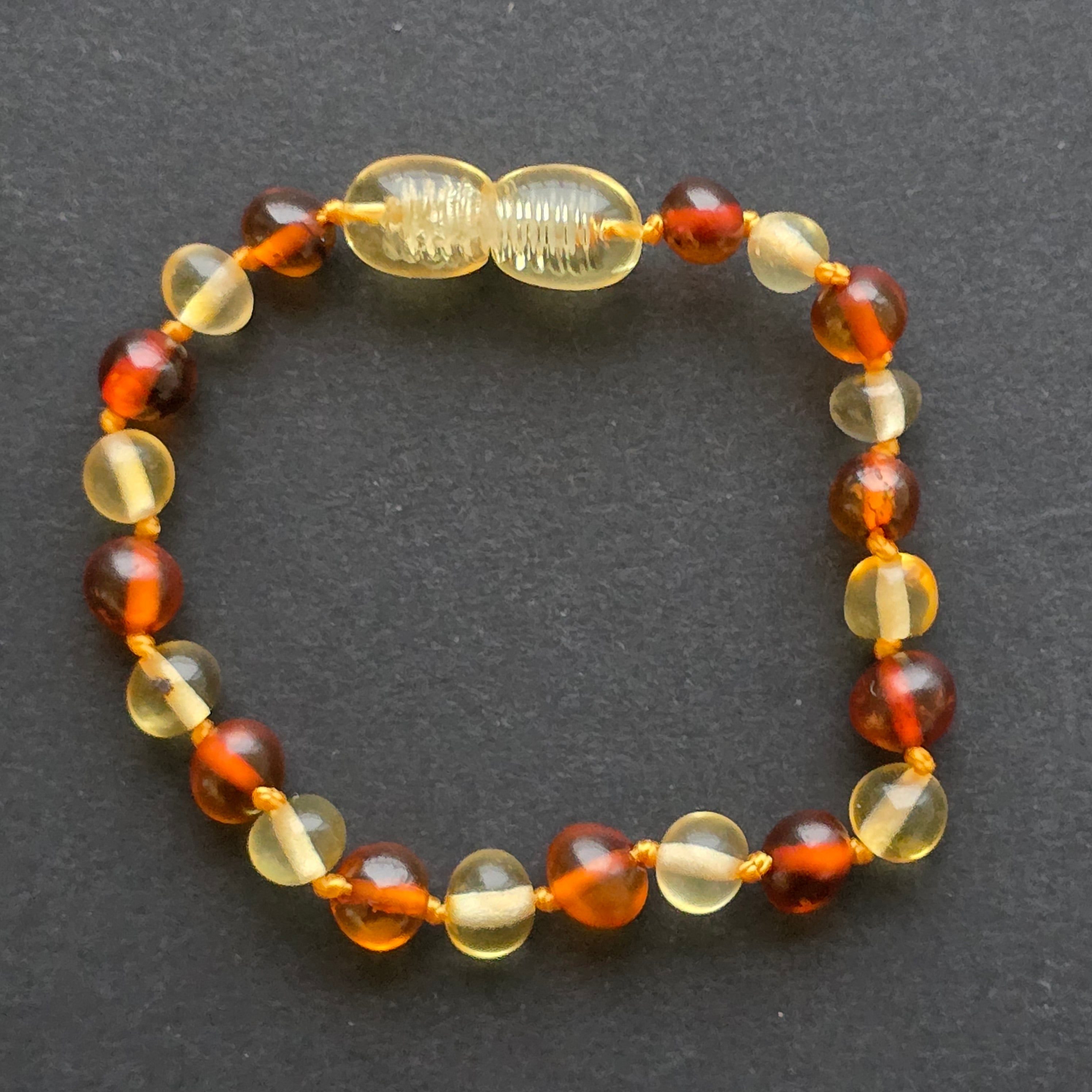 Der Bernstein ist bekannt für seine Eigenschaften, Zahnschmerzen während der Gebisszeit zu lindern und zu lindern. In Form einer Halskette oder eines Armbandes treibt der Bernstein ein natürliches Öl namens Succinsäure frei, von dem angenommen wird, dass sie analgetische und entzündungshemmende Wirkungen haben.