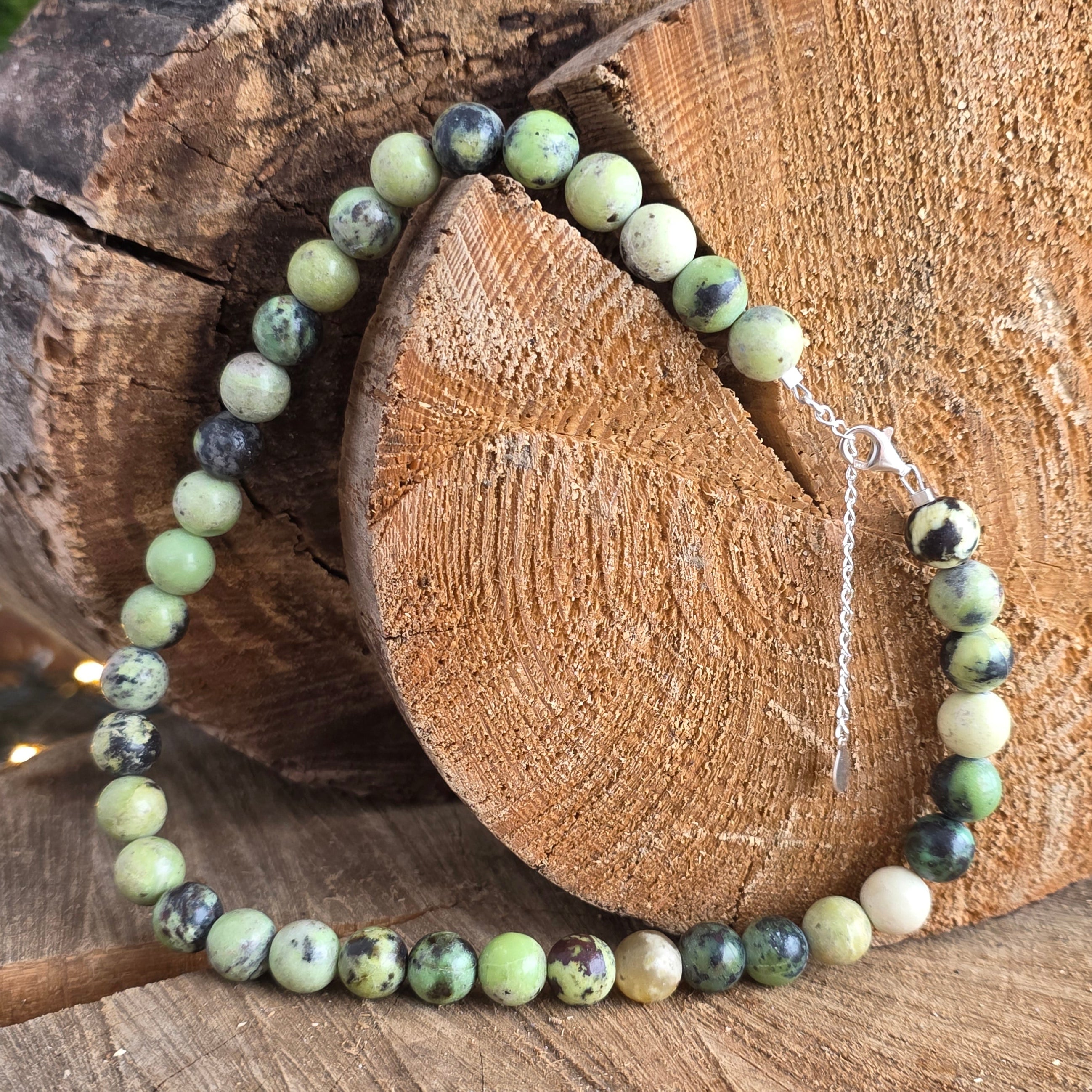 Grüner Jade wird mit dem Herzchakra in Verbindung gebracht – dem Ort des Mitgefühls, der Akzeptanz und der bedingungslosen Liebe. Er bringt Harmonie, Glück und Gelassenheit und wird oft als Symbol für ruhigen Überfluss und energetischen Schutz getragen.