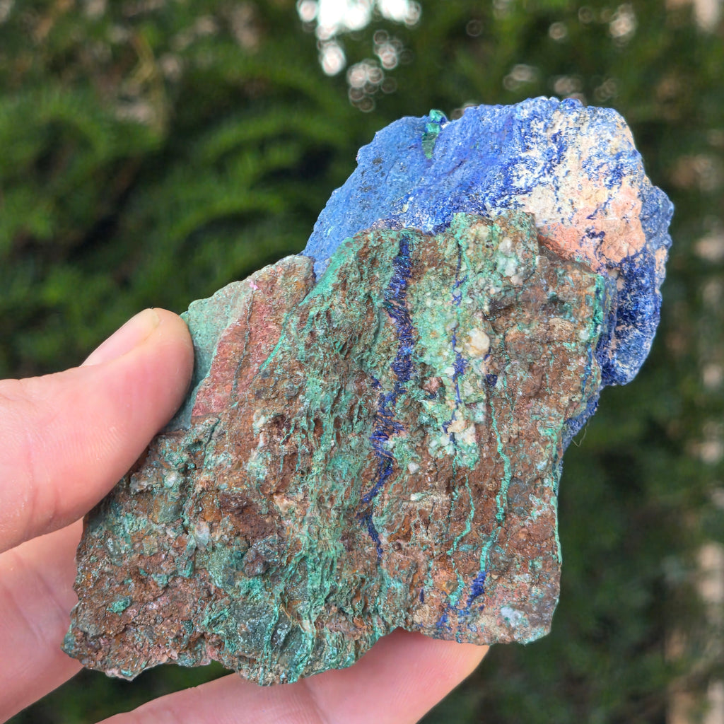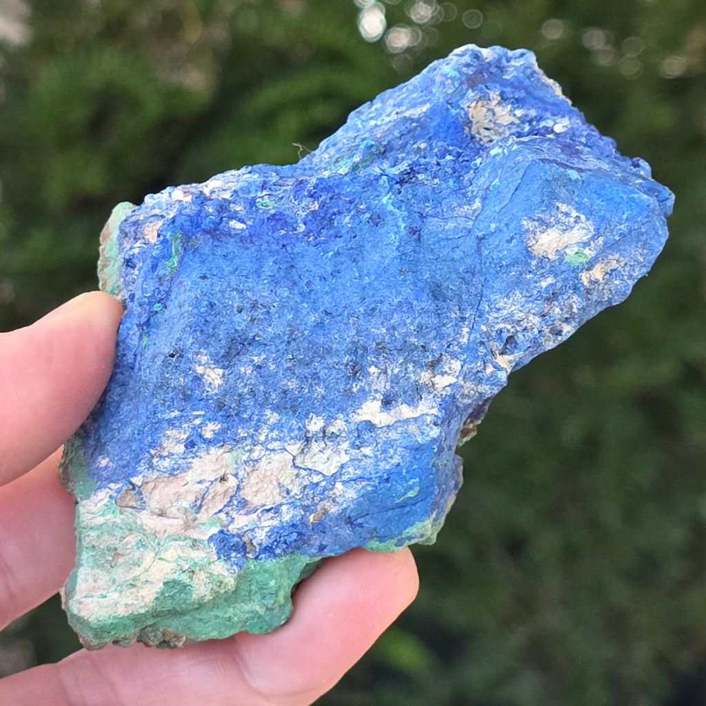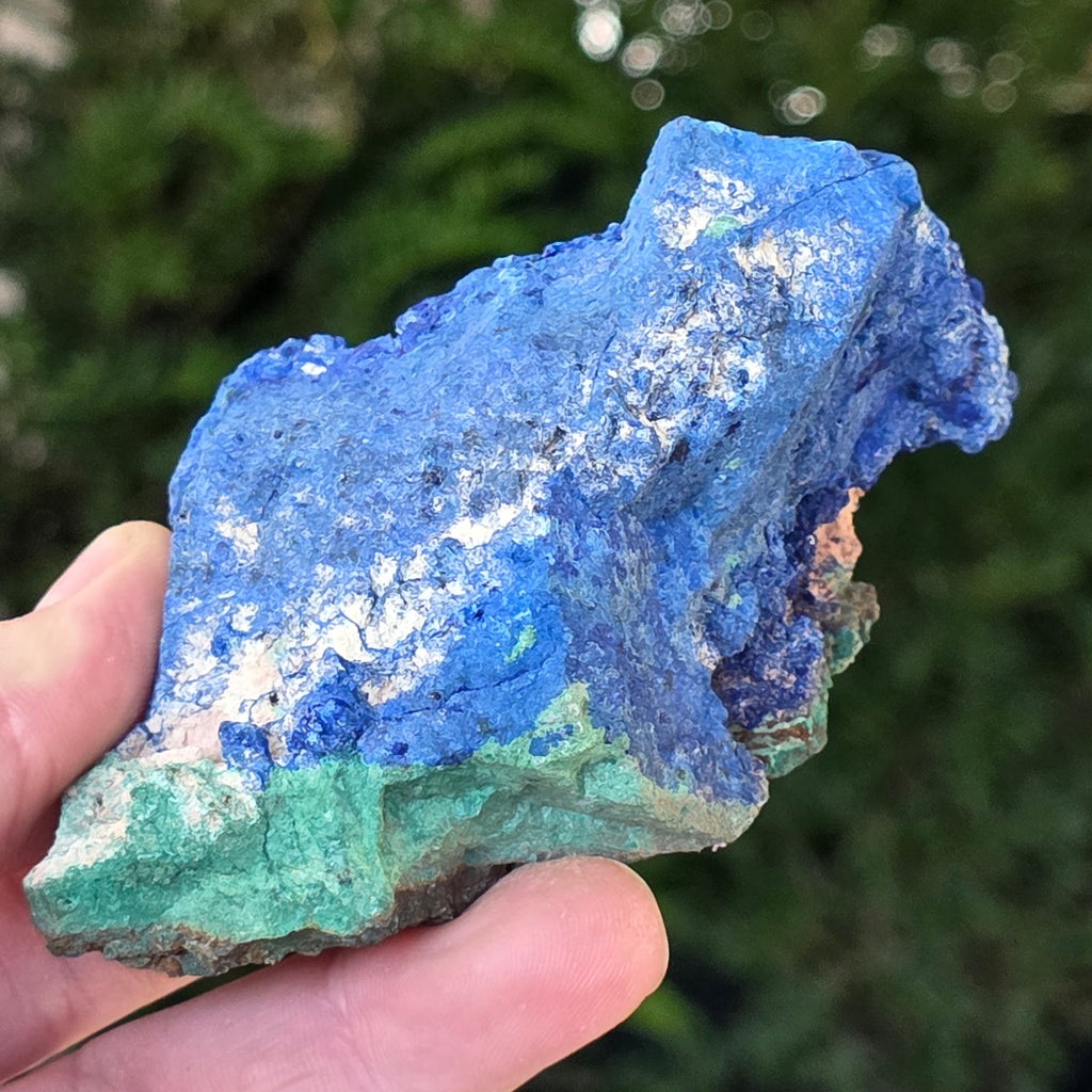Azurit wird hauptsächlich in den Oxidationszonen von Kupferlagerstätten gebildet. Der Entstehungsprozess beinhaltet die Wechselwirkung von karbonatreichem Grundwasser mit Kupfererzen, was zur Kristallisation von Azurit in Gesteinsbrüchen und Hohlräumen führt. Oft wird Azurit mit Malachit in Verbindung gebracht, einem weiteren Kupfermineral, das eine tiefgrüne Farbe hat. Die beiden Mineralien bilden sich unter ähnlichen Bedingungen und kommen manchmal zusammen in Form von Azurit-Malachit-Steinen vor.