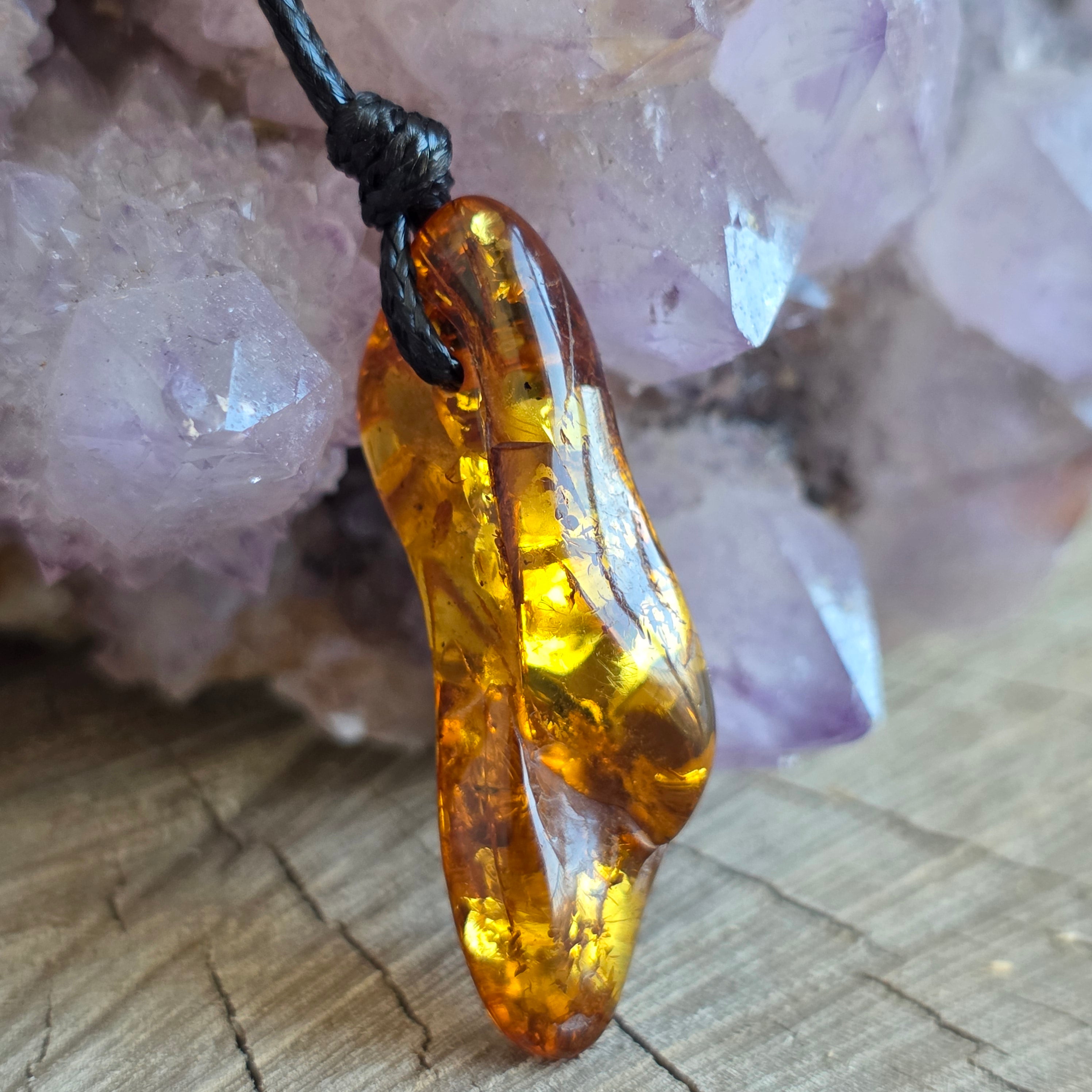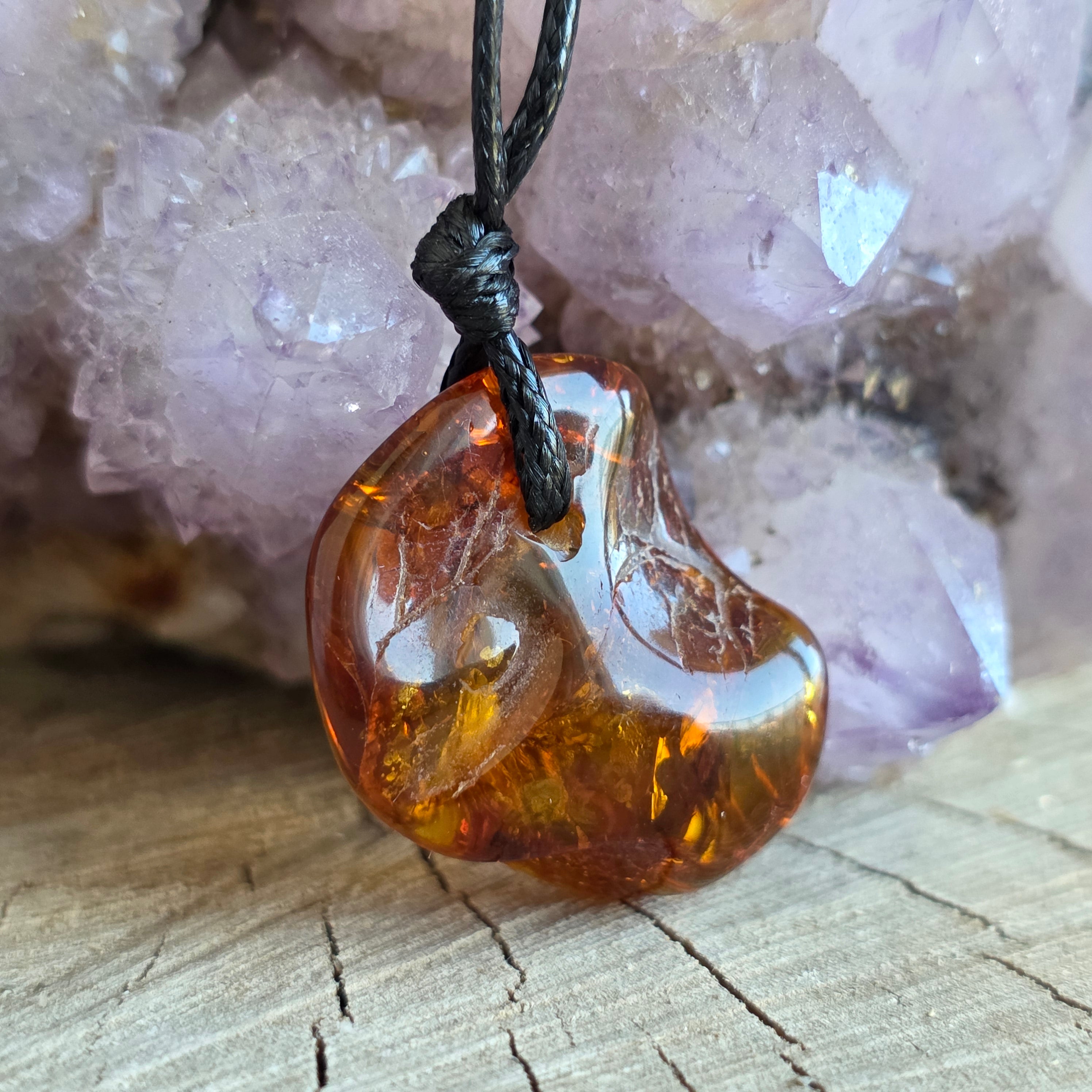 Tragen Sie diesen natürlichen Bernstein-Anhänger wie einen Sonnenstrahl in einem Schmuckstück — eine lebendige Erinnerung an das Licht, das niemals erlischt, egal wie die Zeit vergeht.