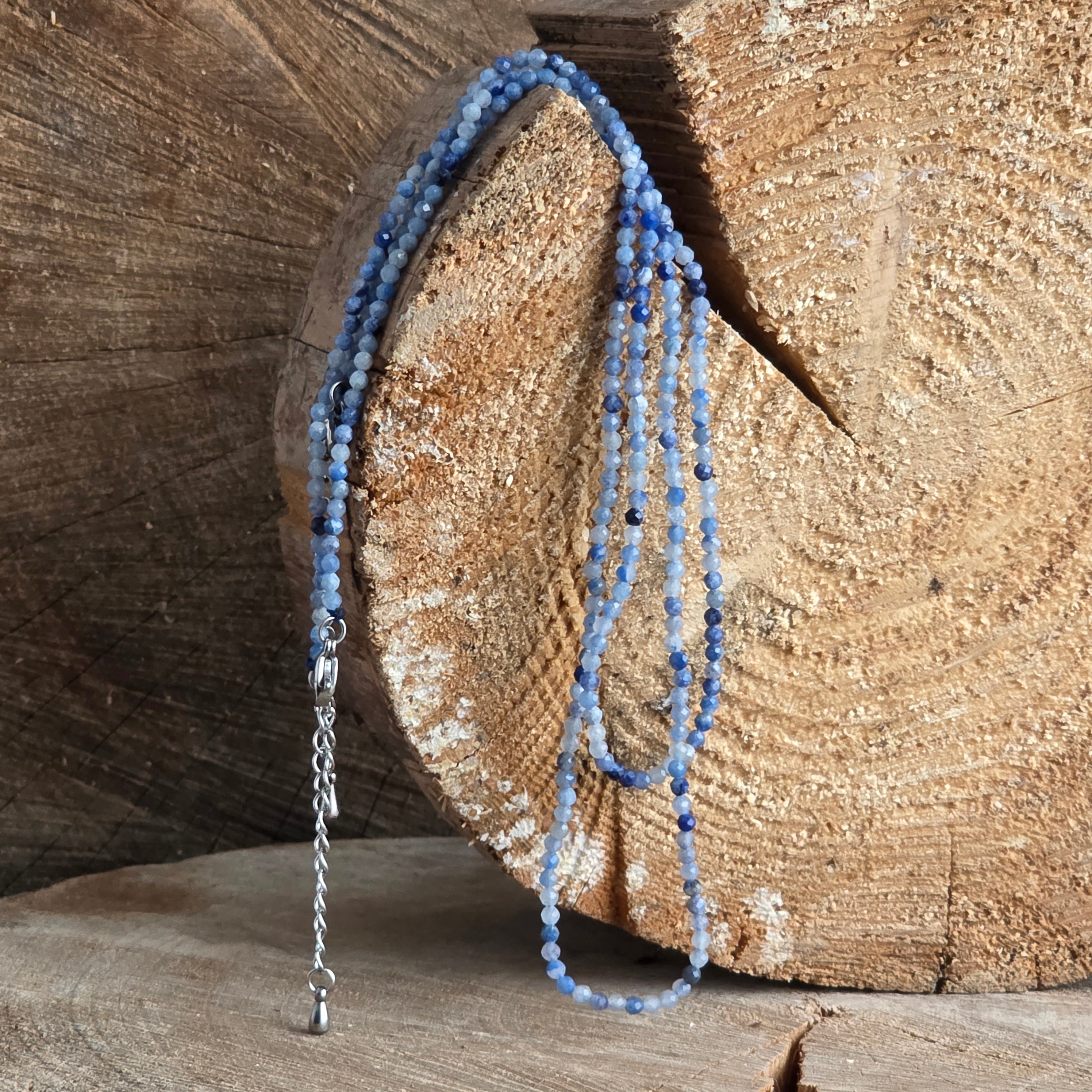 Blaue Aventurin Halskette Kugeln 2-3 mm, Größe: 38 + 5 cm (Verlängerungskette)