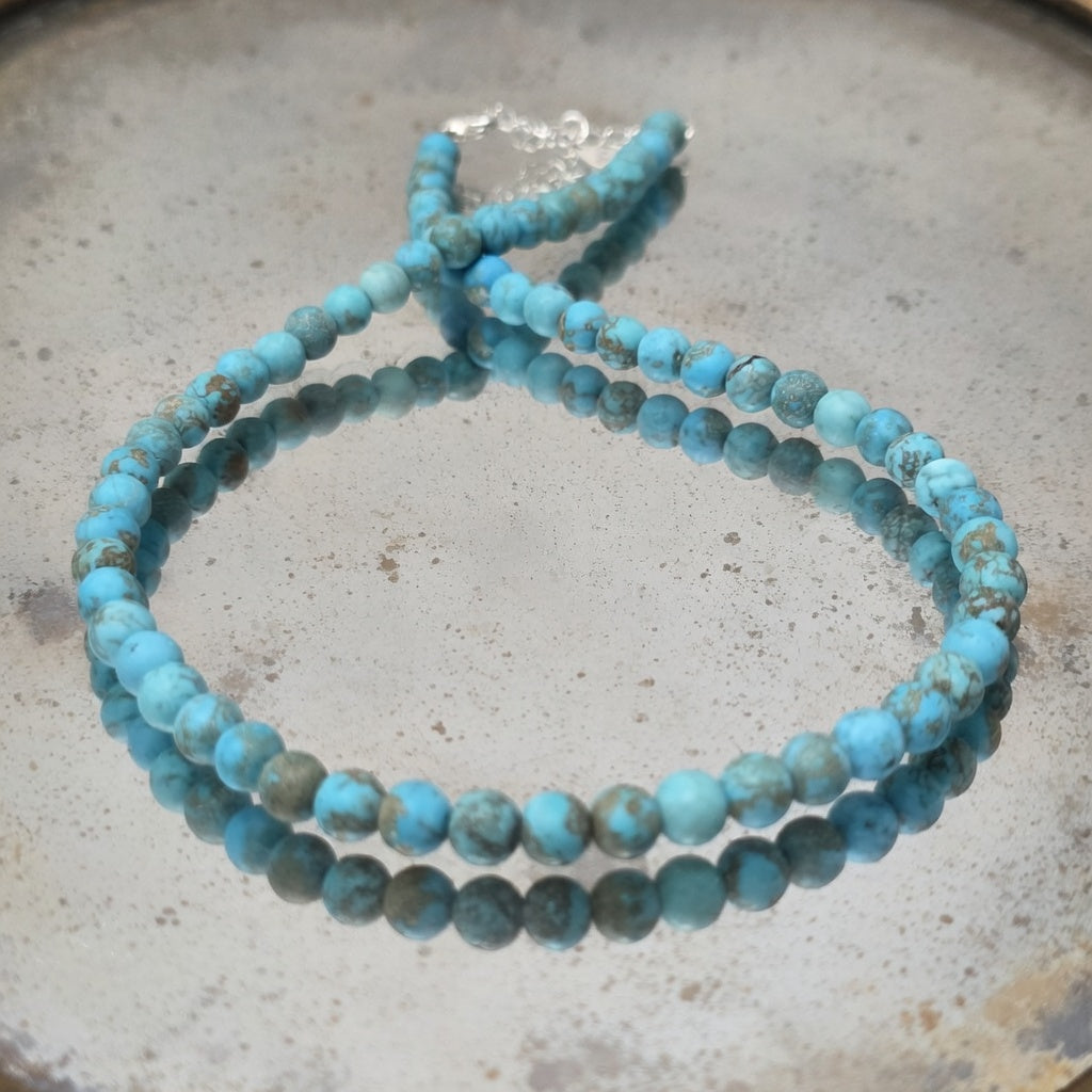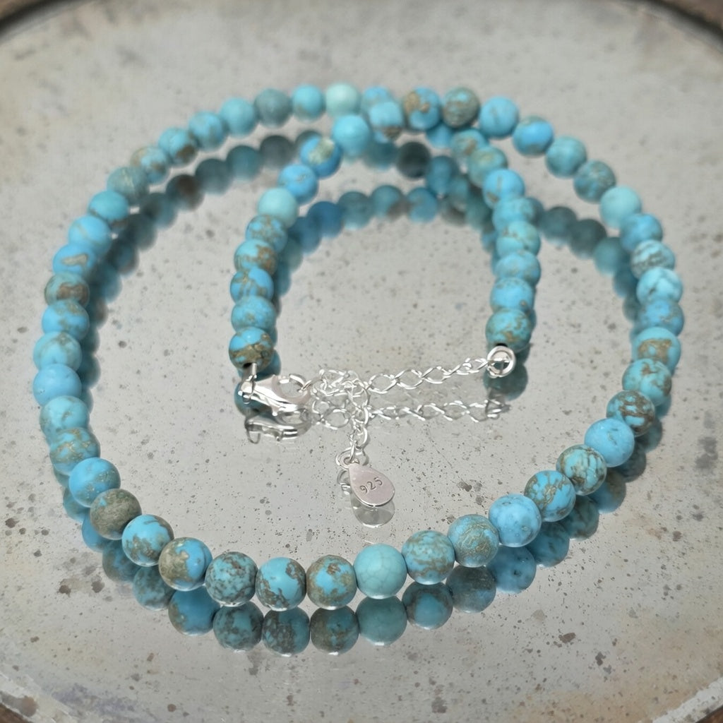 Diese Halskette aus mattem blauen Howlit mit 6 mm ist ein Schmuckstück der Gelassenheit und des Gleichgewichts – ein Stück, das jede Stilrichtung harmonisch durch Einfachheit und Raffinesse ergänzt. 💙