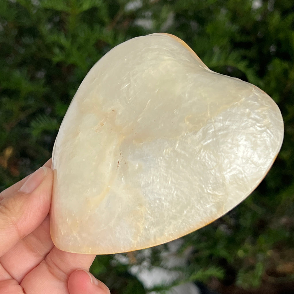 Bolul din scoică abalone este o piesă decorativă naturală, care îmbină căldura pământului cu strălucirea mării. Reflexele sidefate amintesc de adâncurile oceanului și aduc o notă elegantă oricărui spațiu. Ideal pentru colecționari, pentru decorarea altarului personal sau ca suport pentru cristale și bijuterii.