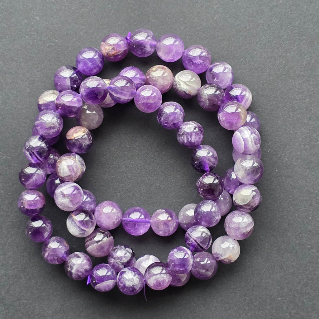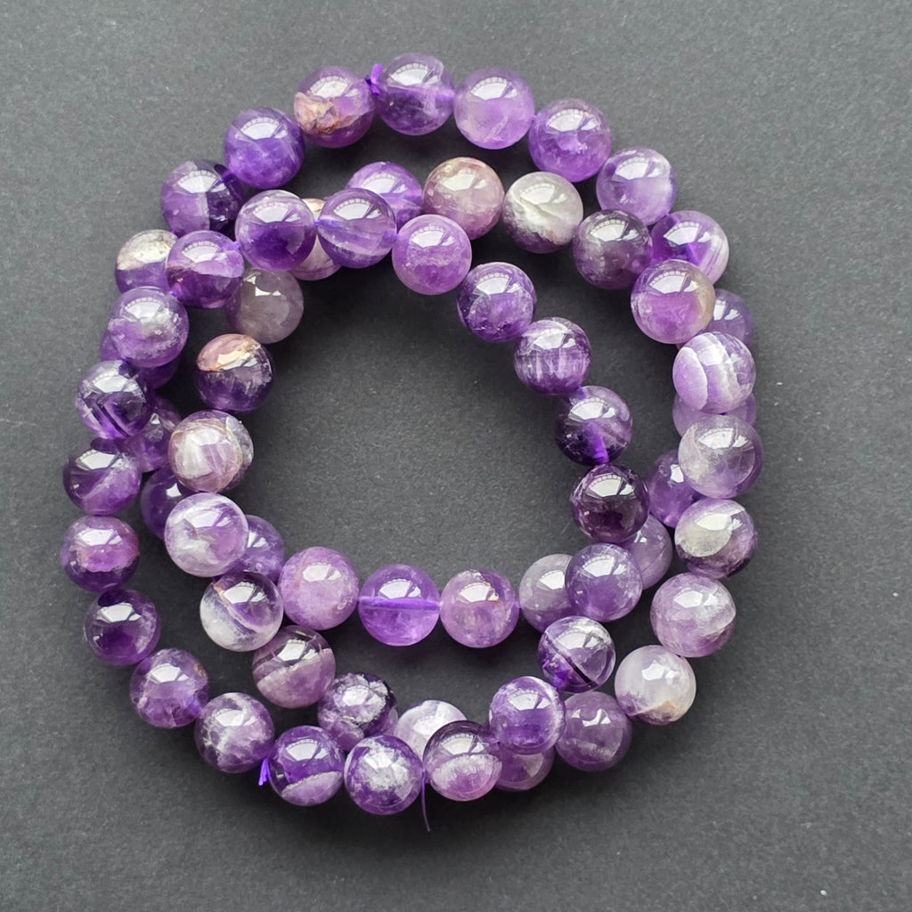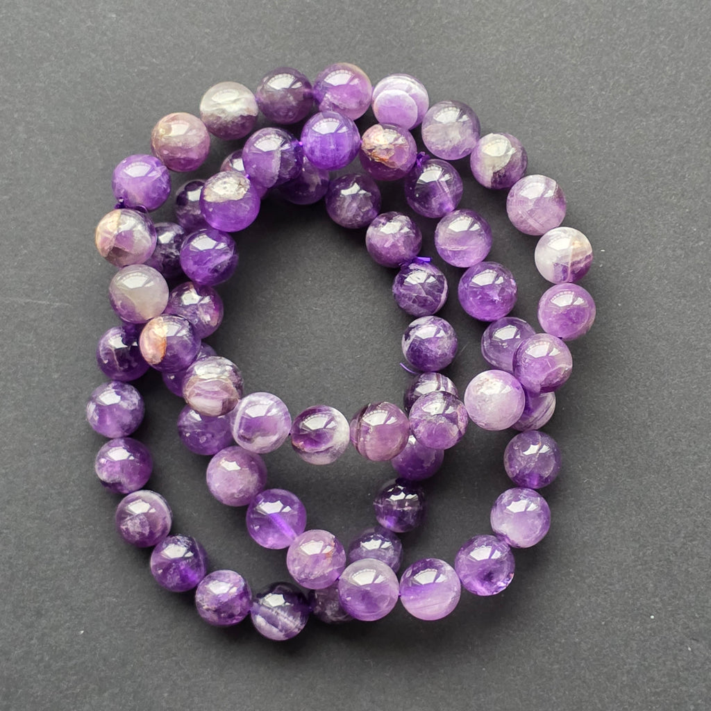 Brățara din ametist aduce la încheietură rafinamentul clasic al uneia dintre cele mai iubite pietre semiprețioase. Mărgelele mici și perfect rotunjite creează un șir delicat de nuanțe mov, într-un gradient natural care amintește de cerul serii sau de intensitatea unei flori de lavandă atinse de lumină.