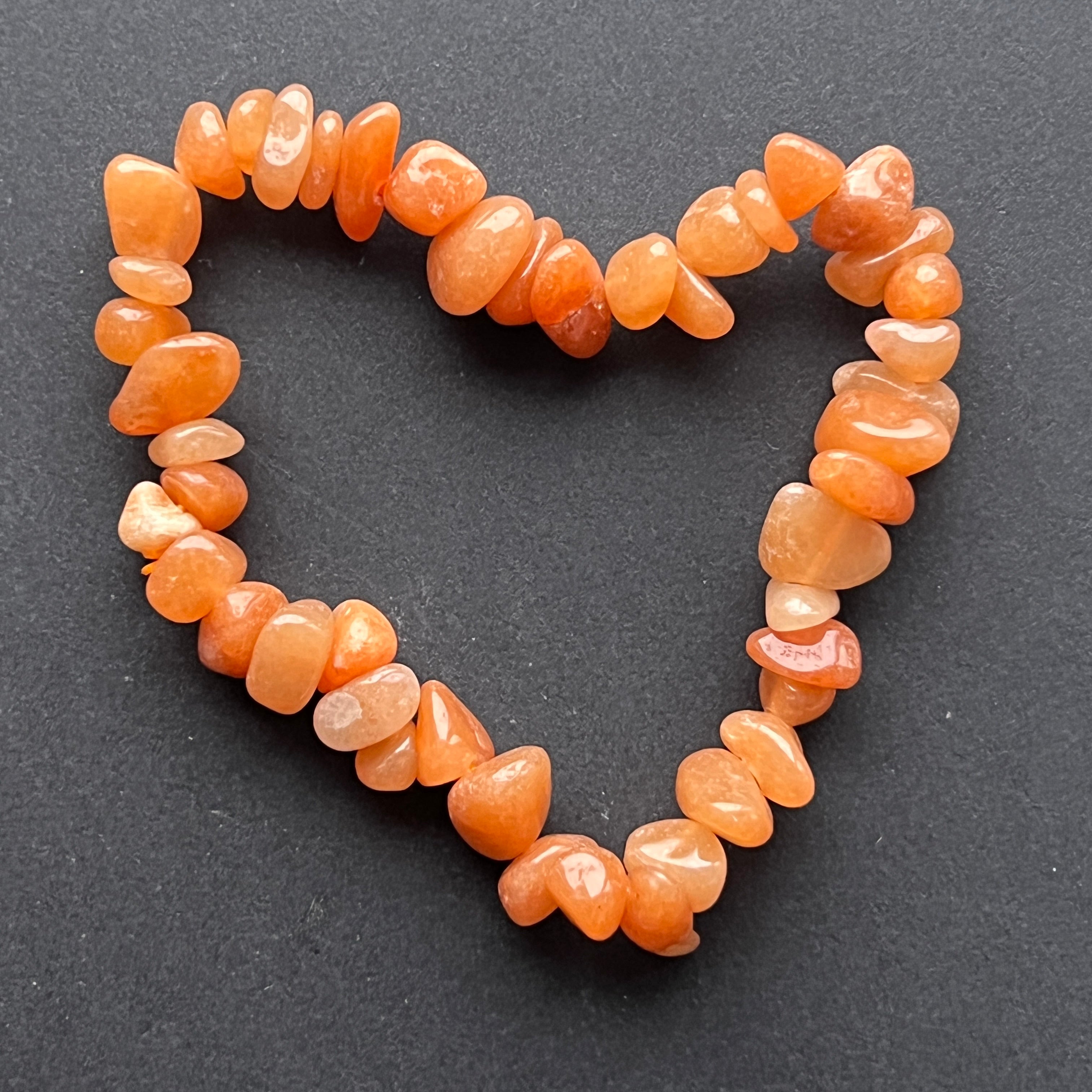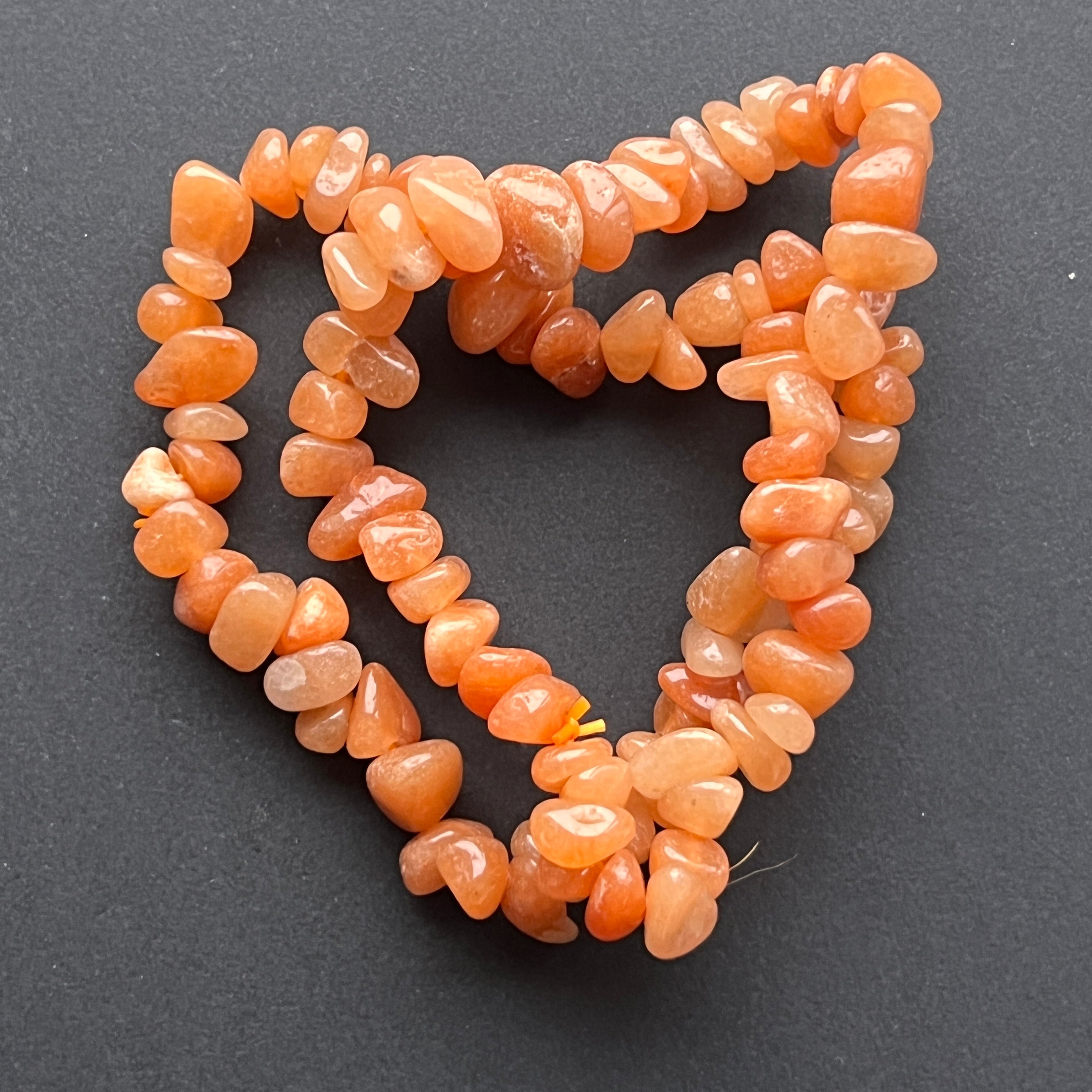 • Piatra: aventurin portocaliu (aventurine peach) – chipsuri neregulate, șlefuite manual