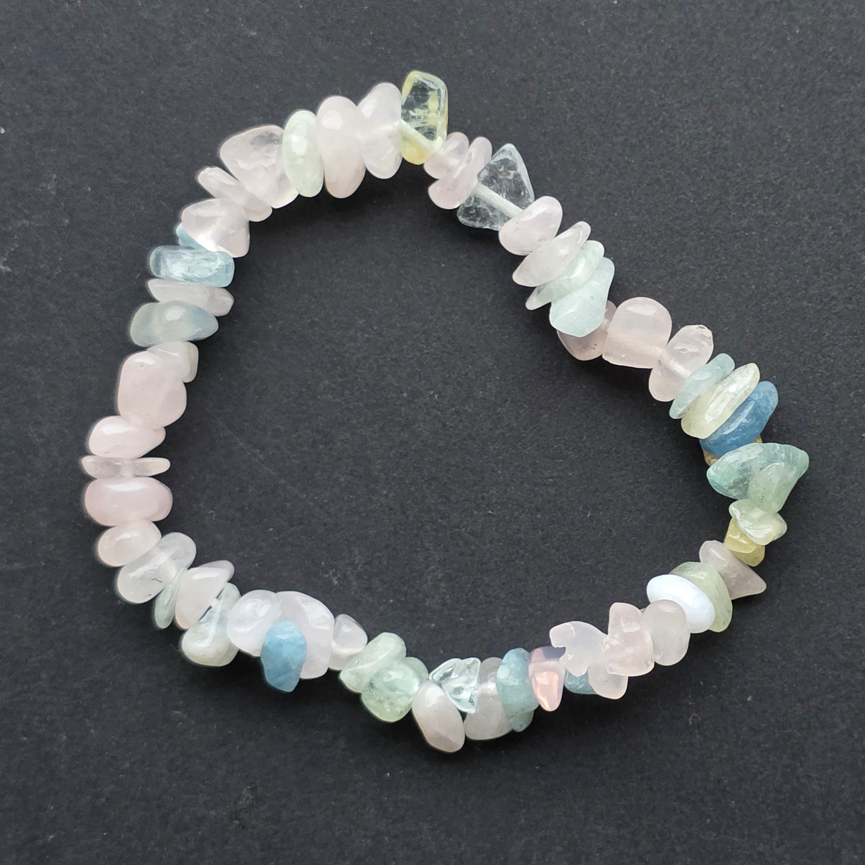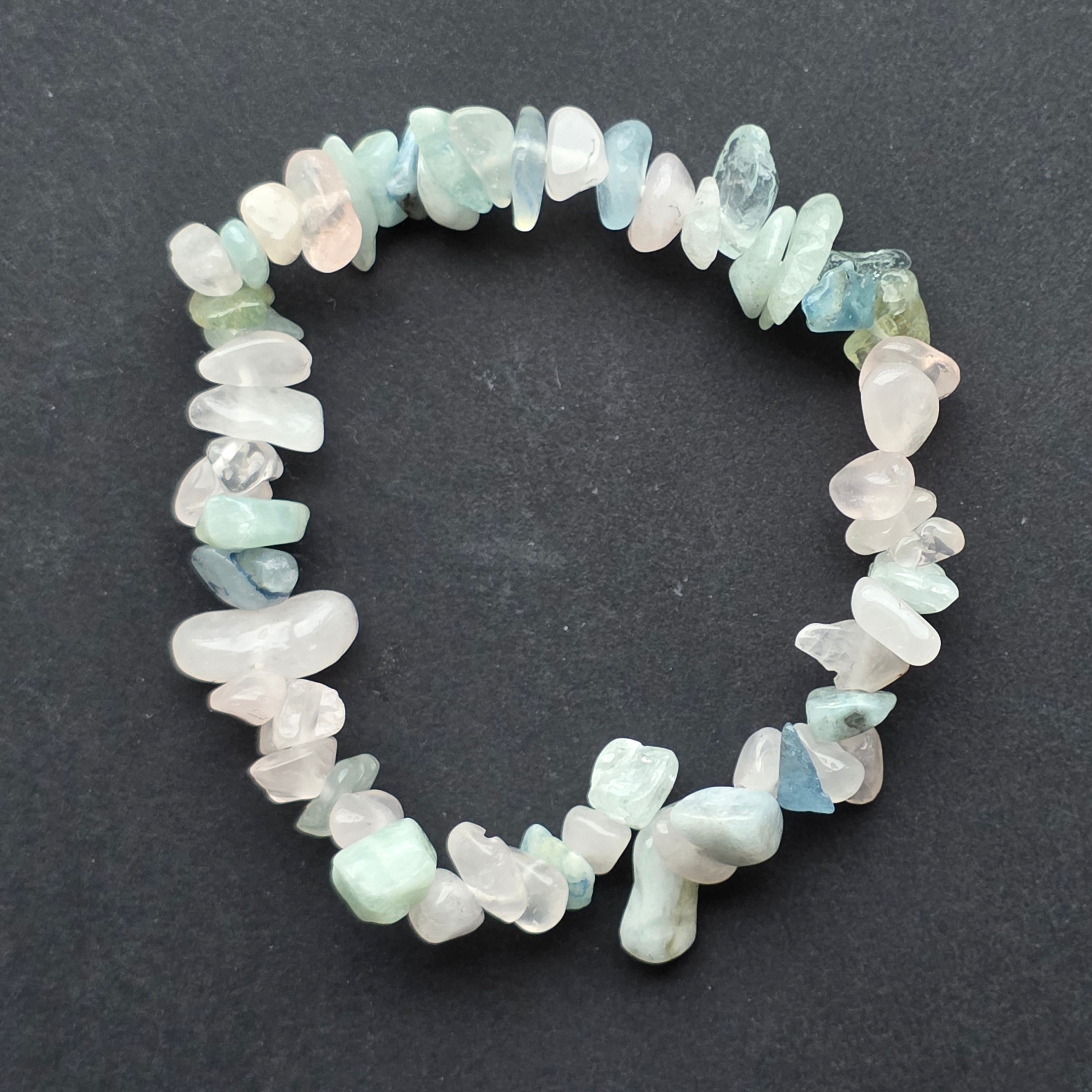 • Piatra: beril natural (chipsuri neregulate, șlefuite manual) – un mineral prețios care include varietăți precum acvamarin, morganit, heliodor