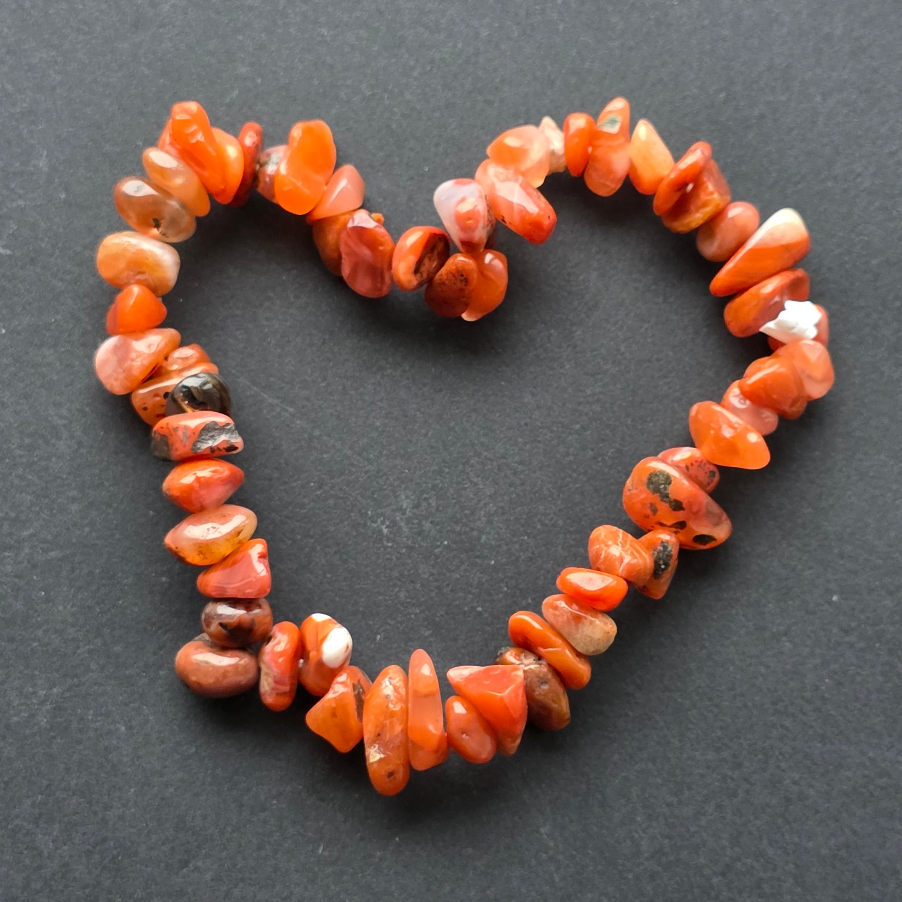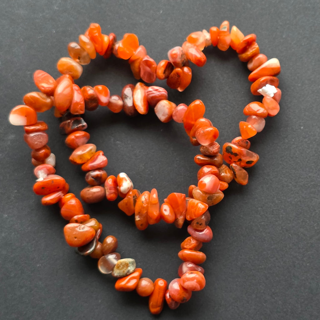 • Piatra: carneol (carnelian) – chipsuri neregulate, șlefuite manual