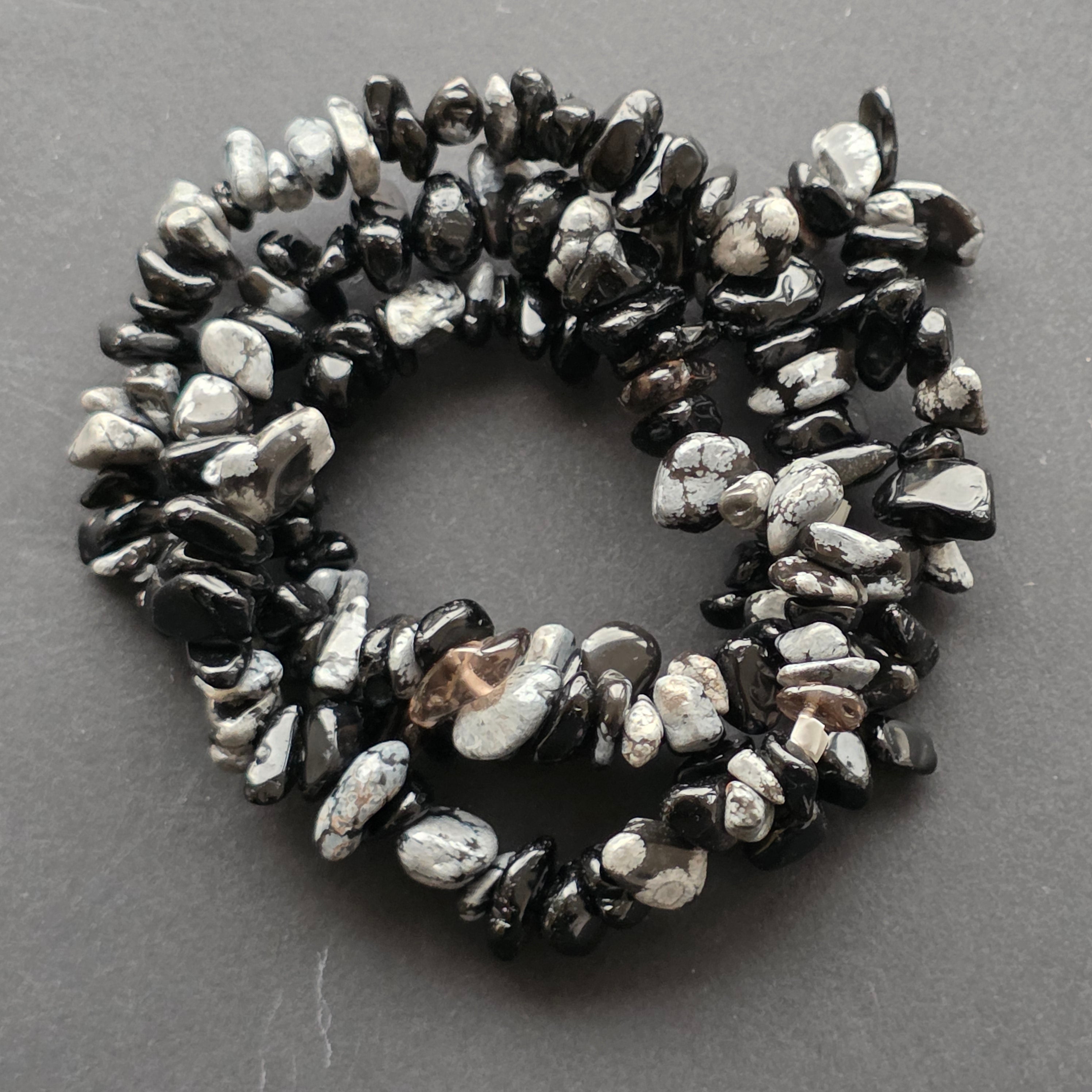 • Piatra: obsidian zăpada (snowflake obsidian) – chipsuri neregulate