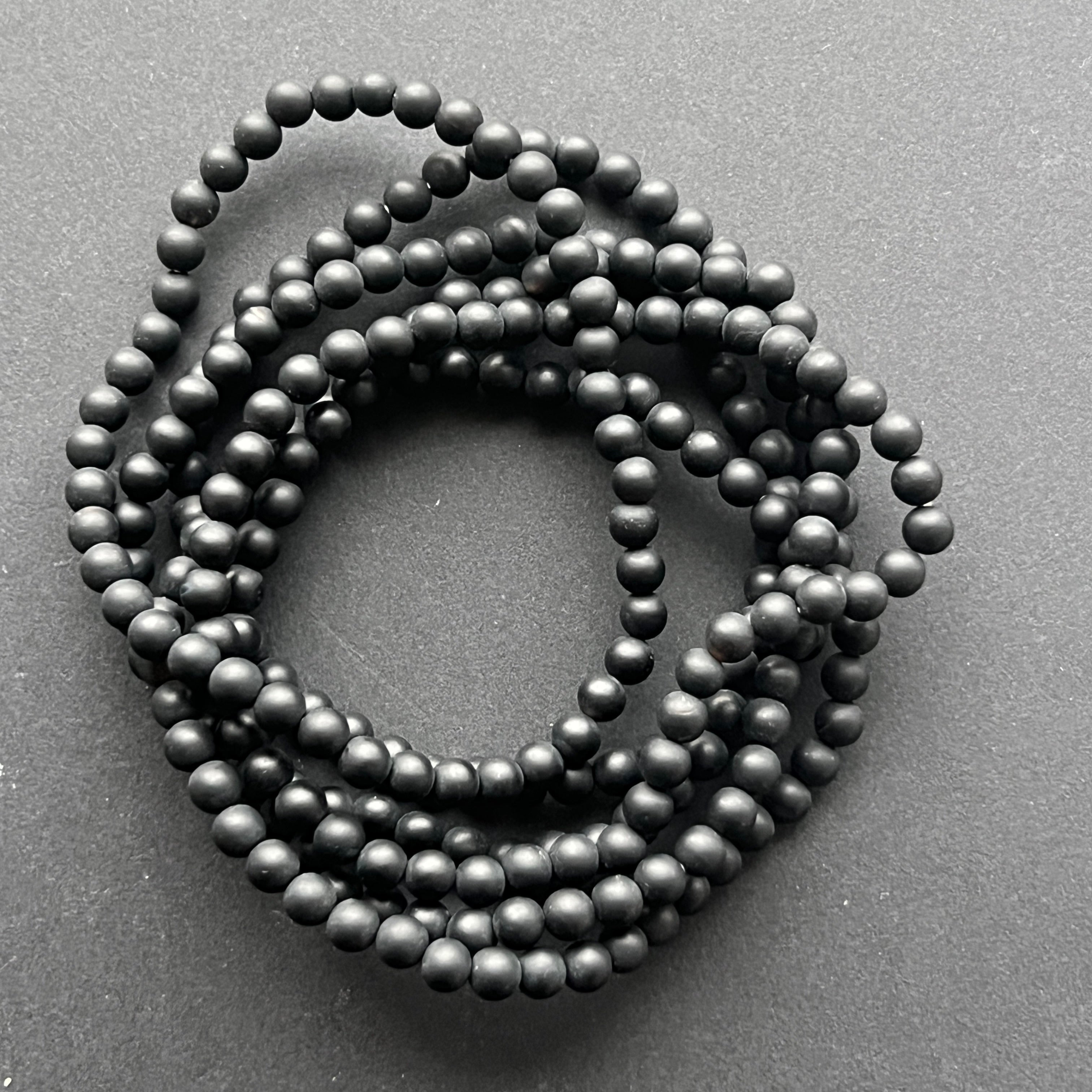 • Piatra: onix negru natural – mărgele sferice 4–5 mm, finisaj mat