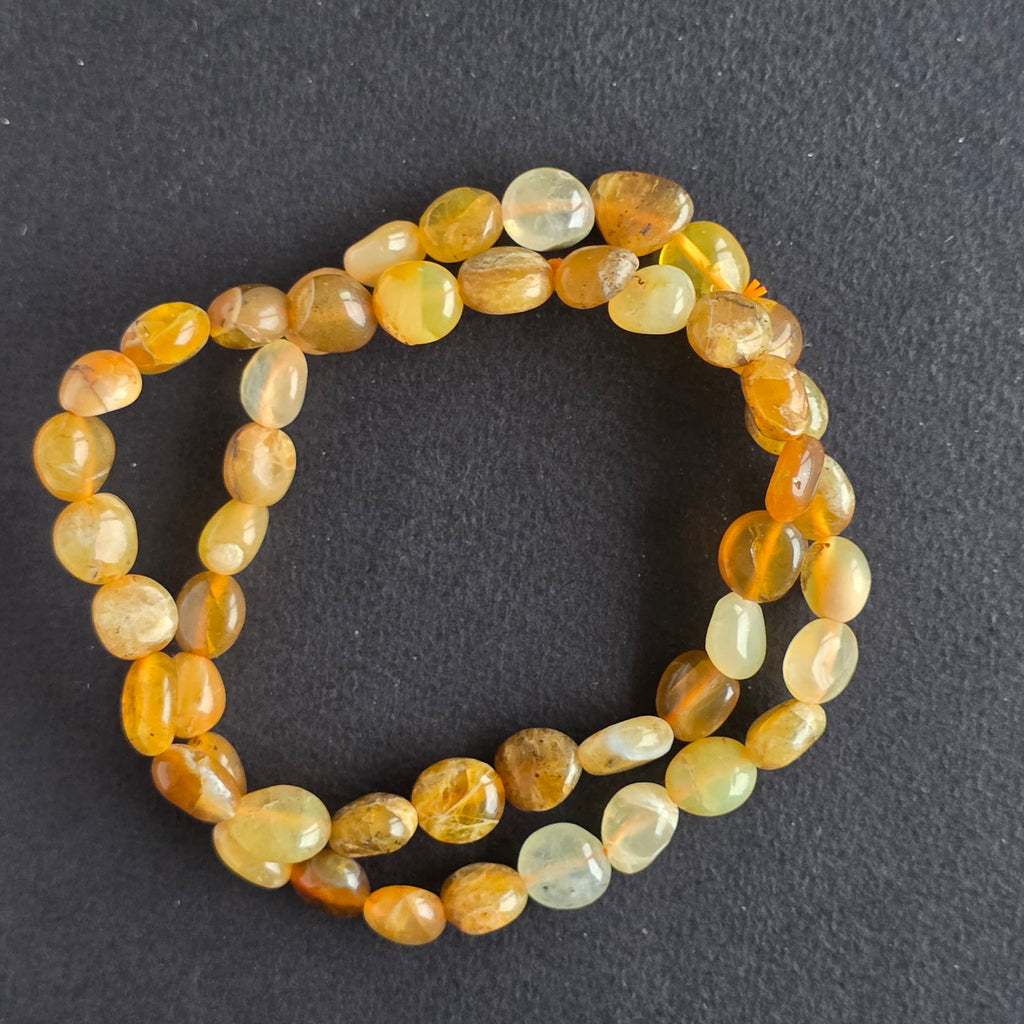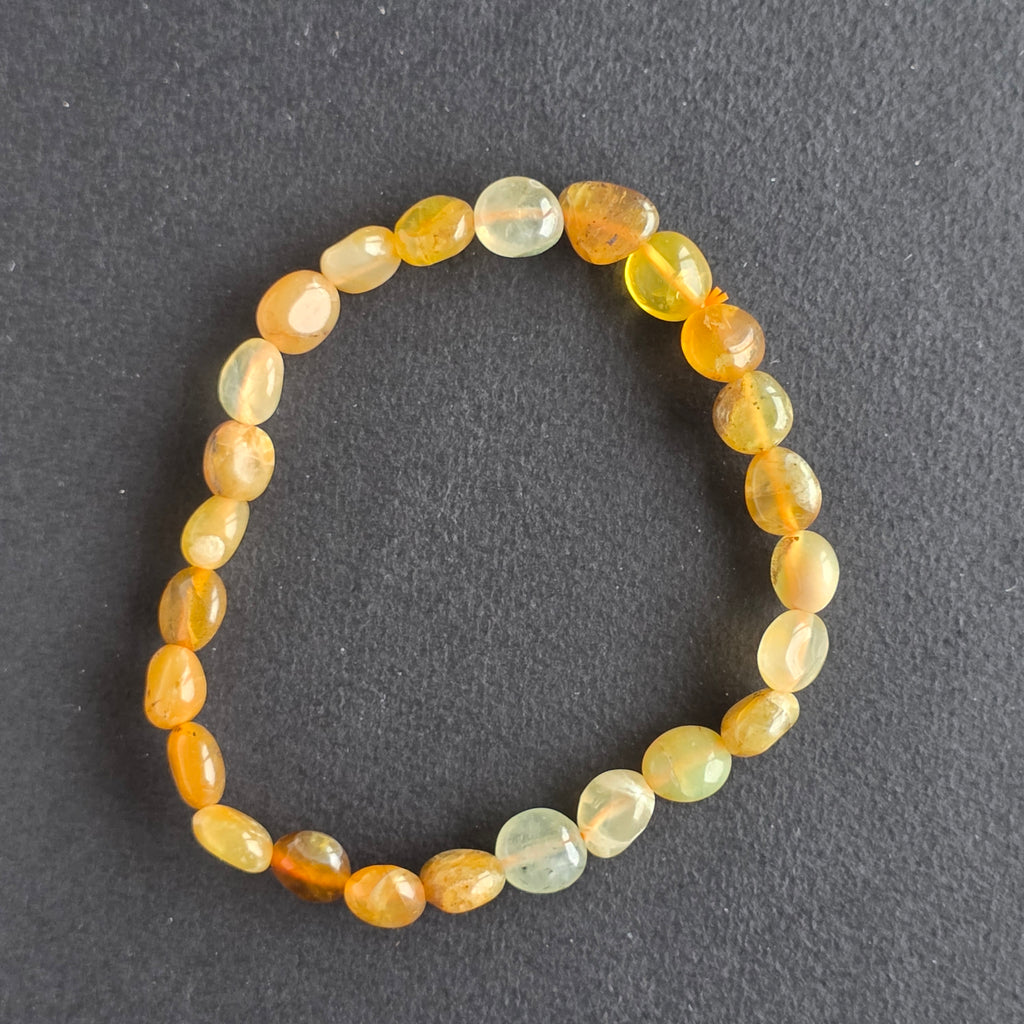 Poartă această brățară din opal galben natural ca pe o rază de soare vie, mereu alături de tine — o amintire constantă că lumina nu se pierde niciodată, ci doar așteaptă să fie reînviată din interior.