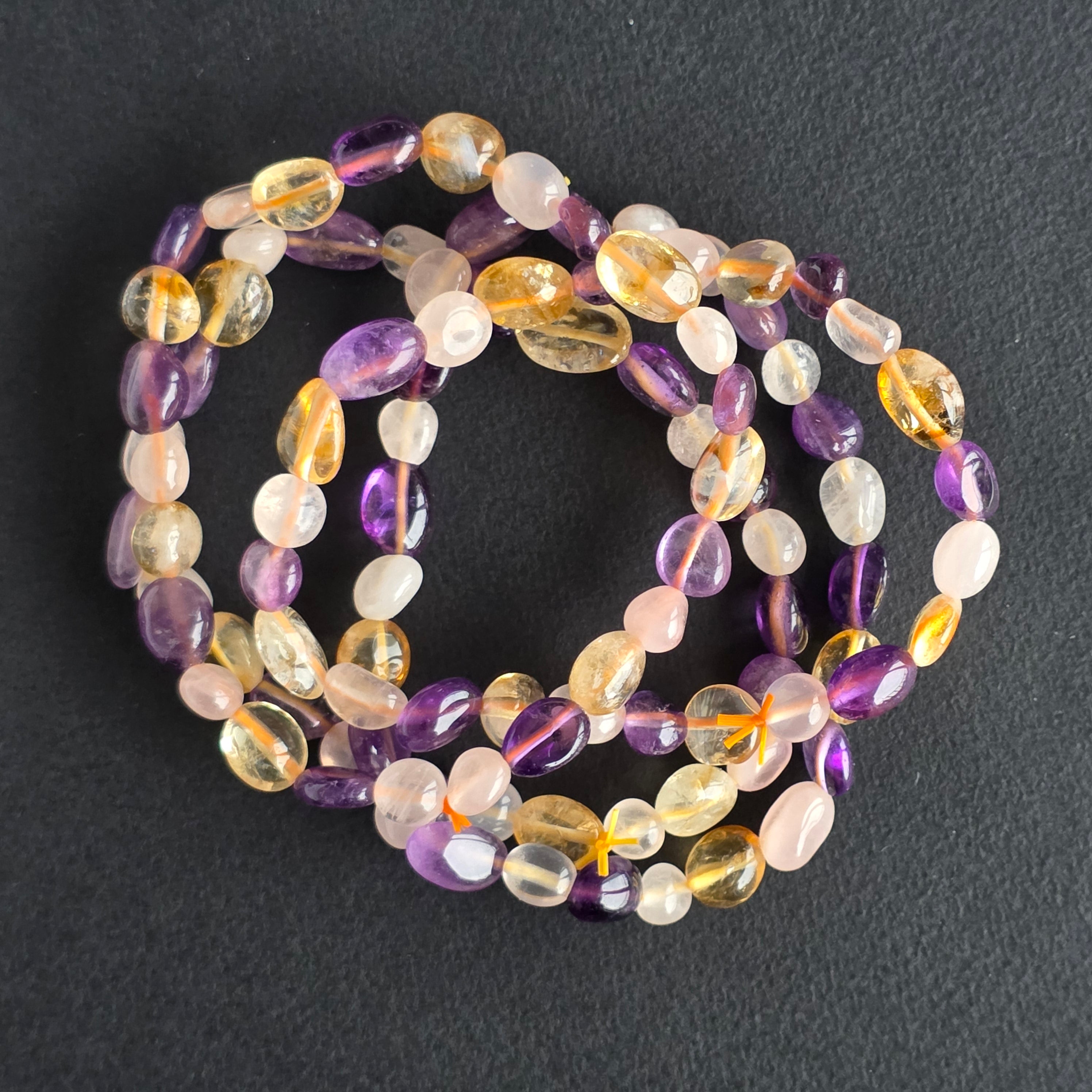 Bratara Triplă Armonie cuart roz, ametist, citrin Tumble