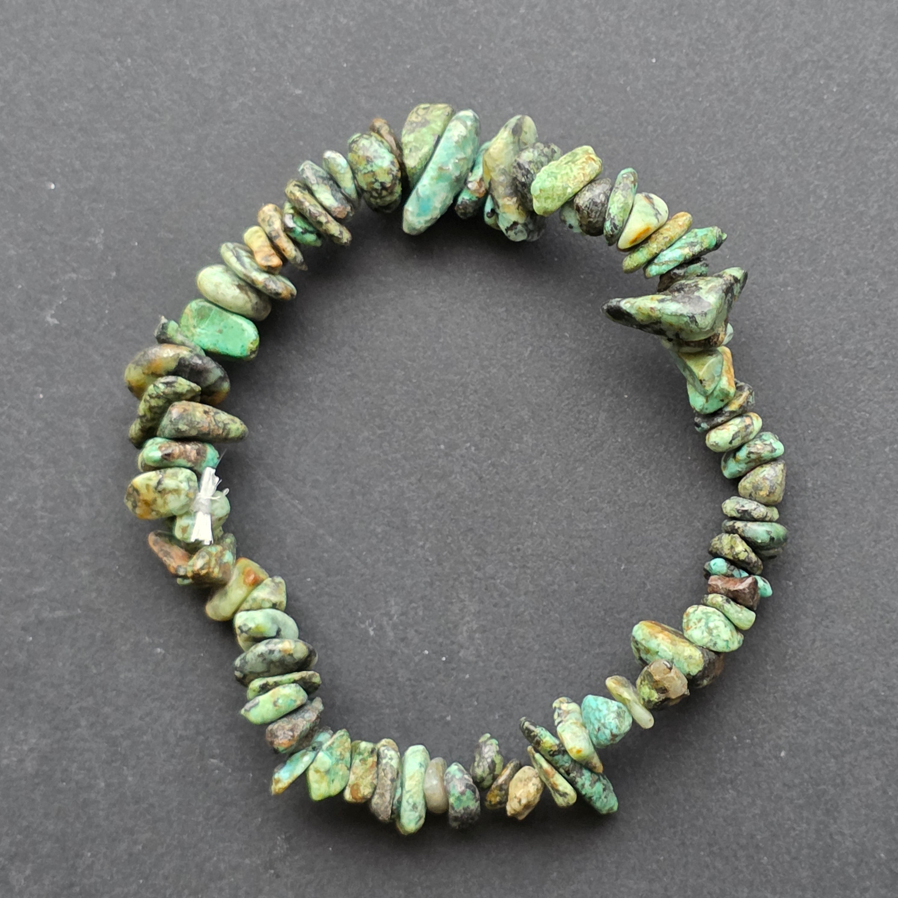 • Piatra: turcoaz african (African Turquoise) – chipsuri neregulate, șlefuite manual