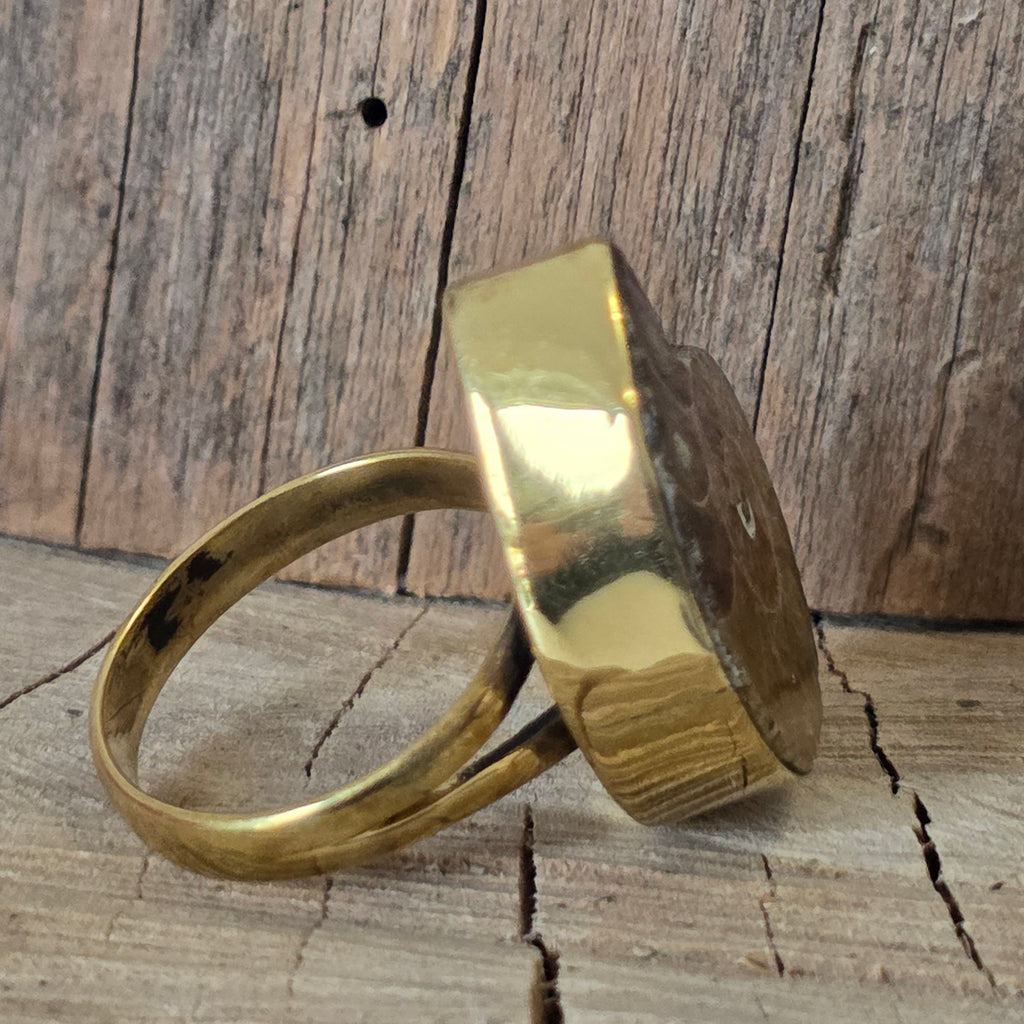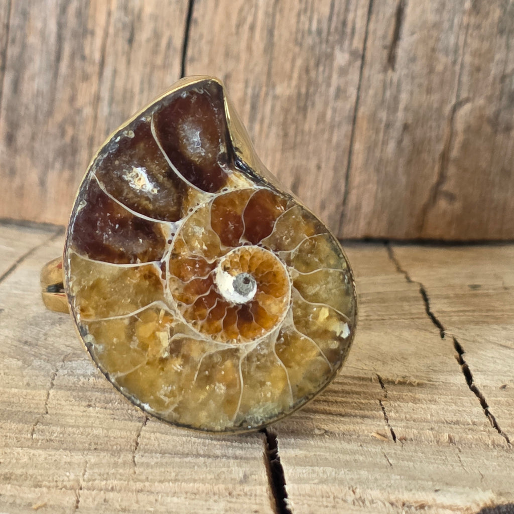 Wählen Sie dies Bronzering mit Ammonit Und tragen Sie die in Kunst verwandelte Schönheit der Zeit mit sich. Ein einzigartiges Juwel, geboren aus dem Meer und der Nachbildung der Natur, das jedem Tag Raffinesse und Ausgeglichenheit verleiht. 🌊✨