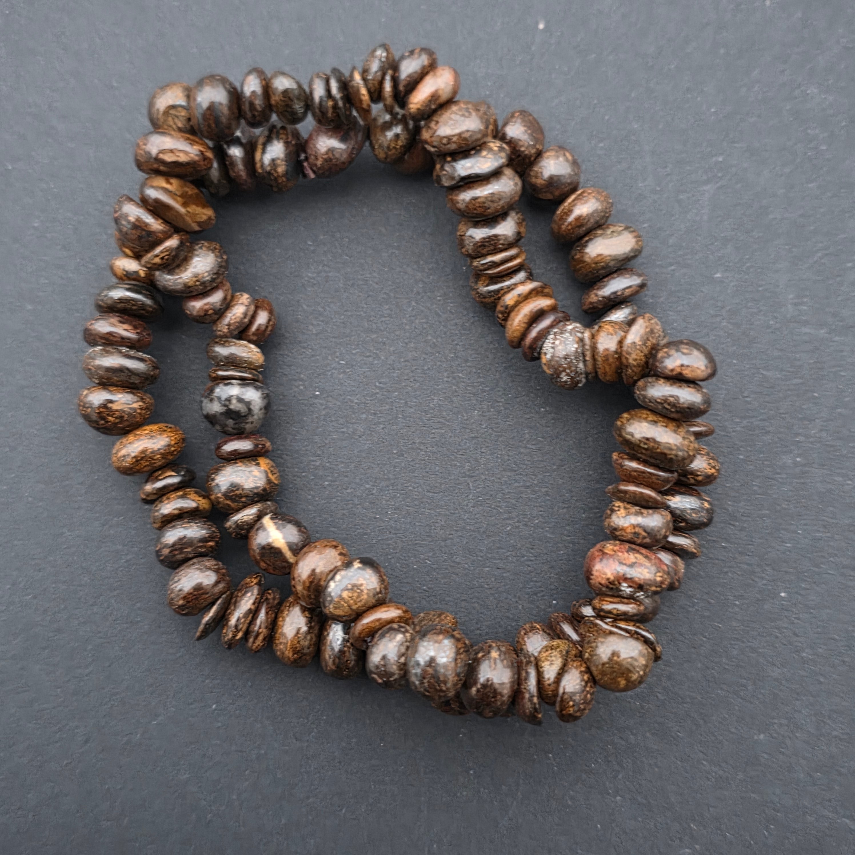 Farbe: dunkelbraun mit gold-bronzefarbenen Metallschimmern, jedes Armband ist einzigartig