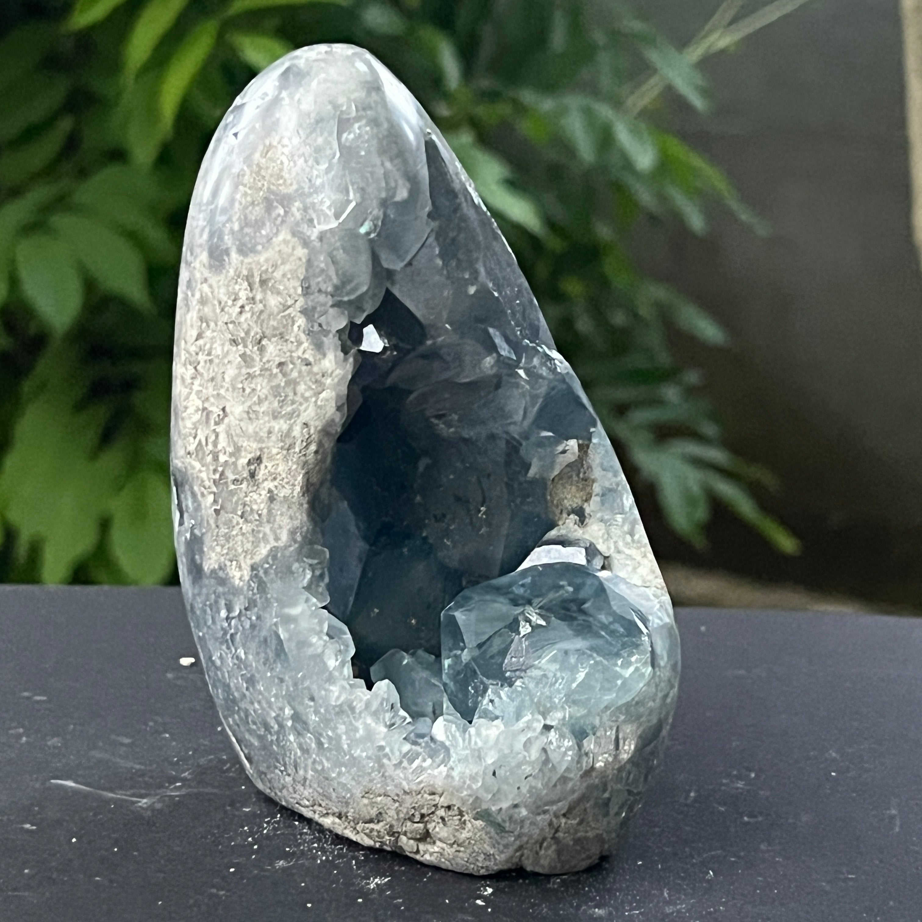 Der andere ist ein halbiprienter blauer oder farbloser Stein, der aus Strontiumsulfat besteht. Es hat beruhigende und entspannende Eigenschaften, die häufig in Meditation und spirituellen Praktiken verwendet werden, um inneren Frieden und geistige Klarheit zu fördern. Der andere ist mit dem Hals -Chakra verbunden und kann helfen, klar zu kommunizieren und Emotionen auszudrücken. Es wird auch angenommen, dass es Kreativität, Intuition und psychische Fähigkeiten verbessert.