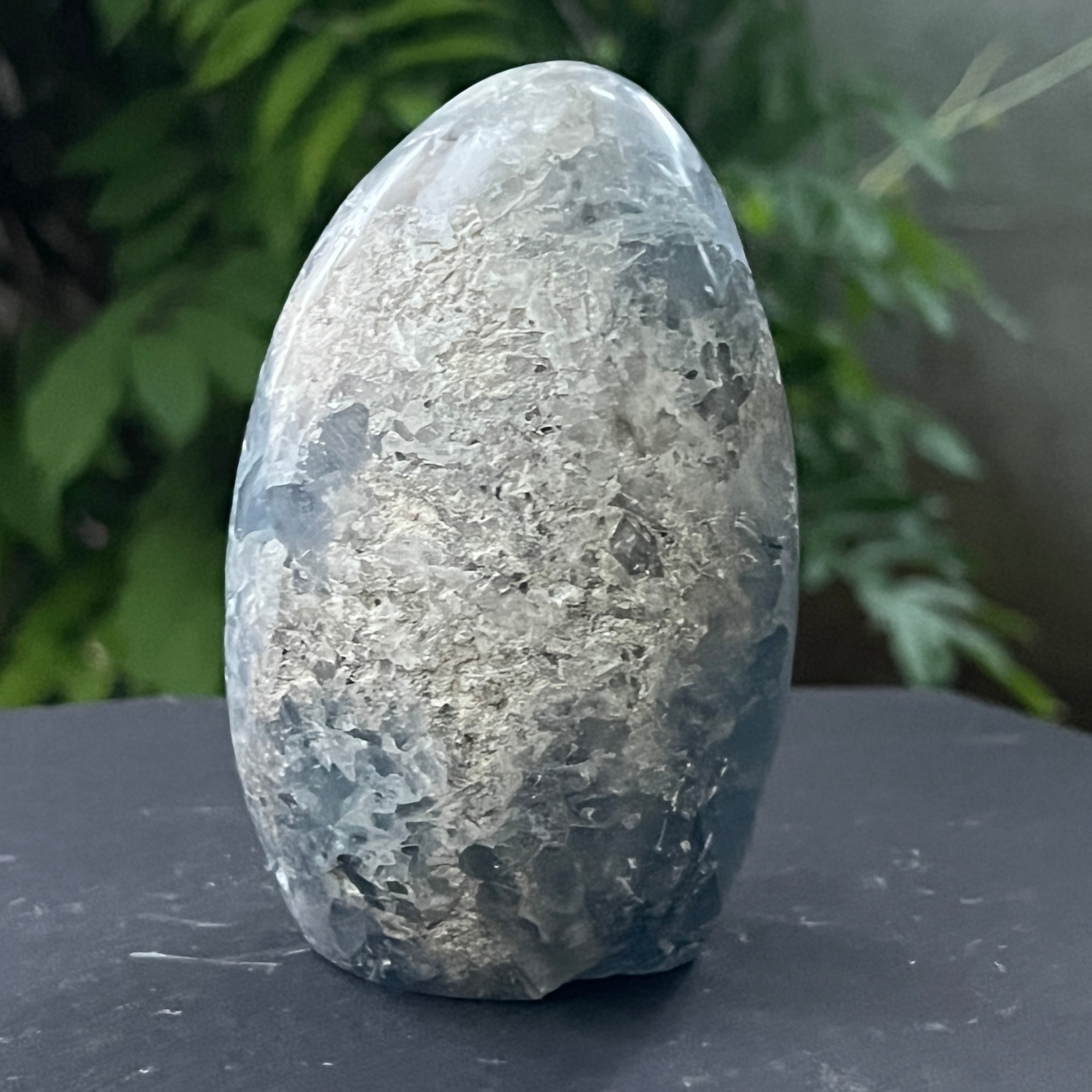 Der andere ist ein halbiprienter blauer oder farbloser Stein, der aus Strontiumsulfat besteht. Es hat beruhigende und entspannende Eigenschaften, die häufig in Meditation und spirituellen Praktiken verwendet werden, um inneren Frieden und geistige Klarheit zu fördern. Der andere ist mit dem Hals -Chakra verbunden und kann helfen, klar zu kommunizieren und Emotionen auszudrücken. Es wird auch angenommen, dass es Kreativität, Intuition und psychische Fähigkeiten verbessert.