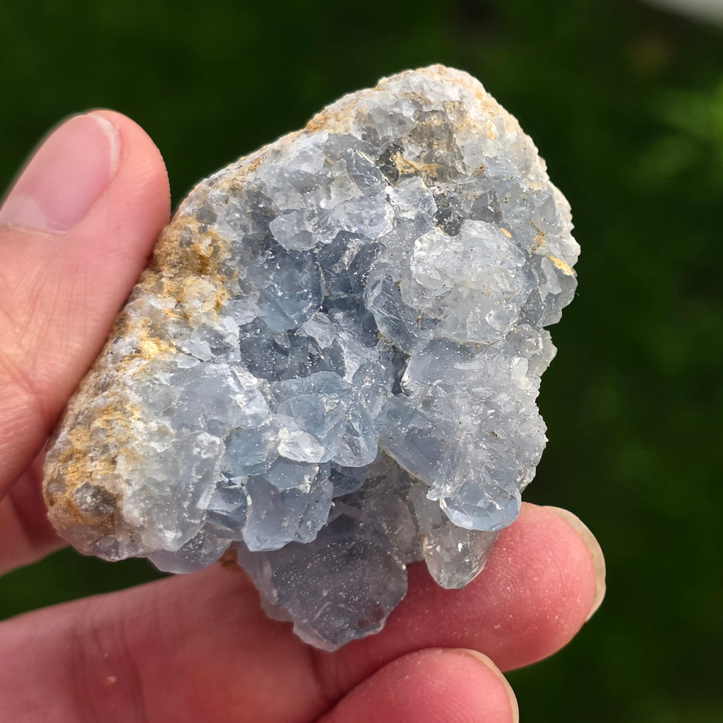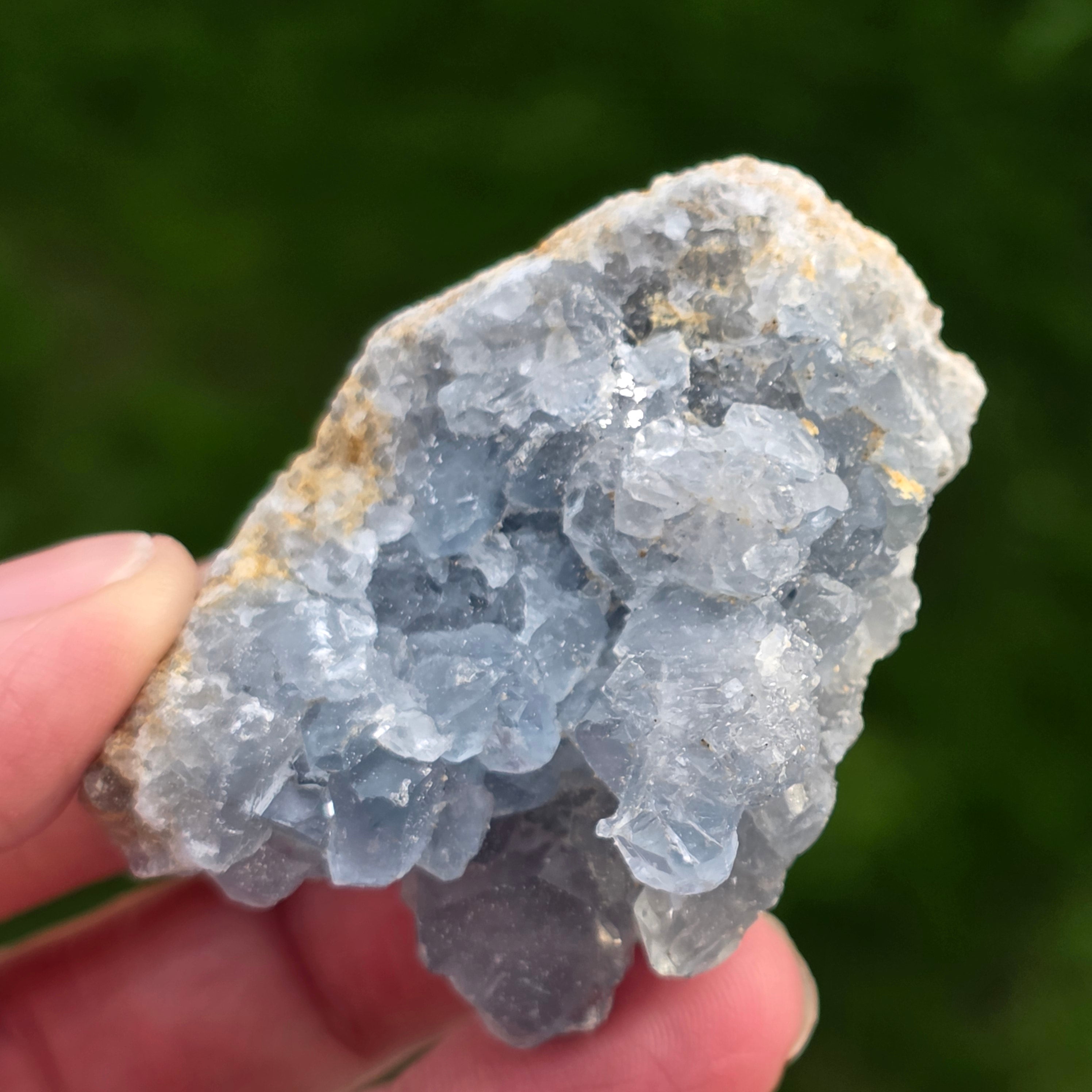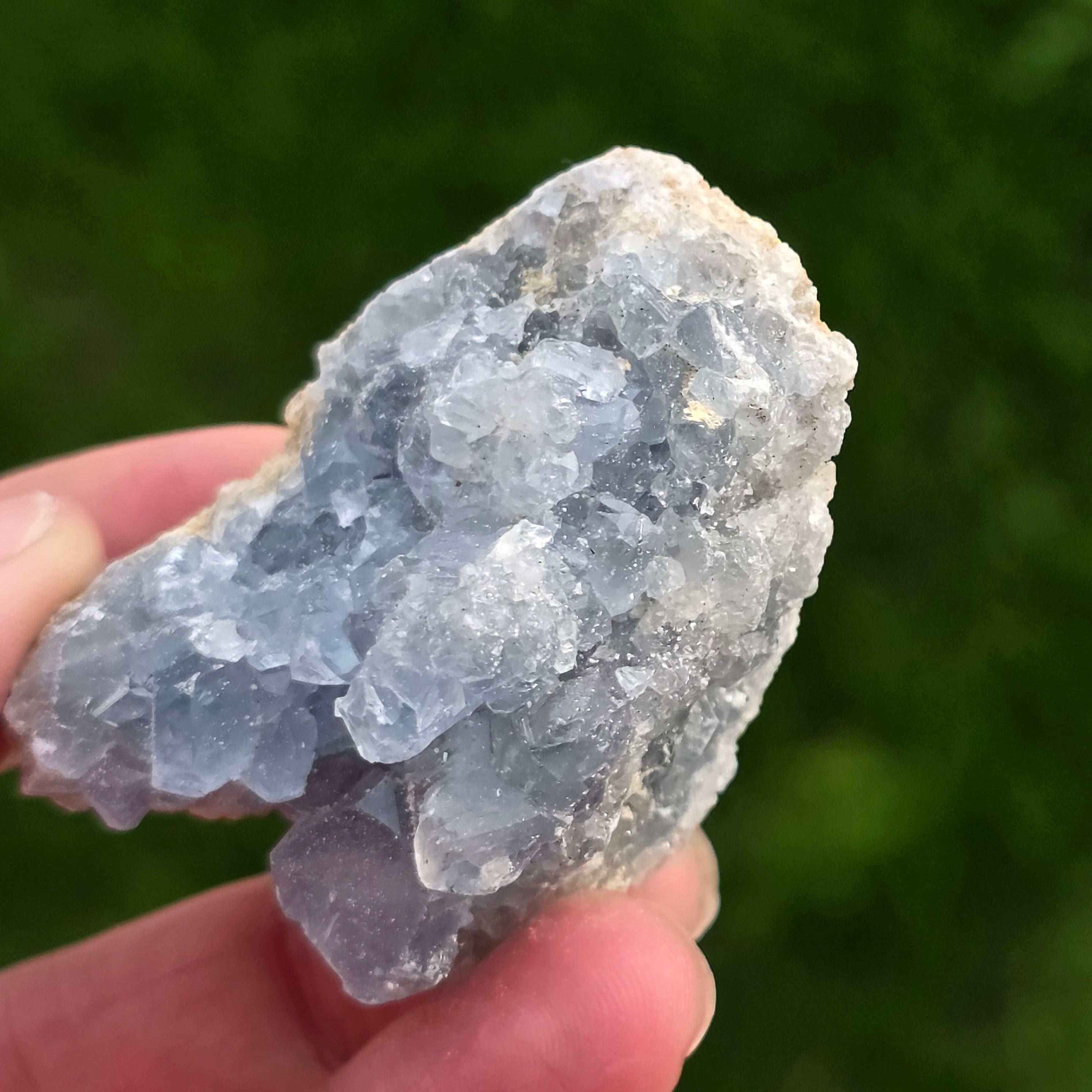 Coelestin ist ein blauer oder farbloser Halbedelstein aus Strontiumsulfat. Es hat beruhigende und entspannende Eigenschaften und wird oft in Meditationen und spirituellen Praktiken verwendet, um inneren Frieden und geistige Klarheit zu fördern. Coelestin wird mit dem Hals-Chakra in Verbindung gebracht und kann bei der klaren Kommunikation und dem Ausdruck von Emotionen helfen. Es wird auch angenommen, dass es Kreativität, Intuition und psychische Fähigkeiten fördert.