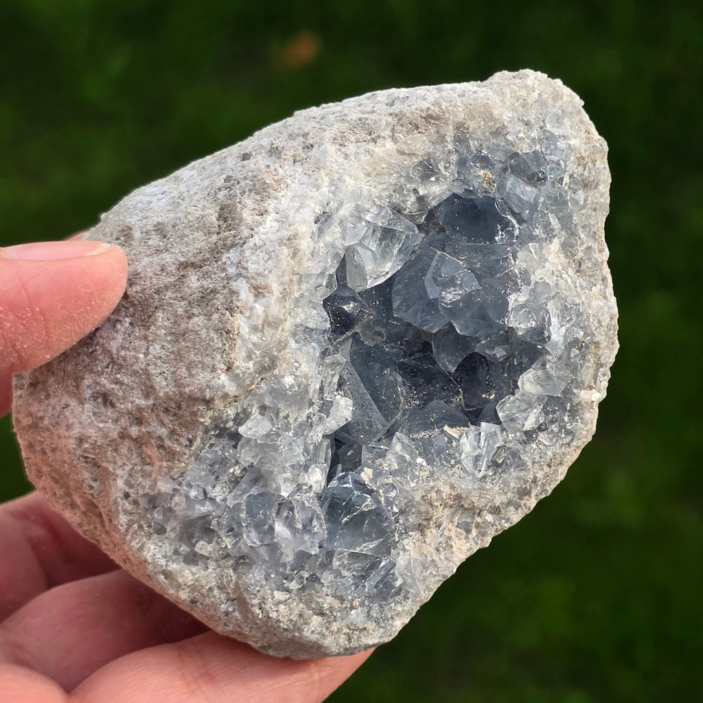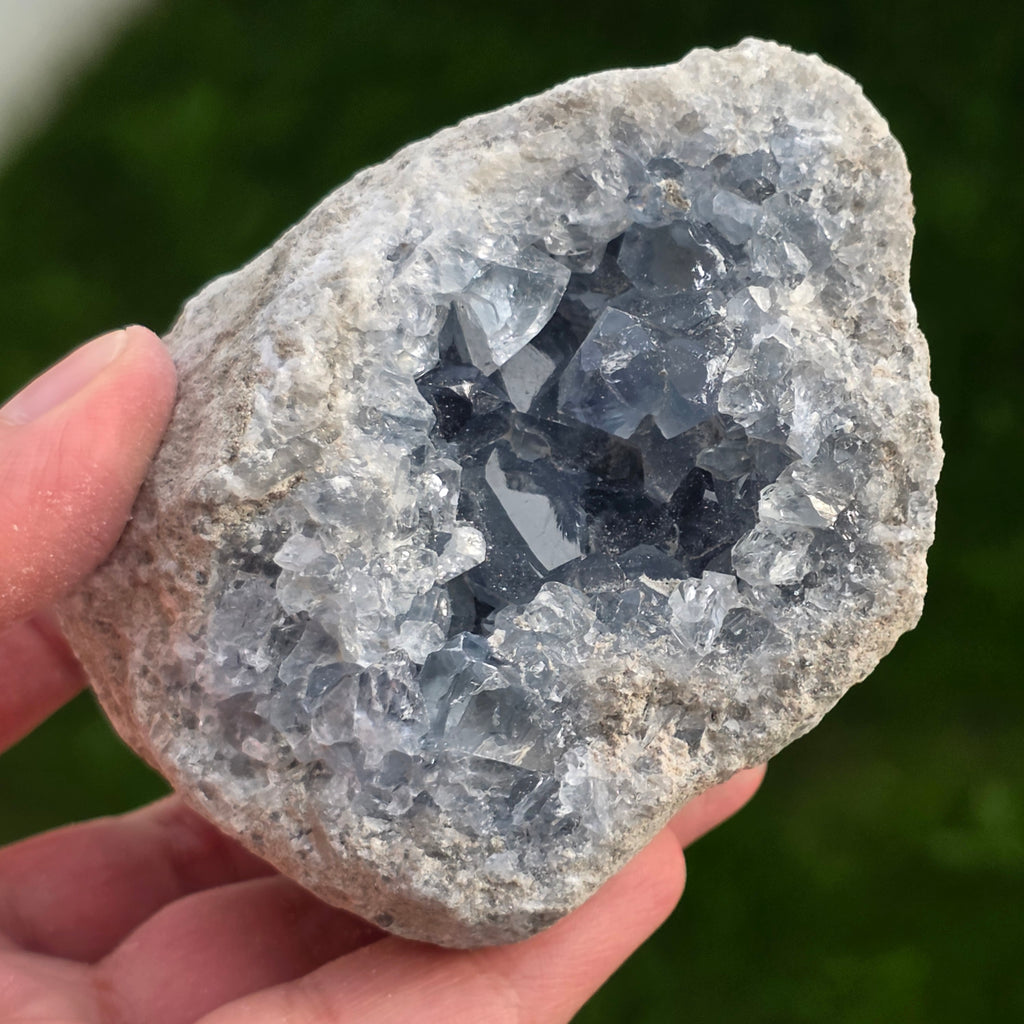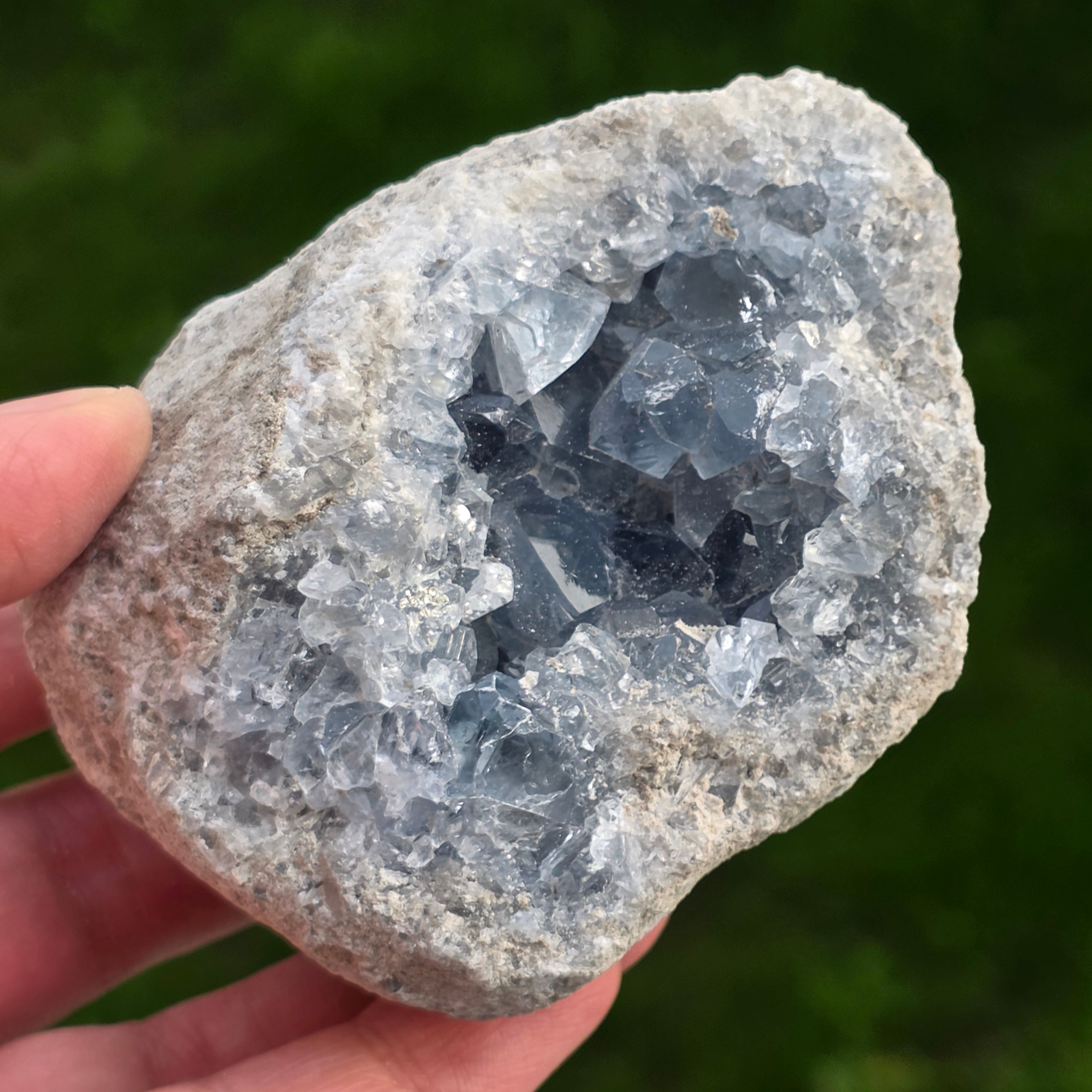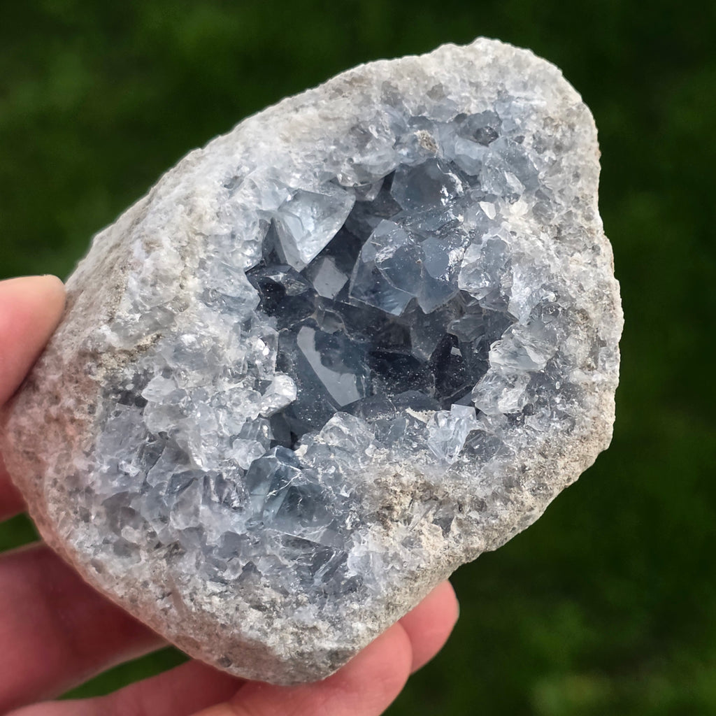 Celestit ist ein blaues oder farbloses Halbedelstein, das aus Strontiumsulfat besteht. Es hat beruhigende und entspannende Eigenschaften und wird oft in der Meditation und in spirituellen Praktiken verwendet, um inneren Frieden und geistige Klarheit zu fördern. Celestit wird mit dem Halschakra in Verbindung gebracht und kann helfen, klar zu kommunizieren und Emotionen auszudrücken. Außerdem wird ihm nachgesagt, dass er Kreativität, Intuition und psychische Fähigkeiten verbessert.