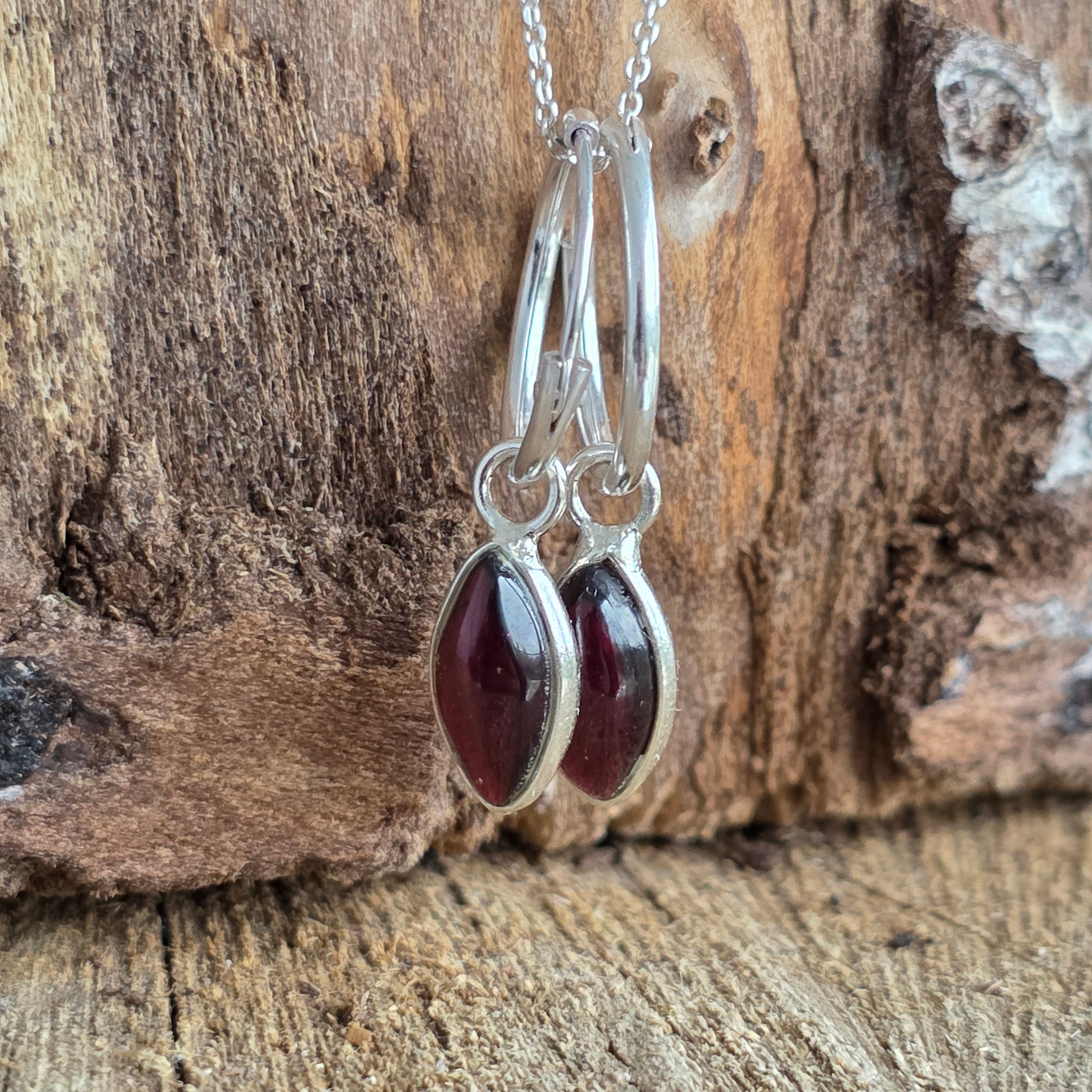 • Design: cercuri subțiri din argint cu piatră suspendată, finisaj lucios