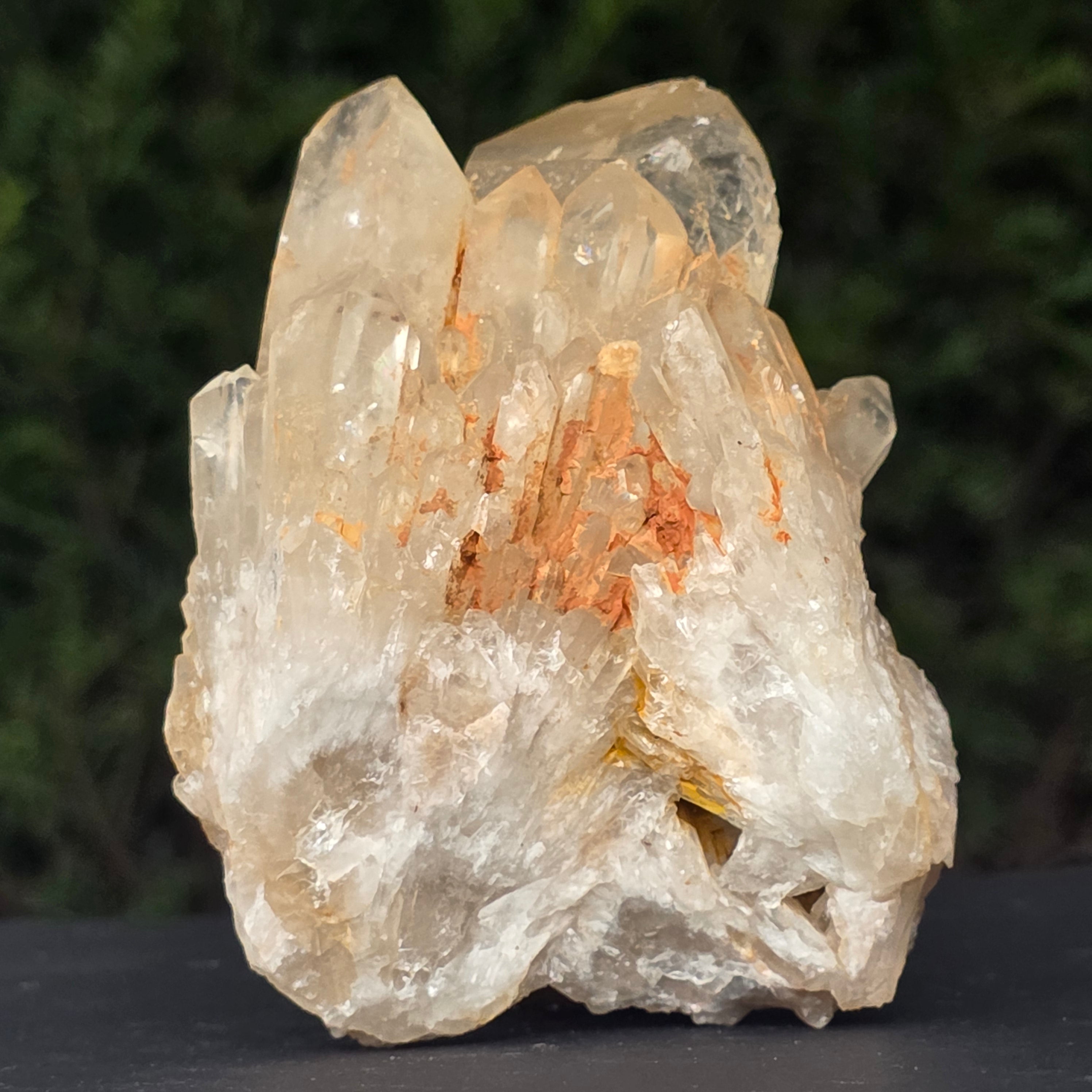În adâncurile continentului african, acolo unde pământul freamătă de viață primordială, a luat naștere acest citrin – o piatră rară și misterioasă, extrasă din solurile bogate ale Congo-ului. Cu nuanțe calde, ce pendulează între galben-auriu și umbre discrete de fum, acest specimen natural poartă amprenta timpului și a transformărilor lente ale Pământului.