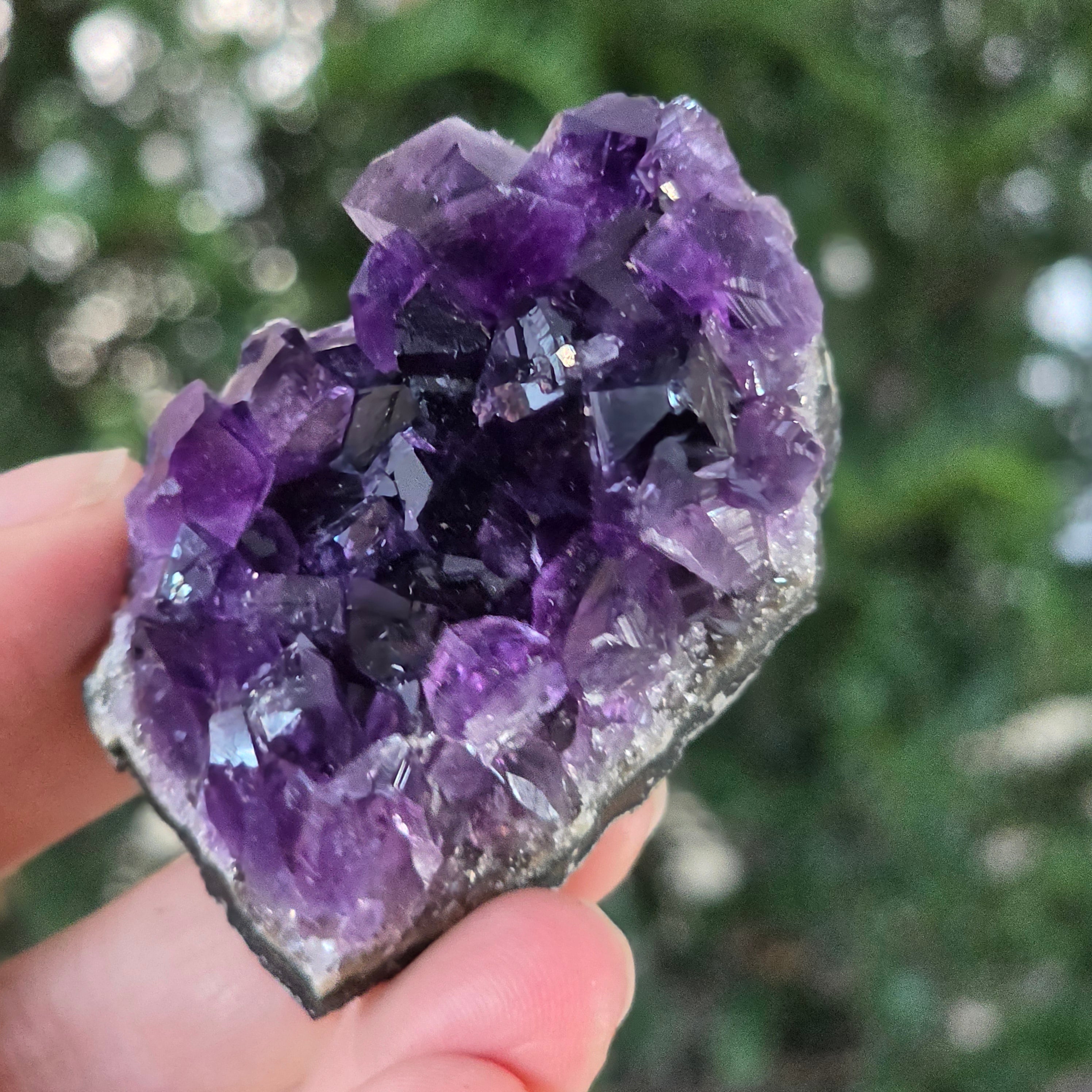 • Culoare: violet intens cu reflexe luminoase, nuanță profundă specifică ametistului uruguayan