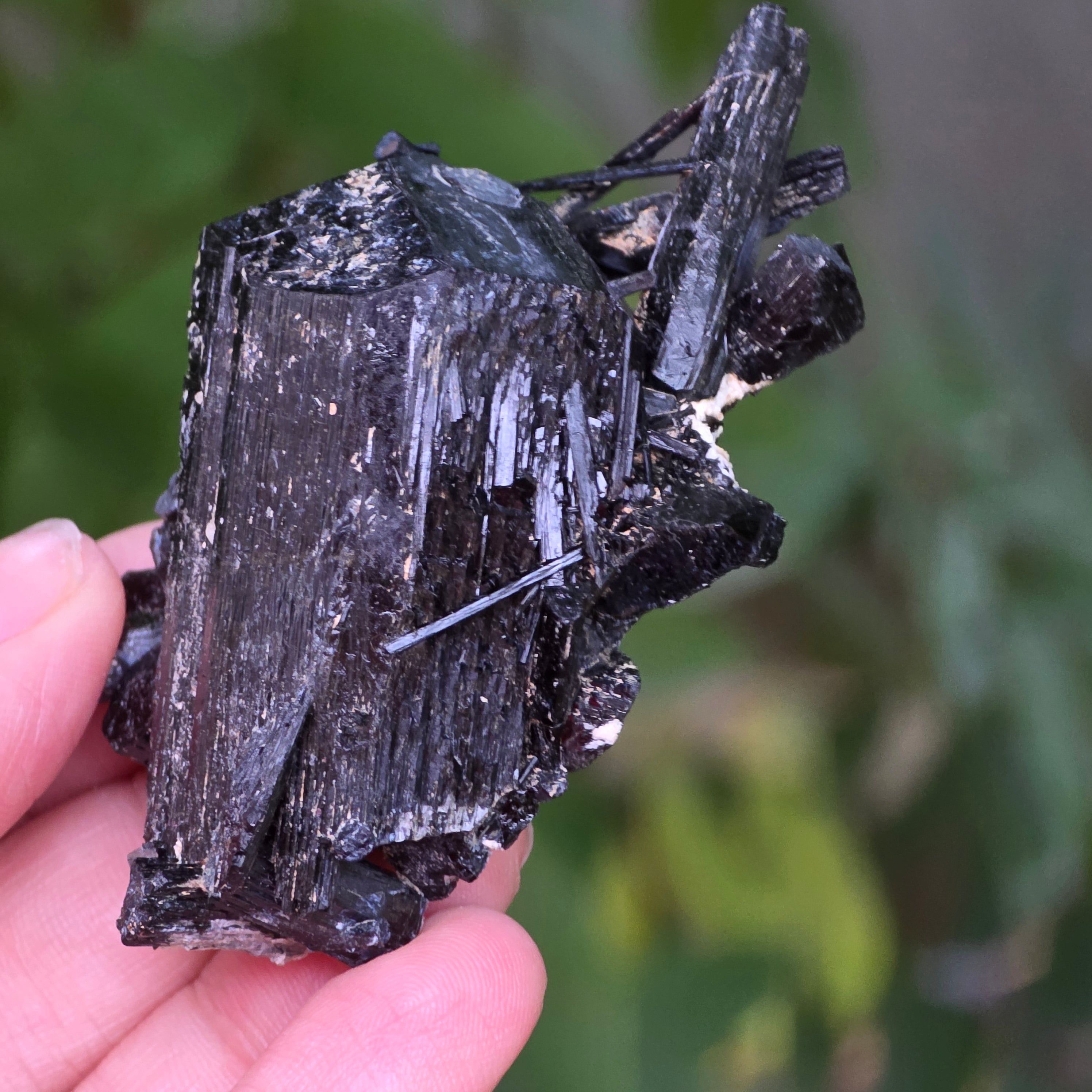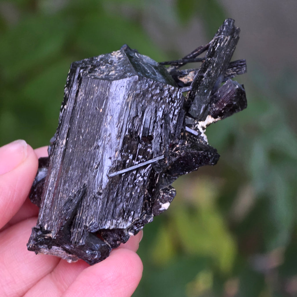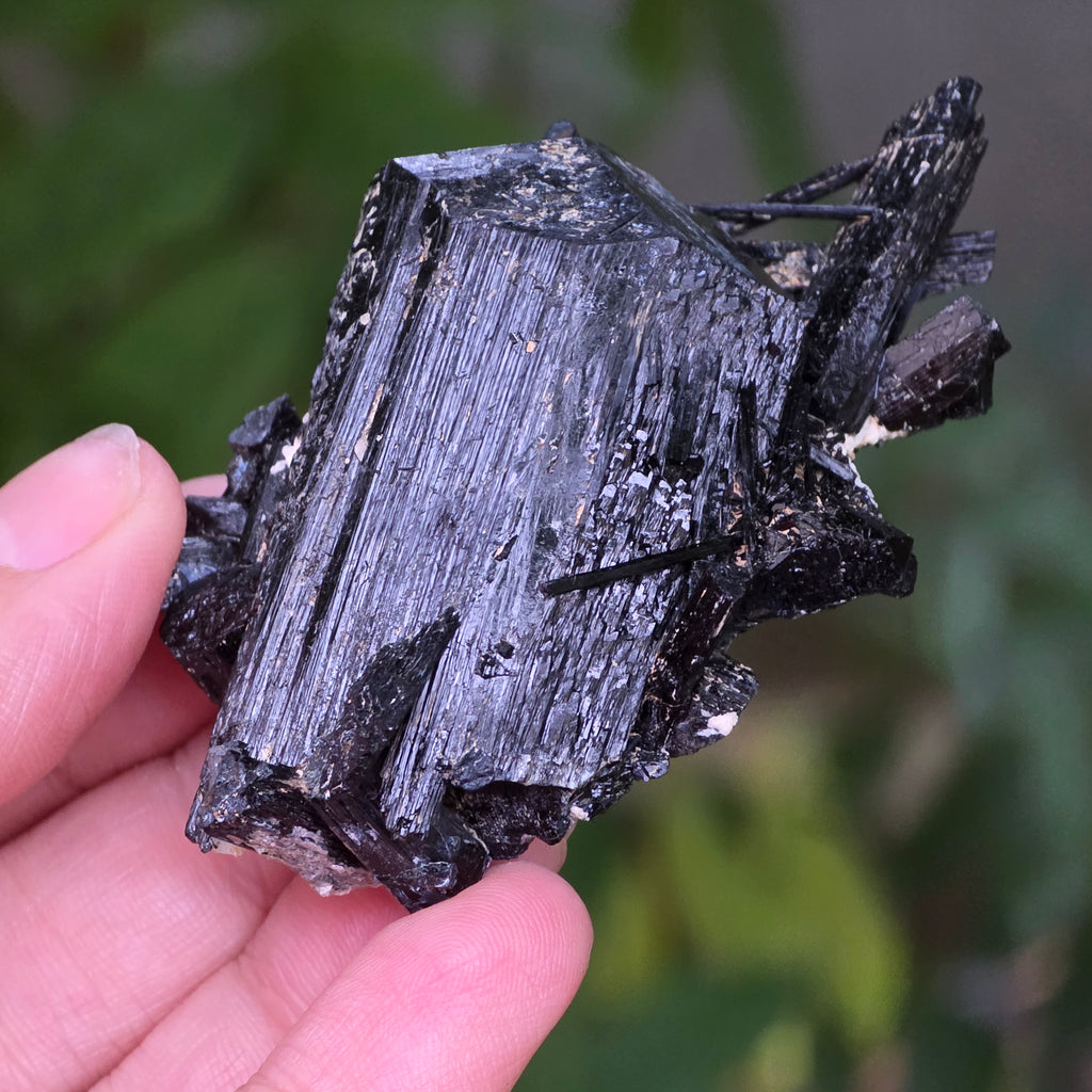 Black Turmalin, auch als Schorl bekannt, besteht aus einer komplexen Mischung aus Borosilica und befindet sich in einer Vielzahl von kristallinen Formen. Es ist ein sehr hartes Mineral und hat einen großen Widerstand gegen Kratzer und Verschleiß.